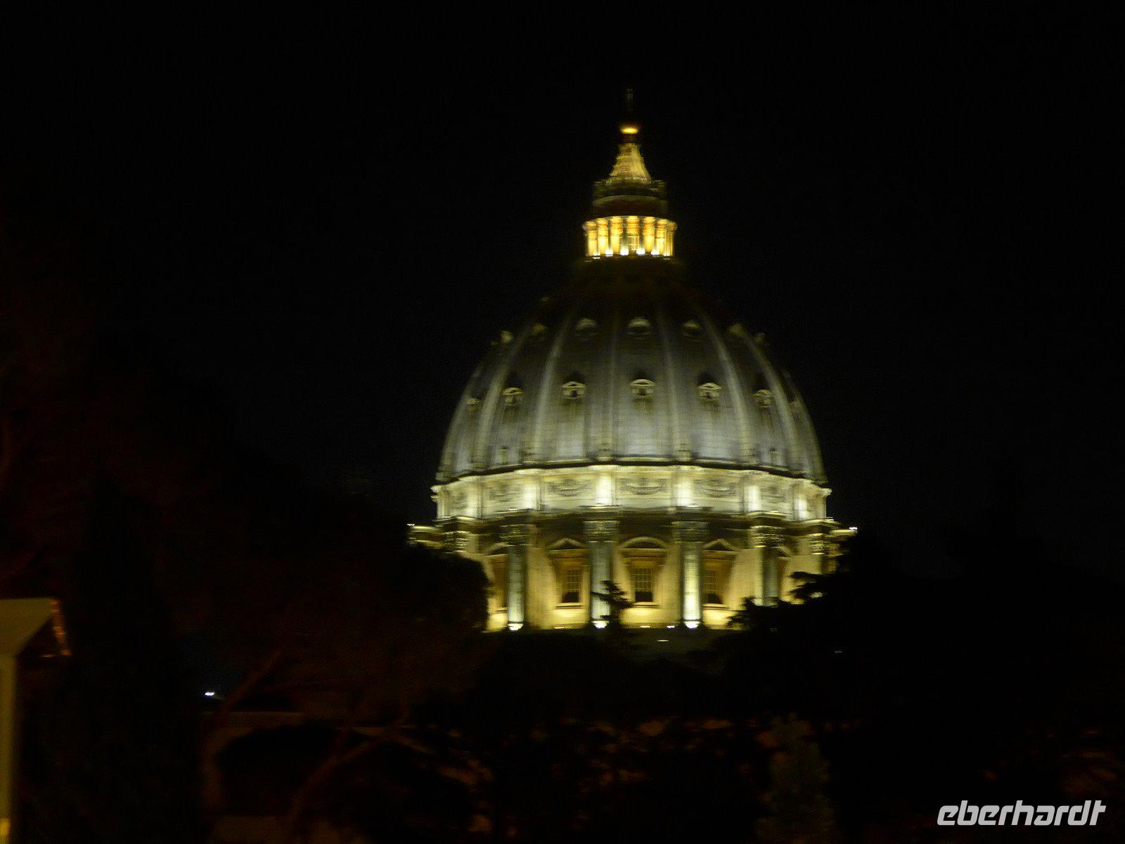 Einst machte sich schon Goethe auf um Rom zu entdecken. Auf diesen Spuren machten wir uns auf den Weg nach Rom. Nicht wie Goethe auf dem Landweg. Wir nutzten den Flieger über die Alpen und nach wenigen Stunden erreichten wir Rom. Unser Hotel in zentraler Lage einsame Spitze - nach so langer Fahrt hatten wir Hunger - entlang der Straße hatten wir eine große Auswahl an Lokalen. Gestärkt mit Pizzen und anderen Köstlichkeiten erlebten wir den Petersplatz in abendlicher Beleuchtung. Nach einem kleinen Rundgang, der uns bis zum Tiber führte endete der heutige Tag.