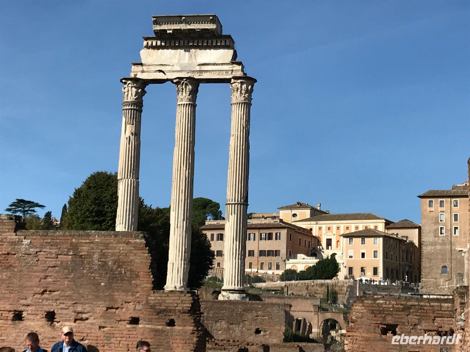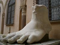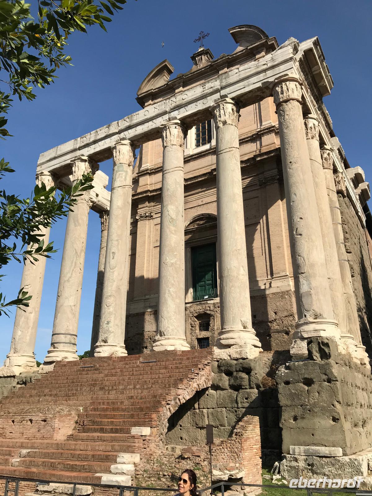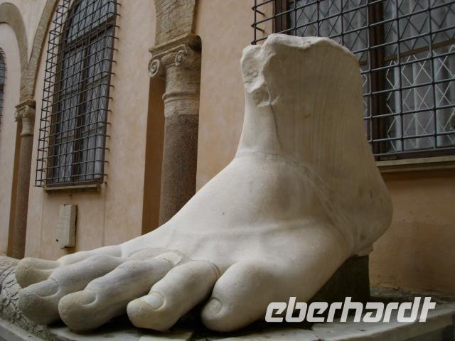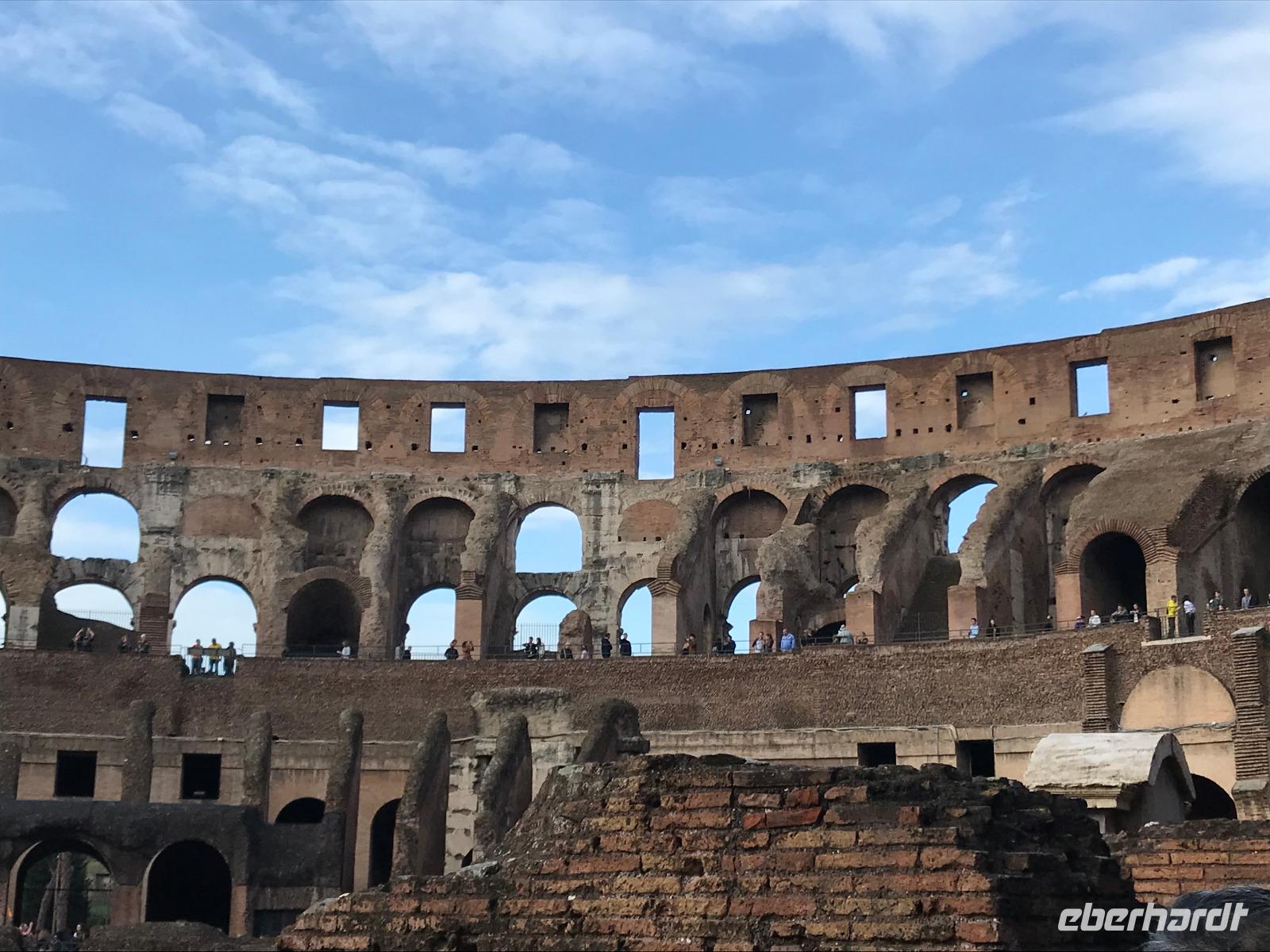 Diese Erfahrung tröstet uns am folgenden Tag, denn die öffentlichen verkehrsmittel der Stadt werden bestreikt und wir sind weitestgehend zu Fuß unterwegs. Mit heftigem Drängeln kommen wir zwar noch in einen der Busse Richtung Piazza Venezia, einem der zentralen Verkehrsknotenpunkte. Danach aber heißt es laufen.Von Gladiatoren und TierkämpfenAm Kolosseum erwartet uns die Stadtführerin Sylvia, die uns an zwei Tagen auf angenehme Art ein sehr anschauliches und umfassendes Bild von der römischen Geschichte und den Sehenswürdigkeiten vermittelt. Kämpfe auf Leben und Tod in den römischen Arenen vor Publikum, das Forum Romanum als Zentrum des politischen und kulturellen Lebens im antiken Rom. Es braucht nicht viel Fantasie, um sich beim Blick auf Säulen und Tempelreste vorzustellen, wie prächtig man in der römischen Kaiserzeit in den einst so stattlichen Gebäuden aus Marmor und Travertin gelebt hatte.Schreibmaschine oder HochzeitstorteKolossal erhebt sich auch das Denkmal für Vittorio Emmanuele II. auf dem Platz neben dem Forum. Es macht sich so breit, dass die Basilika Santa Maria in Aracoeli und die dahinter liegenden Gebäude dadurch fast unsichtbar geworden sind. Das Denkmal erinnert als Vittorio Emanuele II. als ersten König des 1861 geeinigten Landes. Über die Frage, ob das Denkmal schön ist, können sich die Römer gut ereifern. Einige nennen es abschätzig Schreibmaschine oder Hochzeitstorte, andere betonen ehrfürchtig seine Bedeutung als Altar des Vaterlandes.