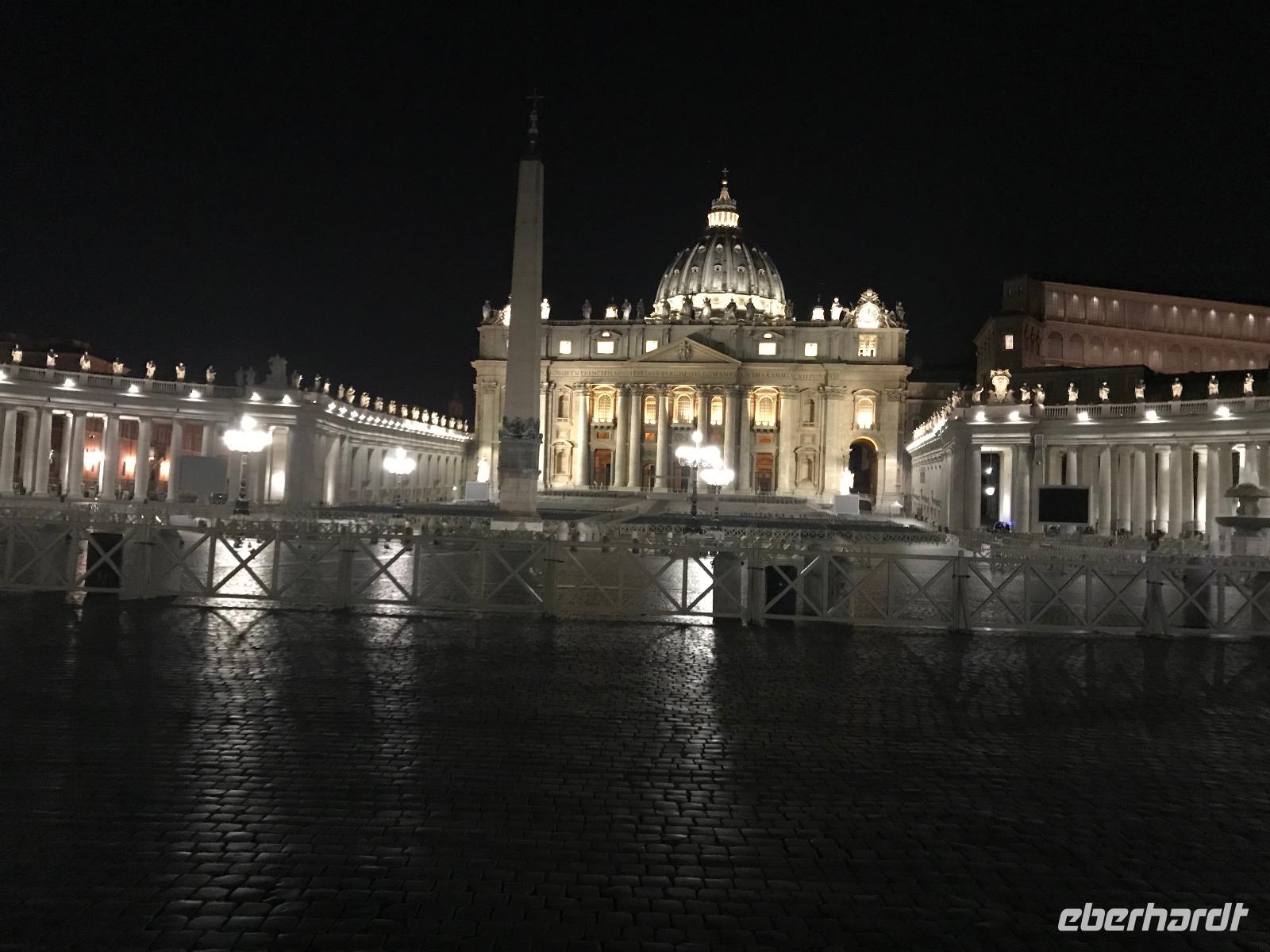 Am Sonntag ist Freizeit angesagt und Ziele, die man ansteuern kann, gibt es mehr als genug. Der Park der Villa Giulia lockt ebenso wie der Aventinhügel mit dem Orangengarten und dem berühmten Schlüsselloch, die Kirche Santa Maria Maggiore und das Viertel Monti. Zuvor haben wir uns für die unterschiedlichen Unternehmungen auf dem Petersplatz den päpstlichen Segen beim Angelusgebet geholt.