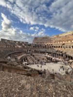 Heute führte uns unser Weg in den Kirchenstaat. Durch unsere Reservierung blieb uns das Warten in dieser Schlange erspart und betraten sehr schnell das Museum. Zunächst ging es in die Vatikanischen Gärten. Mit dem Bus unterwegs erlebten wir den herrlichen Garten mit seinen unzähligen Bauten und Kunstwerken. Beispielhaft seien hier nur die Millenniumsglocke, die einstigen Wohnungen der Päpste Johannes XXIII bzw. Benedikt XVI oder das wunderschöne Gebäude der Päpstlichen Akademie erwähnt. So entspannt wie hier ging es leider nicht weiter. Danach sollten wir die Massen dann richtig erleben. Im Gänsemarsch wurden wir durch die Räume geschoben und dennoch konnte uns Sylvia zu ausgewählten Kunstwerken wie z. B. der Apollo-Statue oder Laokoon-Statue, aber auch den Wandteppichen, von denen einige aus dem 16. Jh. stammen, erzählen. Auch auf die Besonderheit der Kartendarstellungen des Landes Italien in einem erhabenen Gang wurden wir aufmerksam gemacht. Denn die Betrachtung in der Darstellung ging von Rom aus und somit steht der nördliche Teil auf dem Kopf. Danach ging es in die Sixtinische Kapelle. Mit den Informationen, die Sylvia schon vorab gab, konnten wir den Inhalt verstehen und uns an den Originalen erfreuen. Den Abschluss unseres heutigen Tages im Vatikanstaat bildete der Besuch des Petersdoms. Mit einer Fläche von mehr als 15.000 m² können ca. 60.000 Personen Platz finden. Ausgehend von der Größe dieses Raumes wird uns unser Größe als Mensch sehr deutlich vor Augen geführt. Die Höhepunkte sind hier natürlich die Pieta von Michelangelo oder die Bronzestatue von Petrus sowie einige Papstgräber. Als wir vor dem Baldachin stehen und zur Kuppel hoch schauen wir das Können der damaligen Baumeister so richtig deutlich. Ob Bramante, Rafael, Bernini oder Michelangelo – alle hatten sich hier unsterblich gemacht. Mit der Metro erreichten wir schnell das Kolosseum. Brot u. Spiele – ein geflügeltes Wort aus der Zeit der Antike brachte und an den Ort wo die Bürger Roms unterhalten wurden. Im gewaltigen Kolosseum ging es dann um die Baugeschichte des größten Amphitheaters aber auch um den Ablauf eines Tages für die Römer. Den Höhepunkt bildeten hier natürlich die Gladiatorenkämpfe. Von weit her kamen exotische Tiere, die als Gegner der Kämpfer dienten, aber auch der Kampf – Mann gegen Mann- durfte hier nicht fehlen. So manches aus Filmen stellte sich dann als Fake heraus. Nach so vielen Informationen mussten diese bei einem guten Abendessen und so manchem interessantem Gespräch verdaut werden.