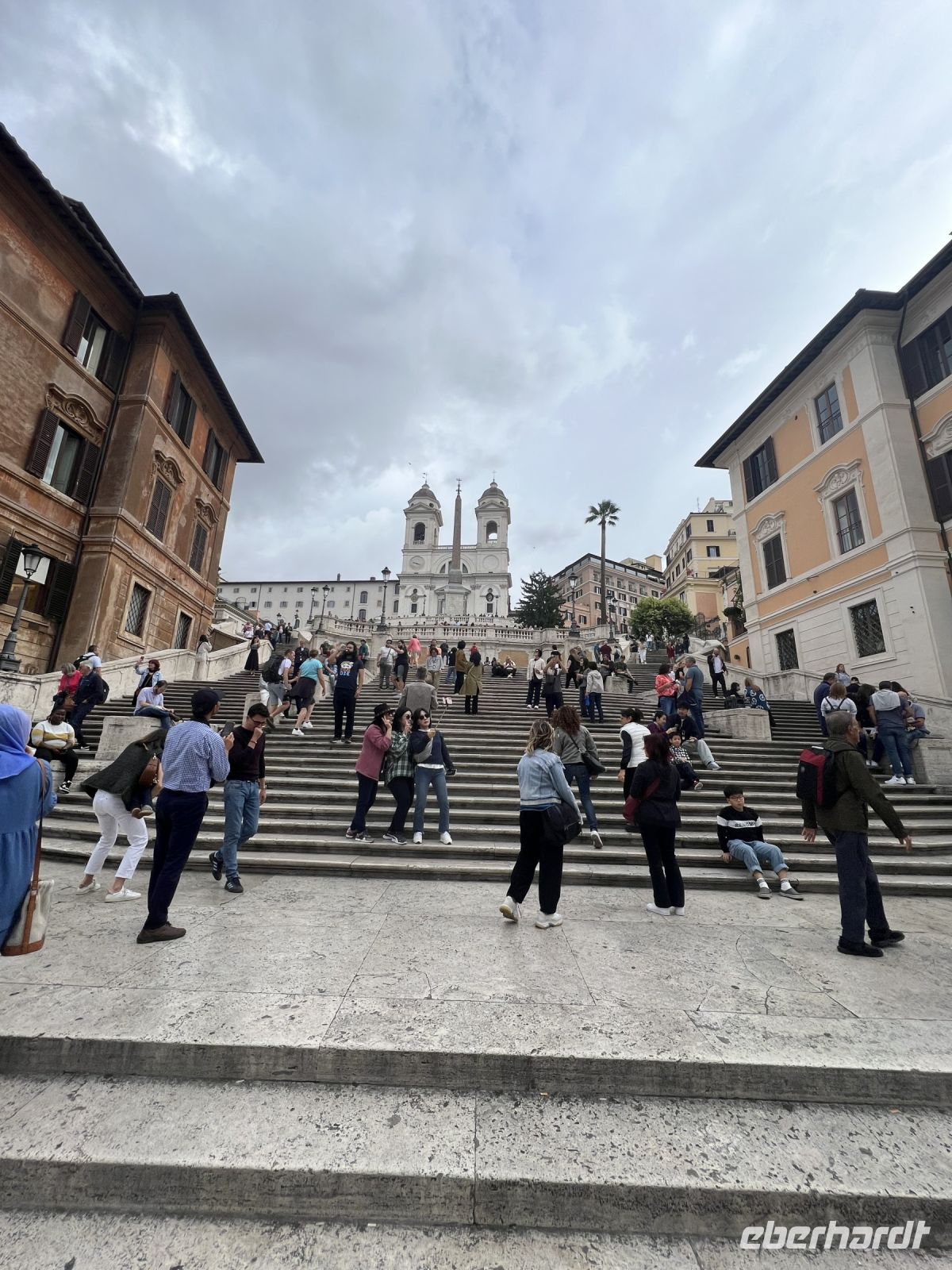 Schon Goethe stellte mit Erstaunen fest, dass ihm Rom nicht einen Moment lang allein gehört hat. In diesem Bewusstsein ähnliches zu erleben machten sich die Singlereisegruppe von Eberhardt auf den Weg Rom zu entdecken. Fast schon sternförmig von 6 Flughäfen Deutschlands erfolgte die Anreise. Nicht nur dass man wegen fehlendem Ladepersonal 1 Stunde im Flieger ausharren musste, so war auch der gesamte Flug sehr unruhig und wir wurden kräftig durchgeschüttelt. Nach der Landung ging es für römische Verhältnisse am Gepäckband sehr schnell. Anschließend ging es zum Hotel und man konnte den Rest des Tages für die ersten Erkundungen nutzen. Ein Gewitterguss musste dabei eingeplant werden