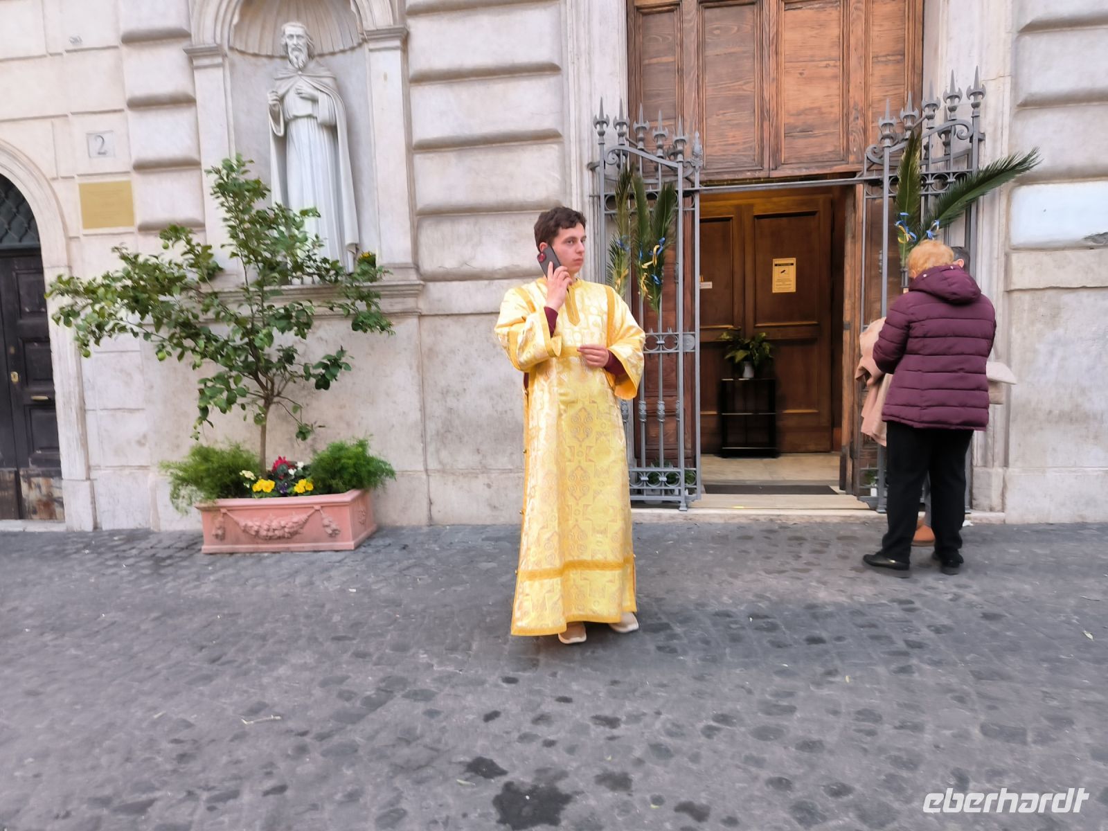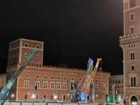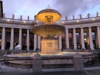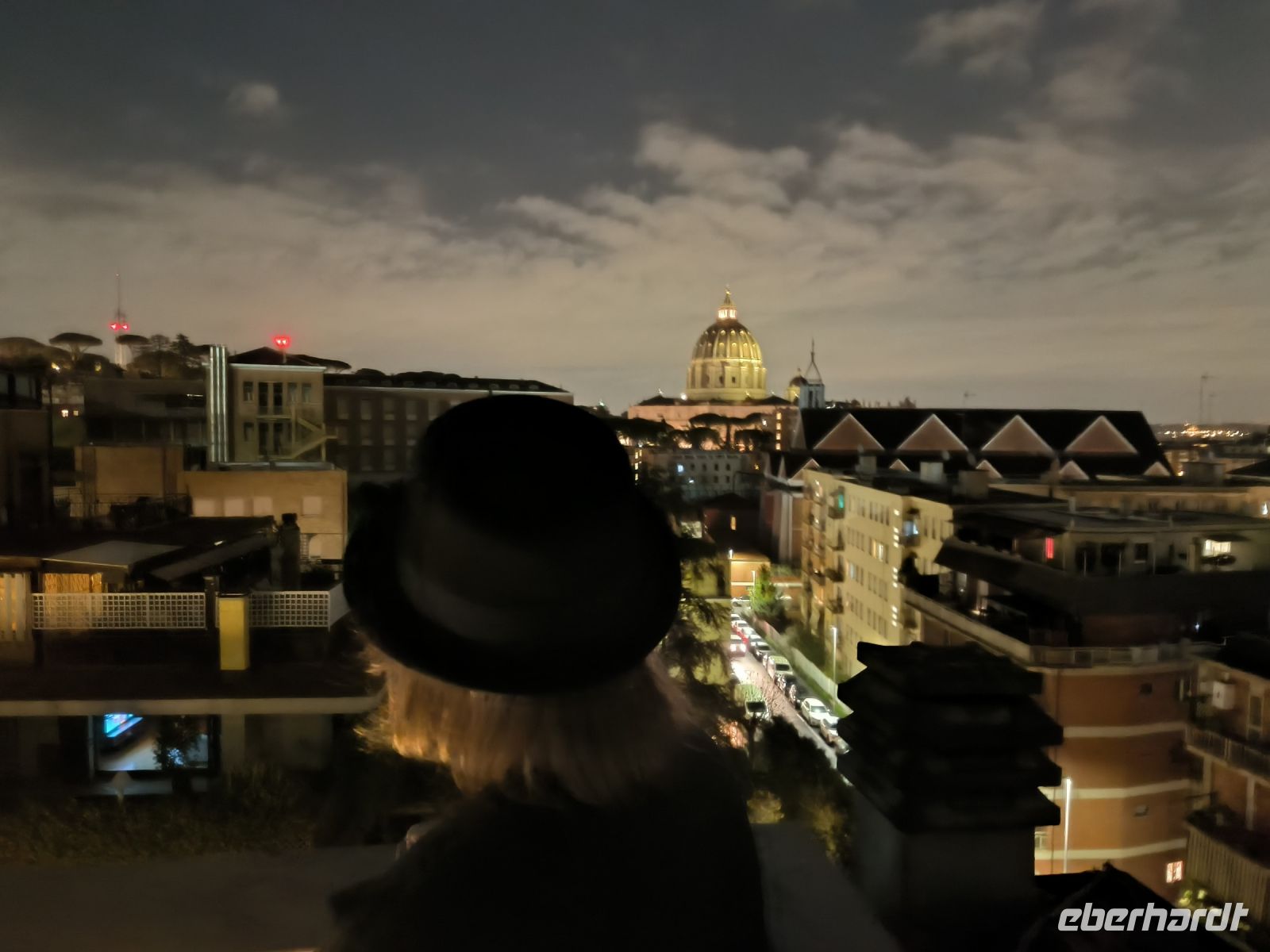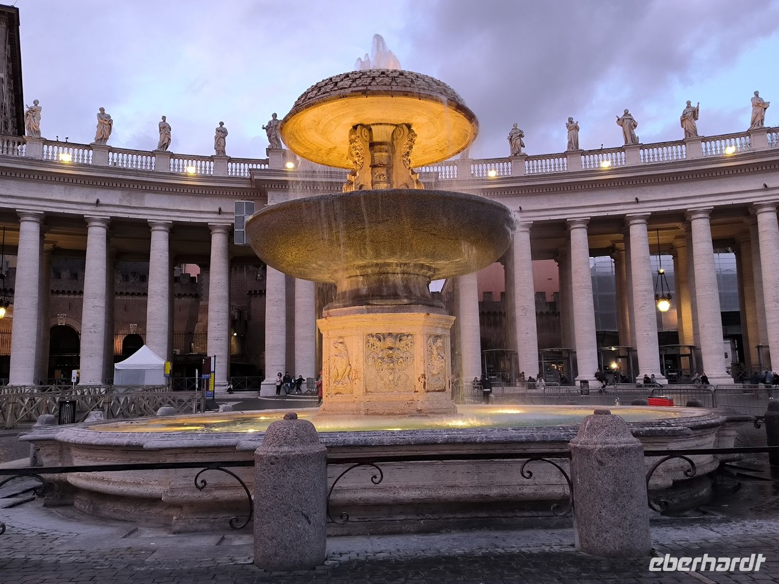 Bei einem ersten Abendspaziergang lernen wir schon einmal den Peterplatz kennen. In der blauen Stunden sehen wir, wie schon alles für die Messe zum Palmsonntag vorbereitet wird. Nach und nach erstrahlen die Lichter und die Piazza San Pietro sowie der Dom entfalten ihre Aura.