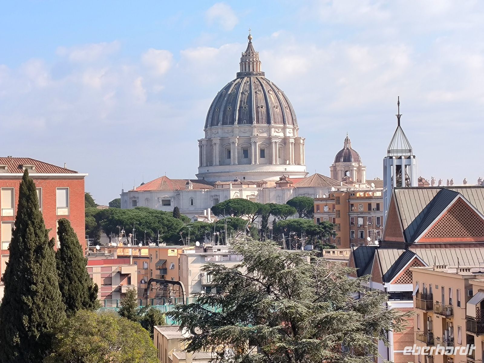 Und wer nach all dem noch immer Platz im Kopf und Kraft in den Füßen hat, der bewältigt den Kuppelaufstieg und wird mit einem traumhaften Blick auf die ewige Stadt belohnt. Wann kann man schon von sich sagen „Rom liegt mir zu Füßen“?