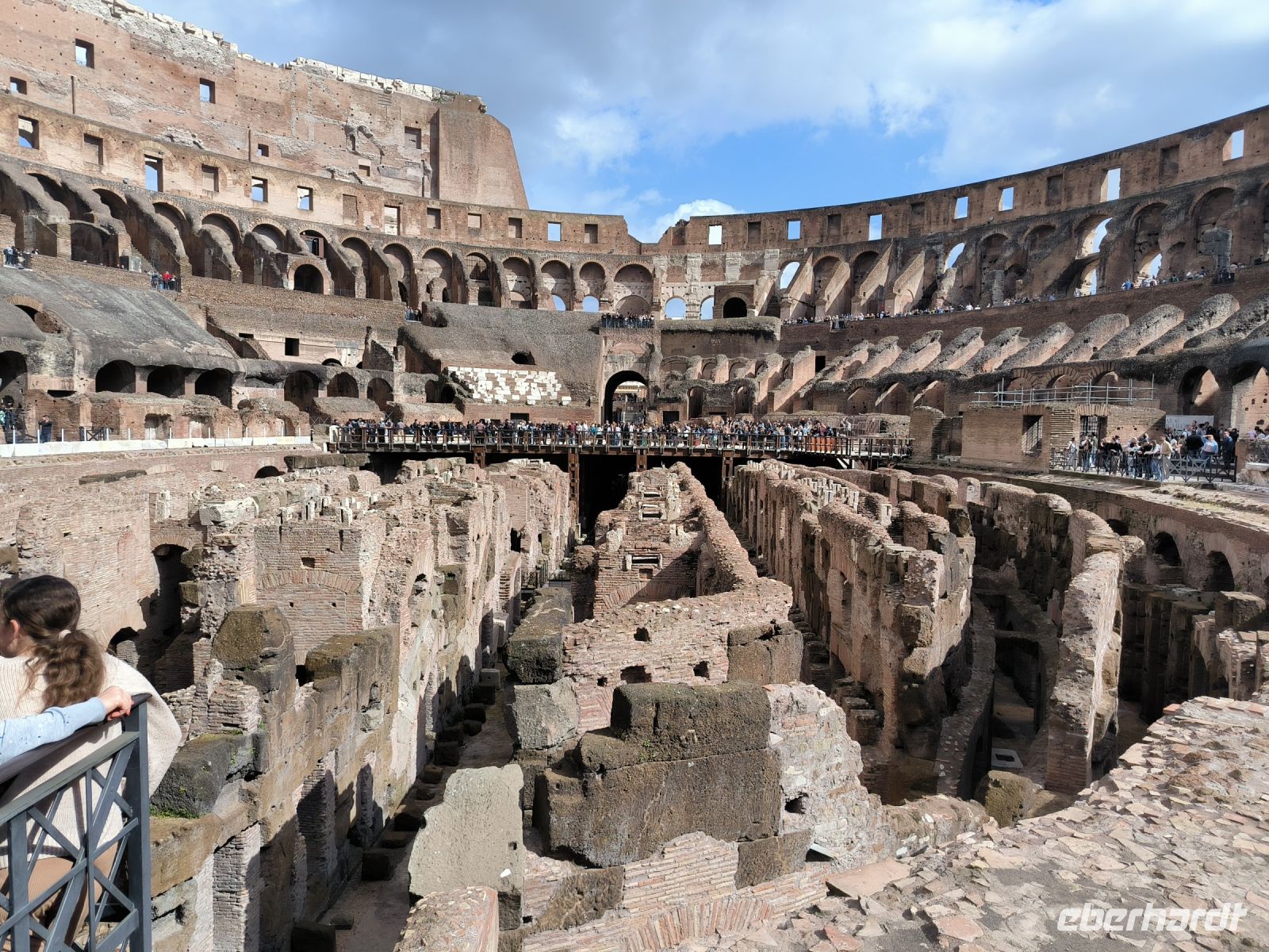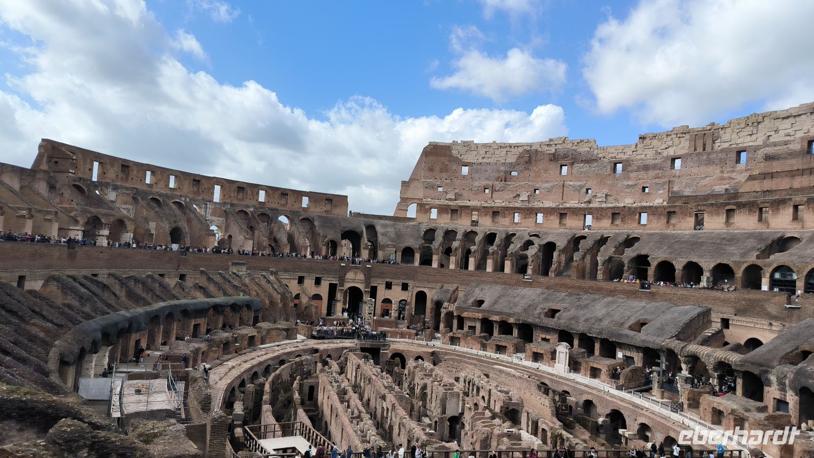 Nach einer individuellen Mittagspause in der Via della Madonna dei Monti wartet das nächste Highlight auf uns: die Innenbesichtigung im Kolosseum. Es ist das größte römische Amphitheater in Ellipsenform mit 188 Metern Länge, einer Breite von 156 Metern und einer Höhe von 57 Metern. Gebaut aus Ziegelsteinen und Travertin, wurde es in fünf Ebenen geteilt und bot Platz für mehr als 50.000 Personen. Typische Veranstaltungen im Kolosseum waren unter anderem Gladiatorenkämpfe, bei denen die Kämpfer verschiedenen Klassen angehörten und unterschiedliche Waffen und Rüstungen trugen. Die Spiele dienten vor allem zur Erheiterung und Demonstration der Macht des römischen Kaisers.