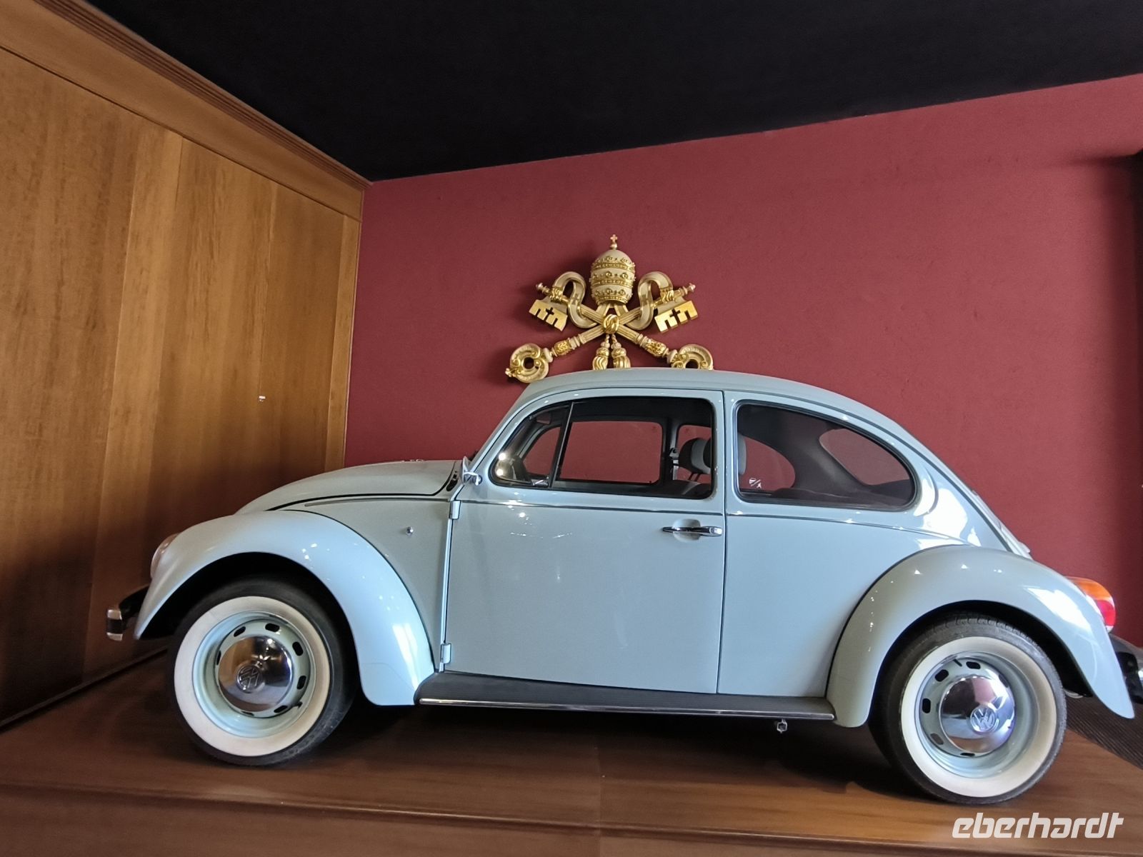 Nach einem Abstecher in die „Garage“, wo die päpstlichen Kutschen & Karossen stehen, machen wir im schönen Innenhof eine kleine Kaffeepause. Auch das Papamobil, in dem 1981 der Anschlag auf Papst Johannes Paul II. verübt wurde, können wir sehen. Der Papst hat seinem Attentäter übrigens später verziehen.