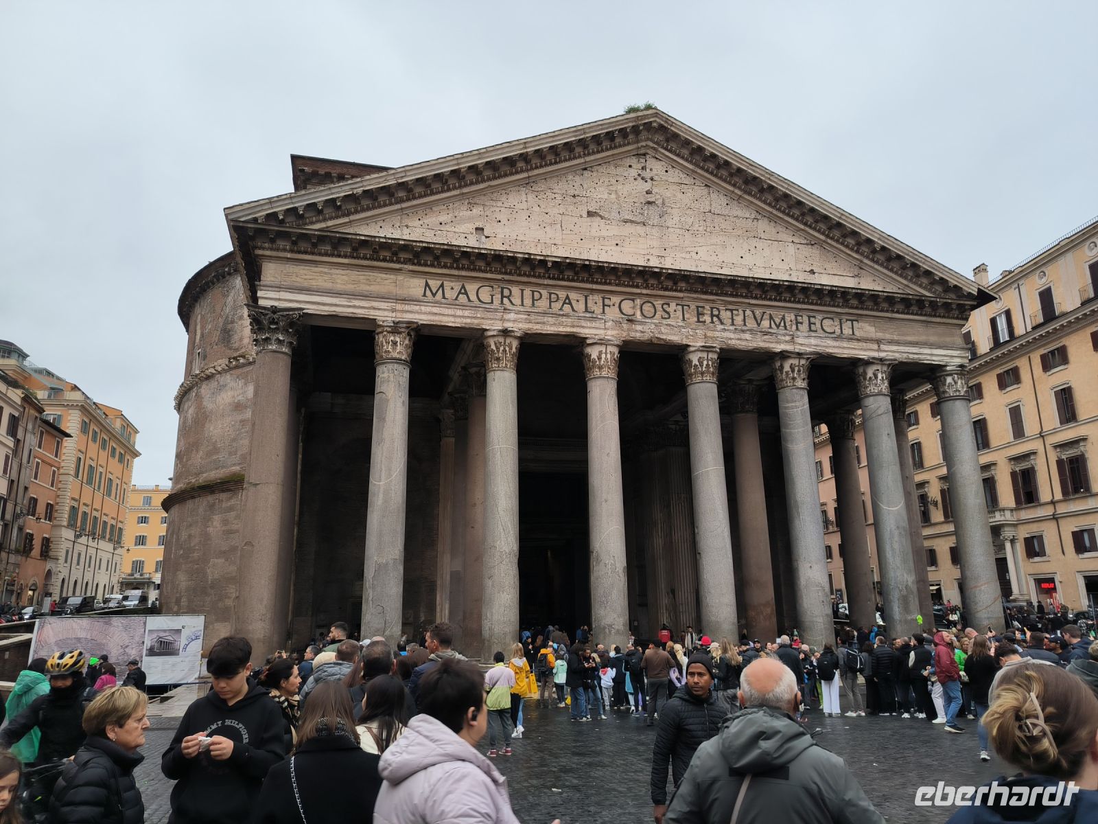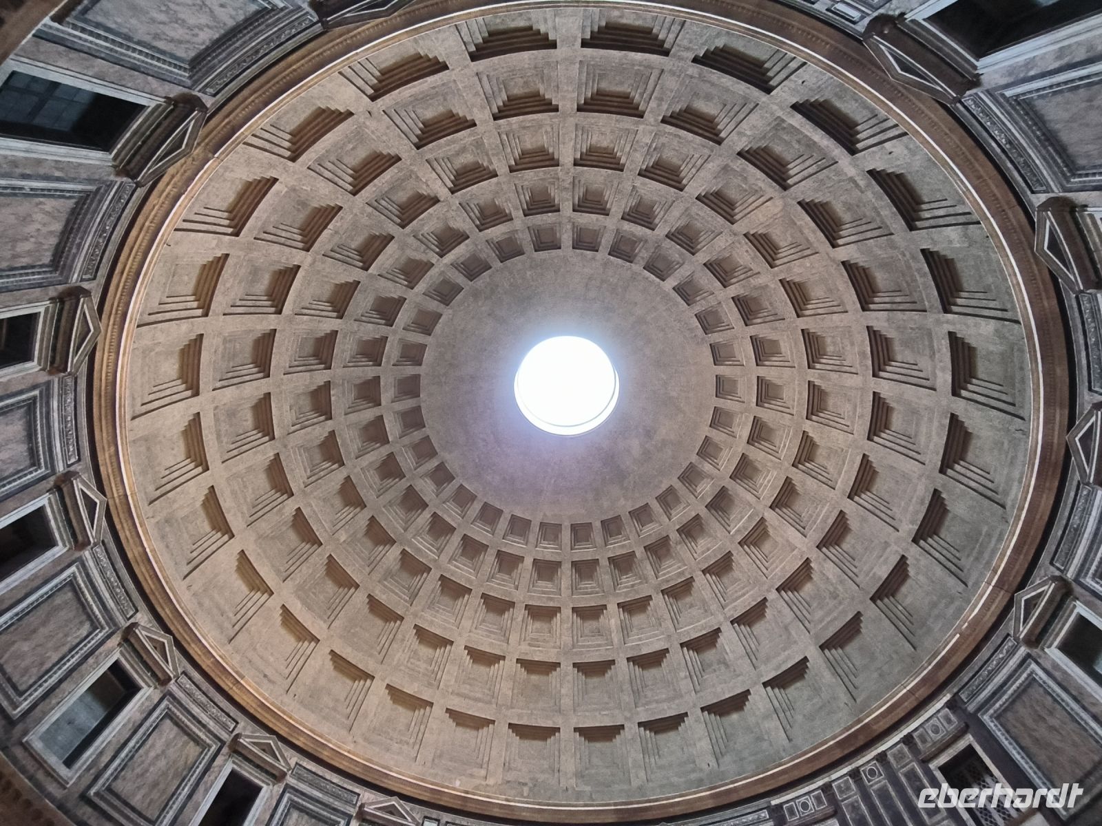 Immer wieder beeindruckend ist die riesige Kuppel des Pantheon, die lange als die größte Kuppel der Welt galt. Wohl weil dieses antike Bauwerk zur Kirche umgeweiht wurde, ist es so gut erhalten. Die Pfütze in der Mitte beweist uns allerdings, dass es – entgegen aller Gerüchte – durch das große Loch oben doch hereinregnet…