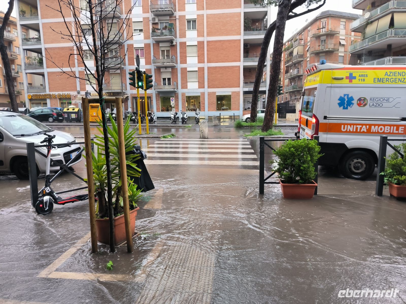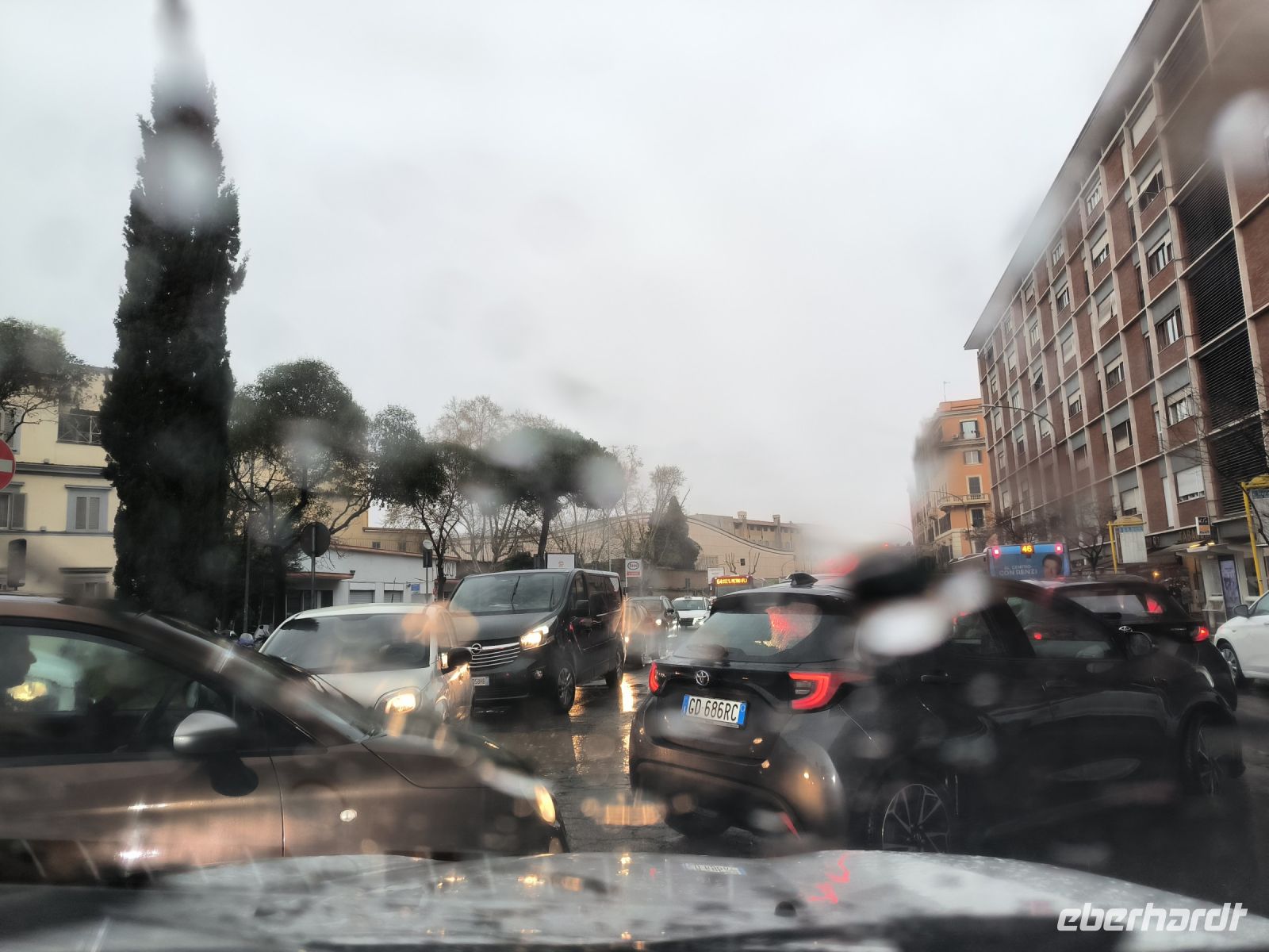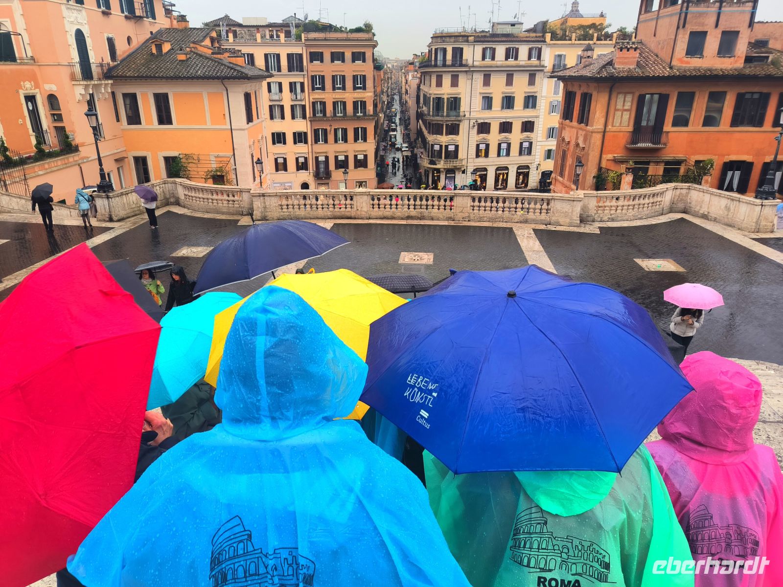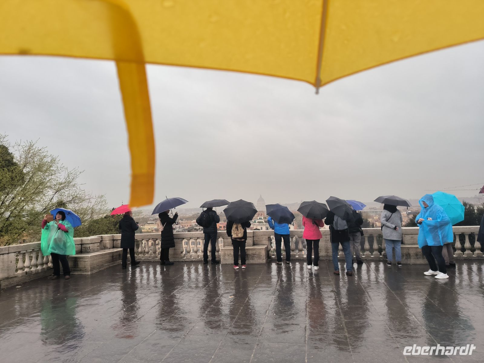 Nun ist schon der Tag des Abschieds gekommen. Und was soll man sagen – der Himmel weint über Rom. Er weint nicht nur, er schüttet sich aus. Trotzdem gehen einige Unerschütterliche noch einmal ein paar Schritte, bis es Zeit ist, den Transfer zum Flughafen zu nehmen.