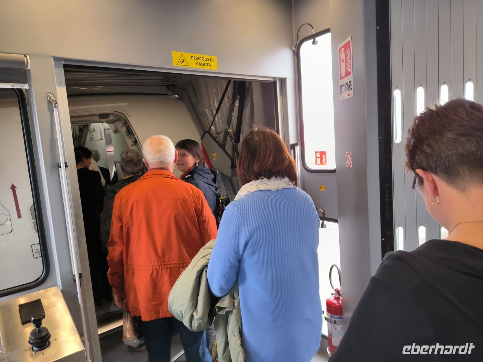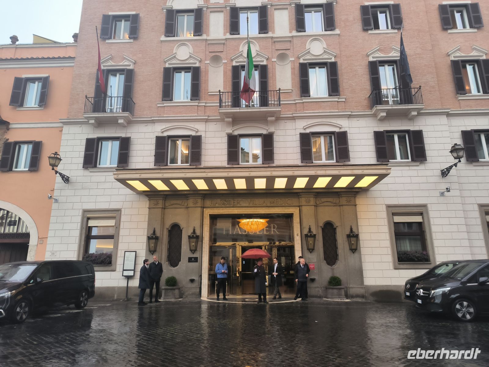 Am Flughafen Roma Fiumicino warten sympathische Italiener mit einem Schild mit „Eberhardt TRAVEL“, um die Gäste in ihr Hotel zu bringen. Nun ja, einer bekommt eine Gratis – Stadtrundfahrt, er wird von der falschen EHT-Gruppe „weggefangen“ und zunächst ins Hotel Abitart transferiert. Aber auch er kommt dann mit dem Taxi zu uns.