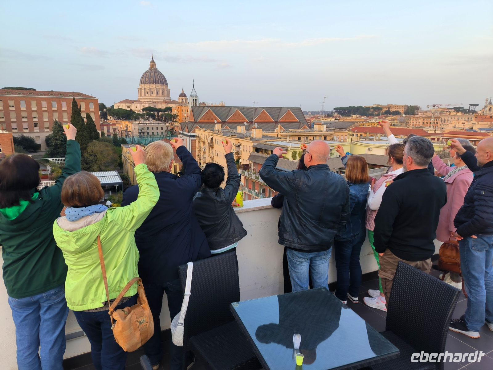 Nach einem ersten Spaziergang zum Petersplatz trifft sich die ganze Gruppe gegen Abend zu einer Kennenlernrunde. Hierfür bietet die Dachterrasse unseres Hotels die perfekte Kulisse. Mit Blick zur Kuppel des Petersdoms stoßen wir mit einem Gläschen Limoncello auf eine tolle Zeit in Rom an. Für das Abendessen hat Heike im nahegelegenen Ristorante „Ci piace“ Tische reserviert. Wir werden von Matteo freundlich empfangen und manch einer bekommt hier die besten Spaghetti Carbonara seines Lebens. Doch dann zieht es alle nach dem langen Reisetag in die Hotelbetten. Buona notte!