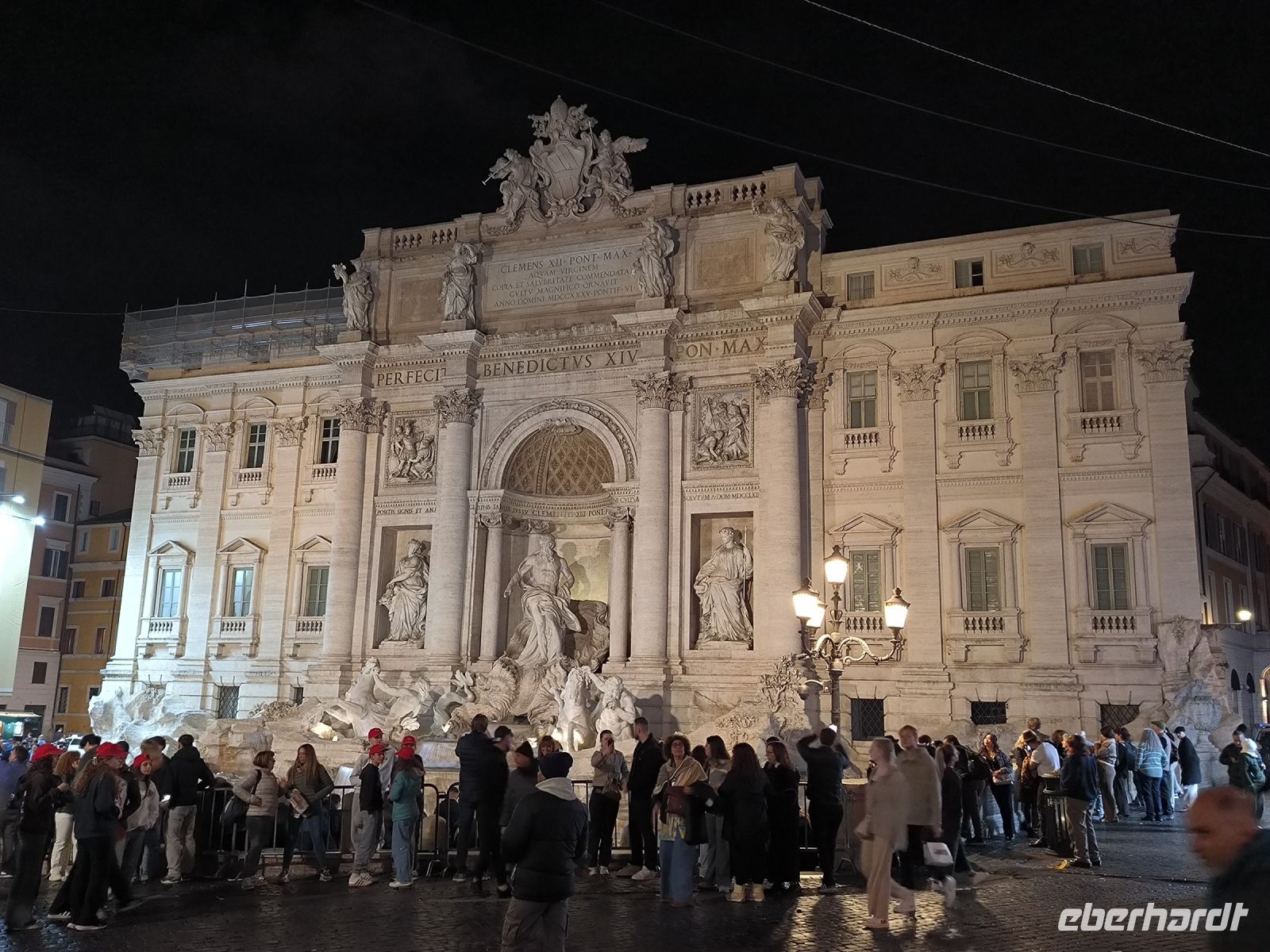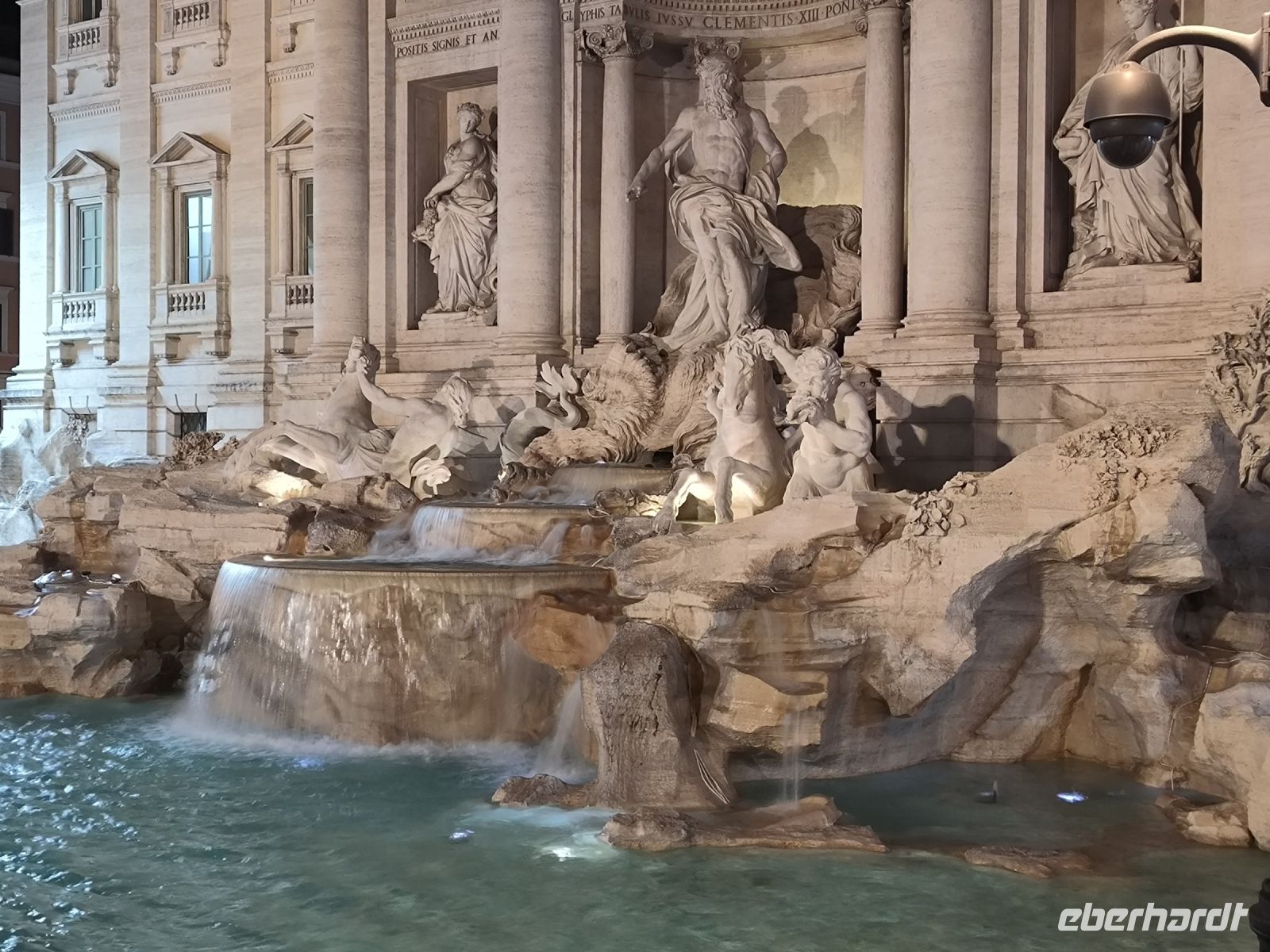 Unser gemeinsames Abendessen ist heute im Ristorante / Pizzeria „Alle Carrette“ reserviert. Es gibt eine leckere Bruschetta, wir können uns aus der Karte eine Pizza sowie ein Dessert heraussuchen, es schmeckt und alle werden mehr als satt. So gestärkt machen wir uns auf den Weg, um an der Trajanssäule nochmals Sylvia zu treffen, die uns einen Teil Roms bei Nacht zeigen möchte. Im Lichterschein besuchen wir den Quirinalspalast, den Palazzo Montecitorio und die Fontana di Trevi, den berühmten Brunnen, in den wir auch ein paar Münzen werfen.
