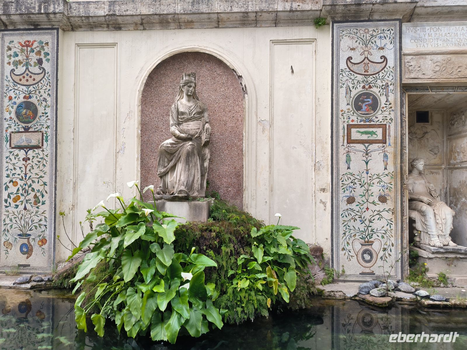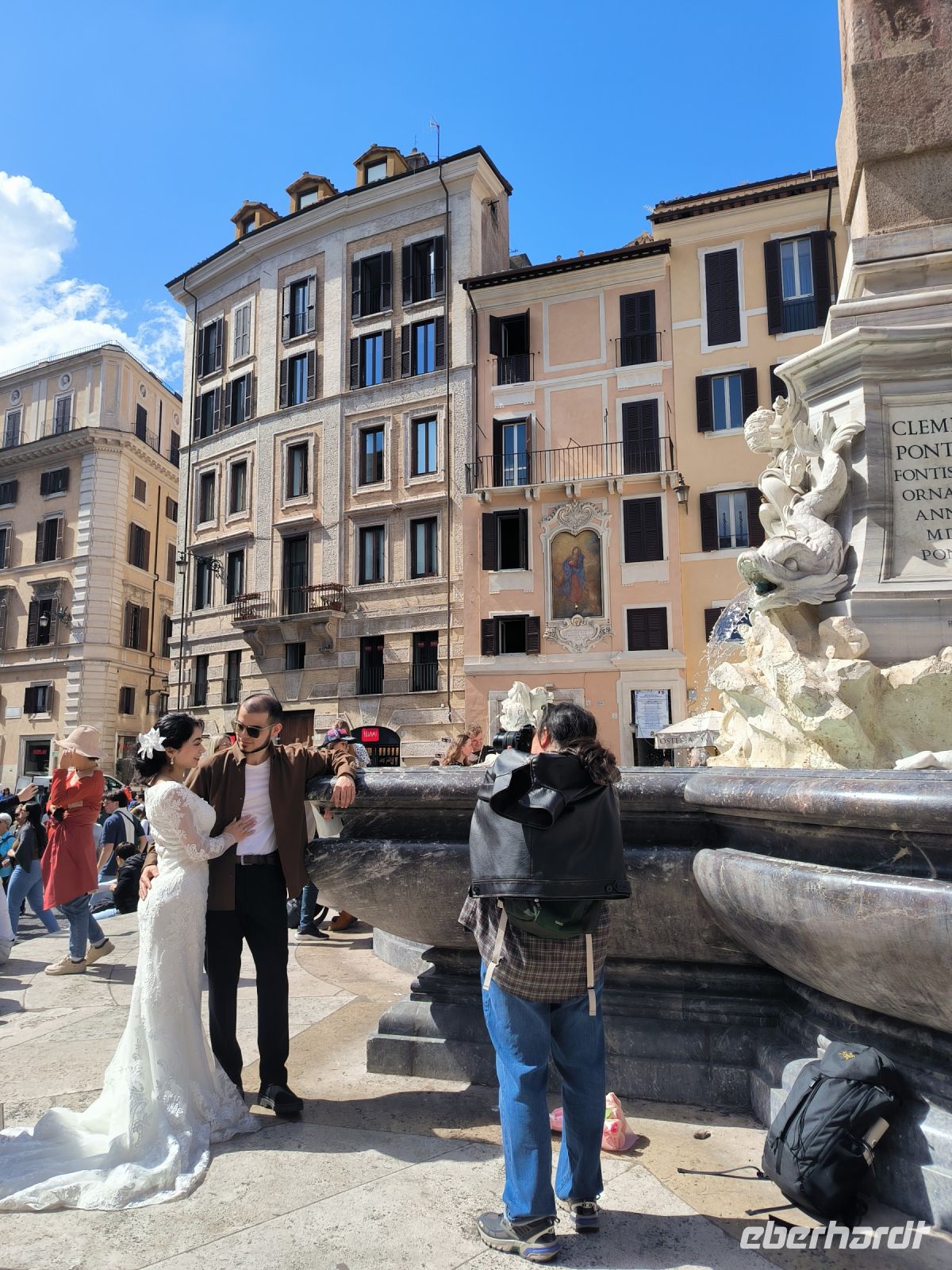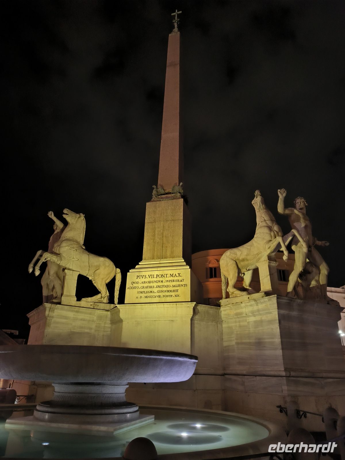 Ein bedeutender Platz in Rom ist zweifellos die Piazza Navona. Nach langen Restaurierungsarbeiten erstrahlt hier in deren Mitte der Vierströmebrunnen, der Mitte des 17. Jahrhunderts von Bernini für den o.g. Papst Innozenz X. geschaffen wurde, in neuem weißen Glanz. Vier Männerfiguren an den Ecken versinnbildlichen jeweils die für einen der vier damals bekannten Kontinente stehenden Flüsse Donau (Europa), Ganges (Asien), Nil (Afrika) und Río de la Plata (Amerika).