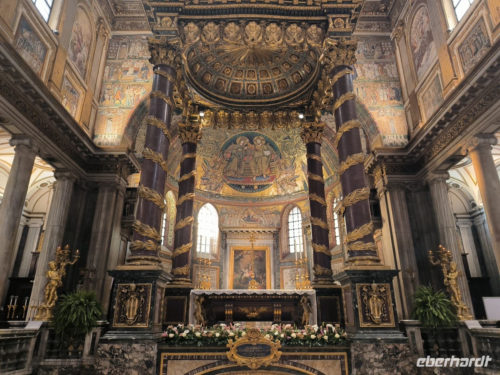 Die Freizeit am verbleibenden Nachmittag wird unterschiedlich genutzt. Manche Gäste besteigen das Nationaldenkmal und genießen von dort das Panorama. Andere machen eine Kaffeepause im Universitätsviertel und besuchen Michelangelos Moses in der Kirche San Pietro in Vincoli. Danach haben wir uns ein Eis in einer der besten Gelaterias verdient, bevor wir die Basilika Santa Maria Maggiore besuchen, wo wir sogar durch eine der vier heiligen Pforten nach Innen gehen können. Was für ein Highlight! Durch den Stadtteil Monti spazieren wir zurück zum Treffpunkt.