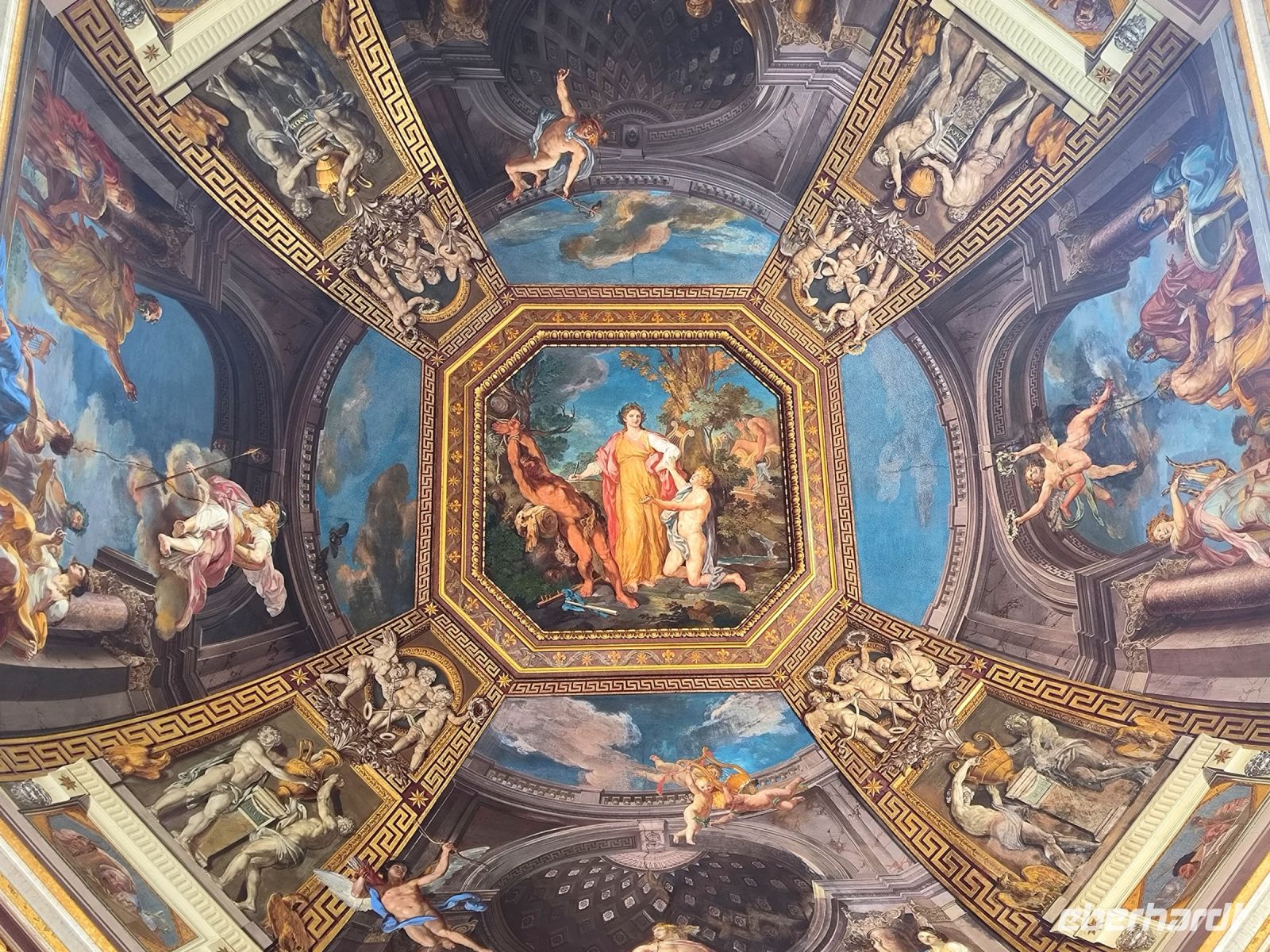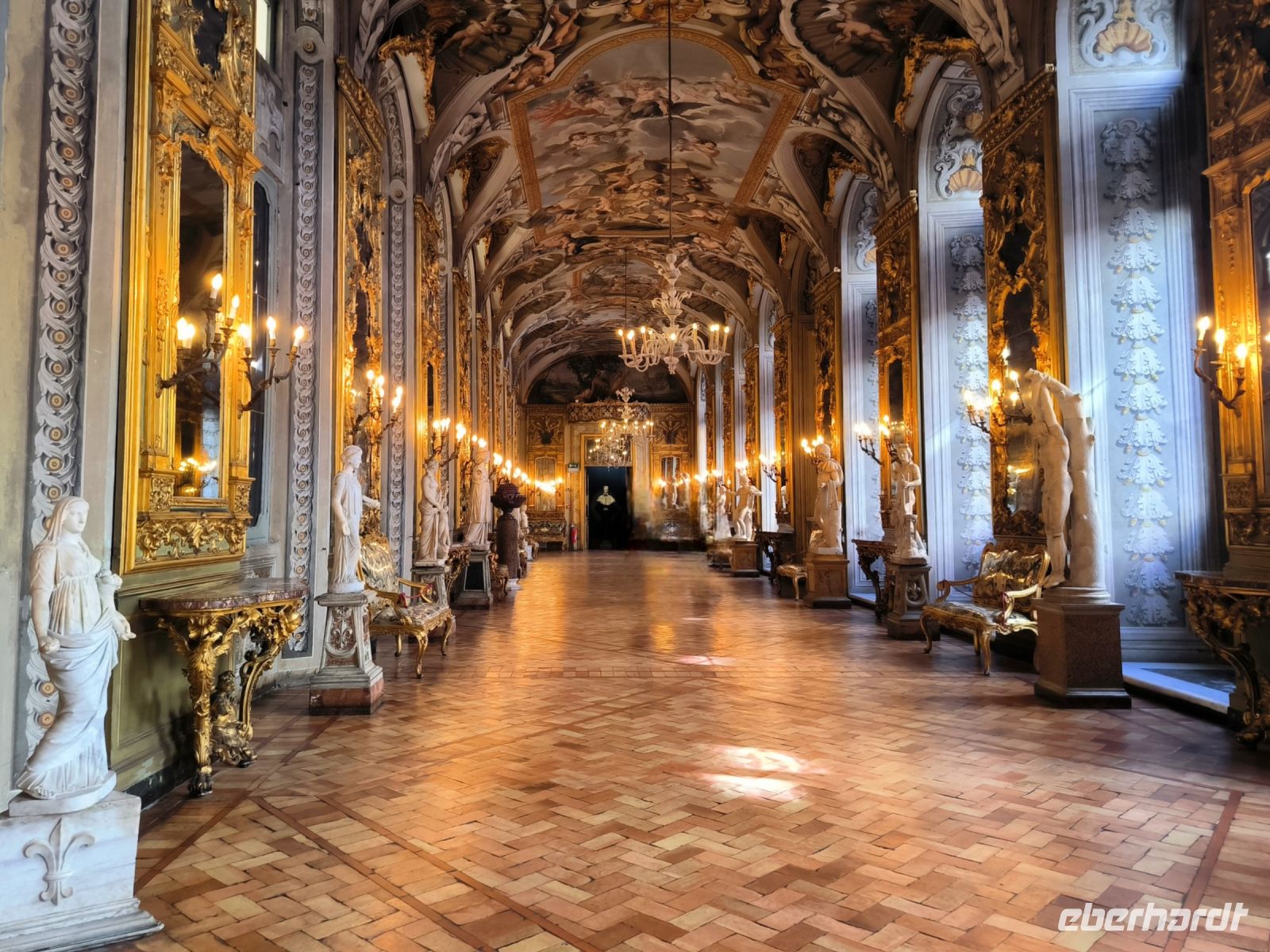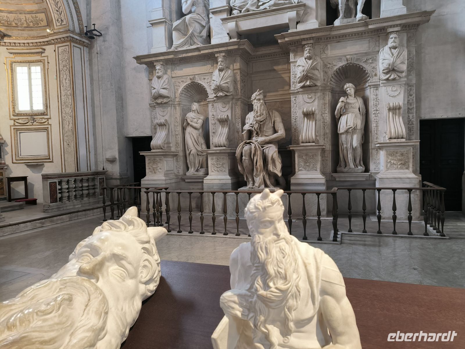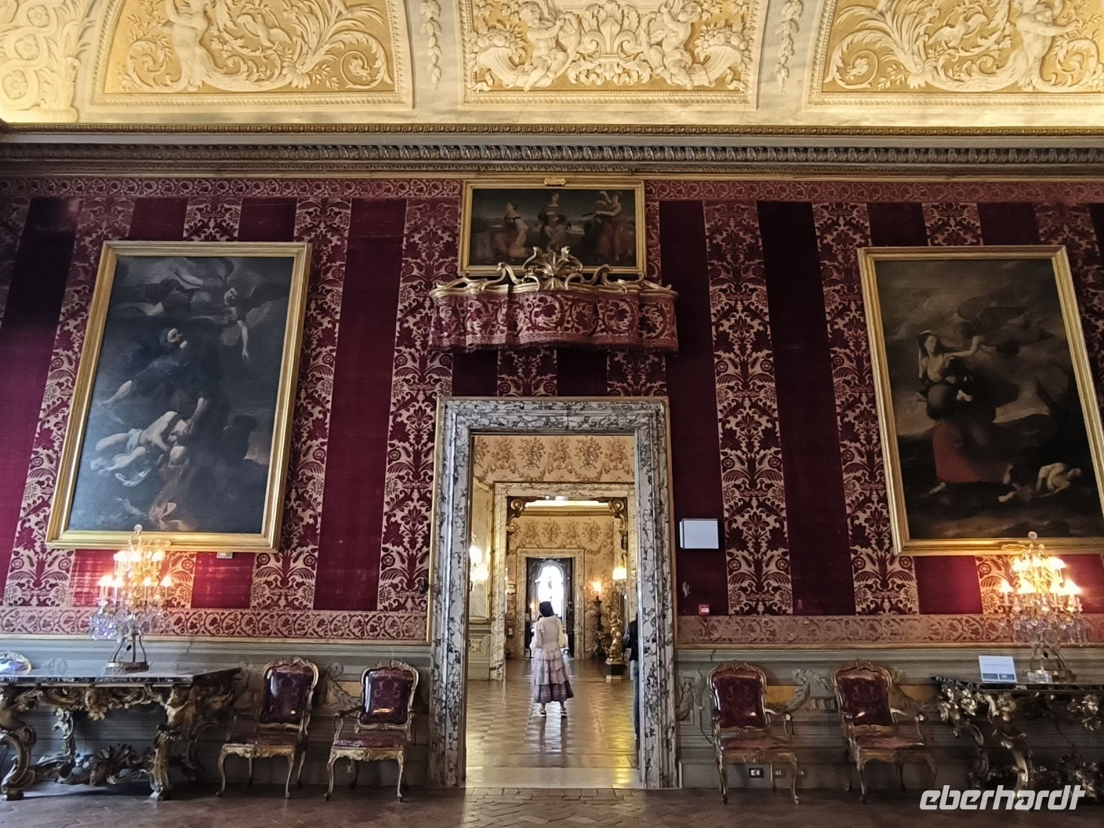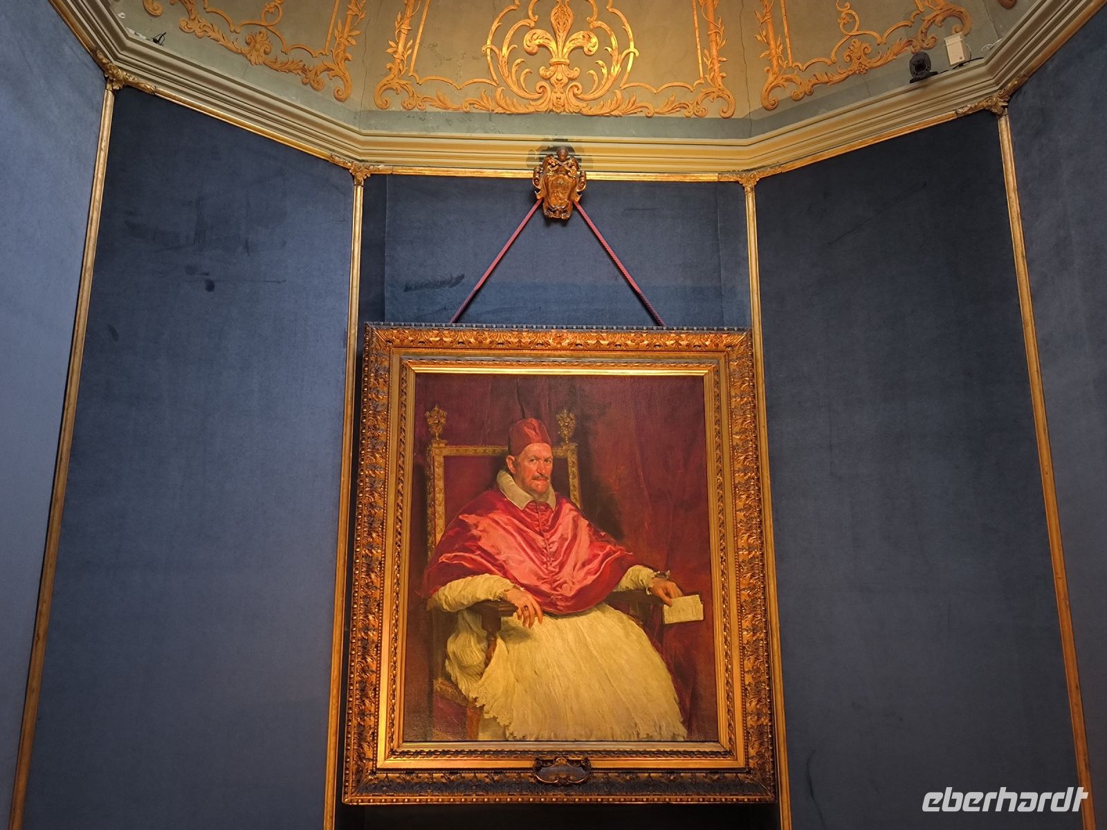 Nach dieser Erfrischung führt uns Sylvia noch zur Piazza della Minerva mit dem berühmten Elefanten-Obelisken und der Kirche, in der sich eine Jesusstatue von Michelangelo befindet. Ein paar Straßen weiter stehen wir am Corso vor dem Palazzo, der die Galleria Doria Pamphilj beherbergt. Sie enthält über die barocken Säle mit Mobiliar und Innendekorationen hinaus eine der bedeutendsten privaten Kunstsammlungen in Rom mit zahlreichen Gemälden alter Meister von Raffael, Tintoretto, Caravaggio bis Jan Brueghel d. Ä. und vielen anderen. Die historische Hängung in originalen Schauräumen des 17. und 18. Jahrhunderts sowie unzählige antike und barocke Skulpturen und Büsten beeindrucken uns sehr. Dabei genießen wir es, uns nicht durch Massen von Touristen schieben zu müssen. Auch ein berühmtes Porträt des Papst Innozenz X. – gemalt von Velázquez – hängt hier.