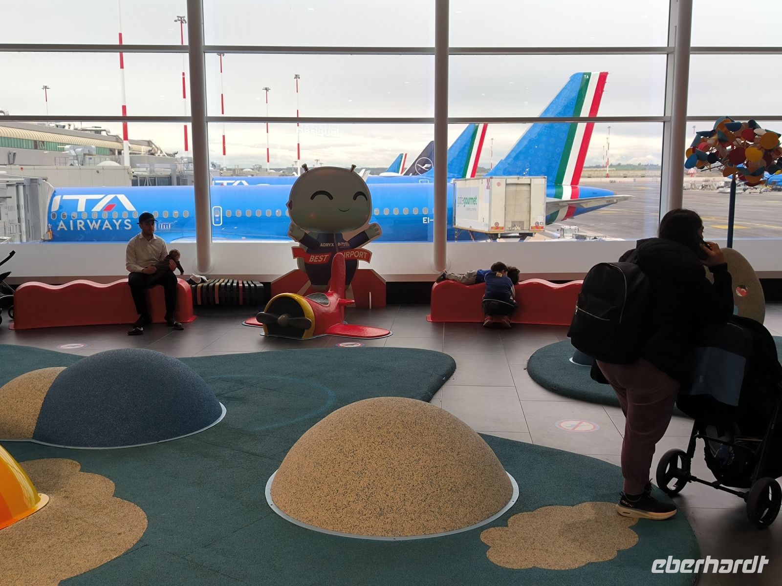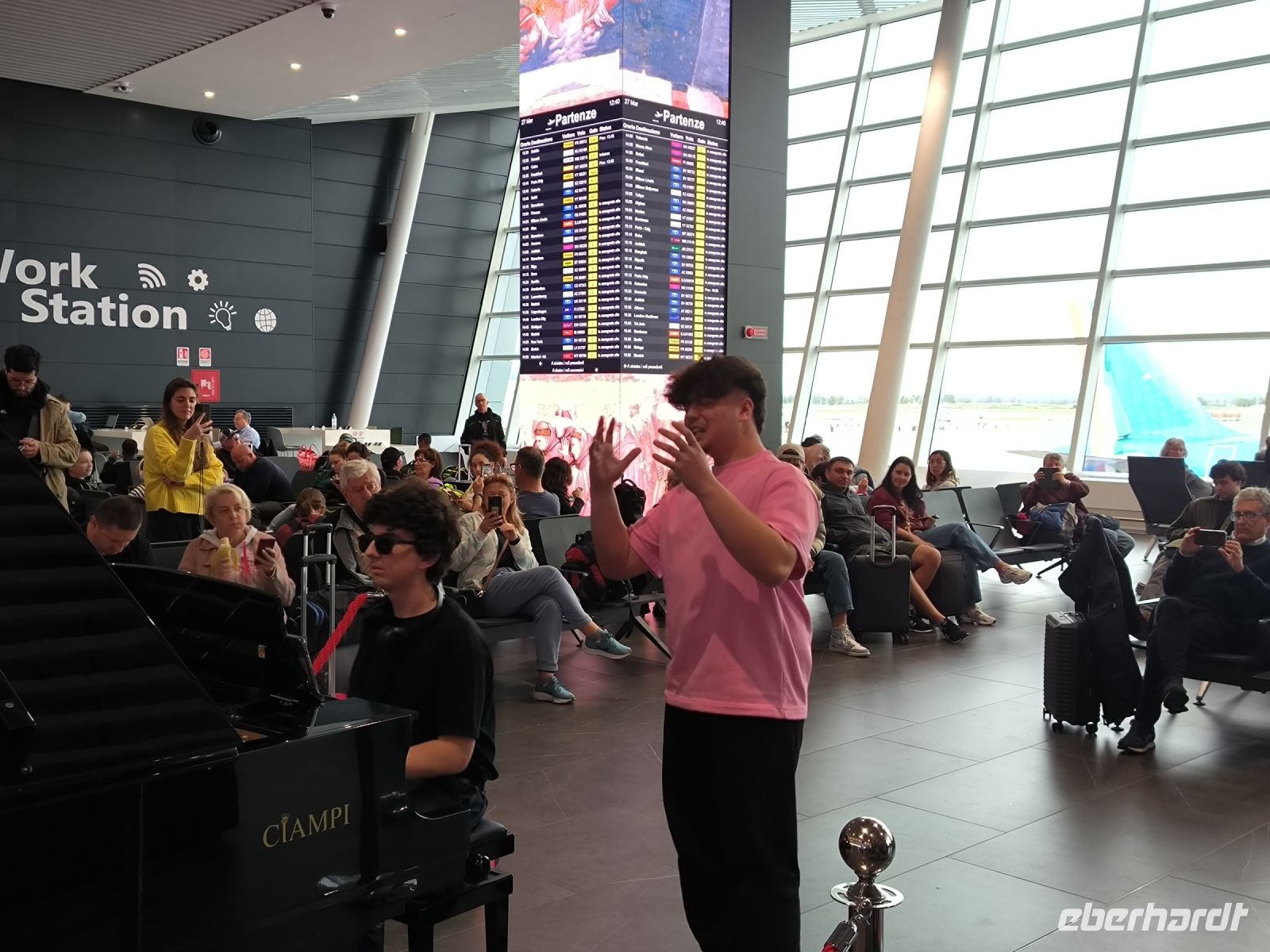 Unsere gutaussehenden Chauffeure erwarten uns mit einem Schild mit der Aufschrift „Eberhardt TRAVEL“ im Ankunftsbereich, nachdem wir doch einige Zeit auf die Gepäckausgabe warten mussten.