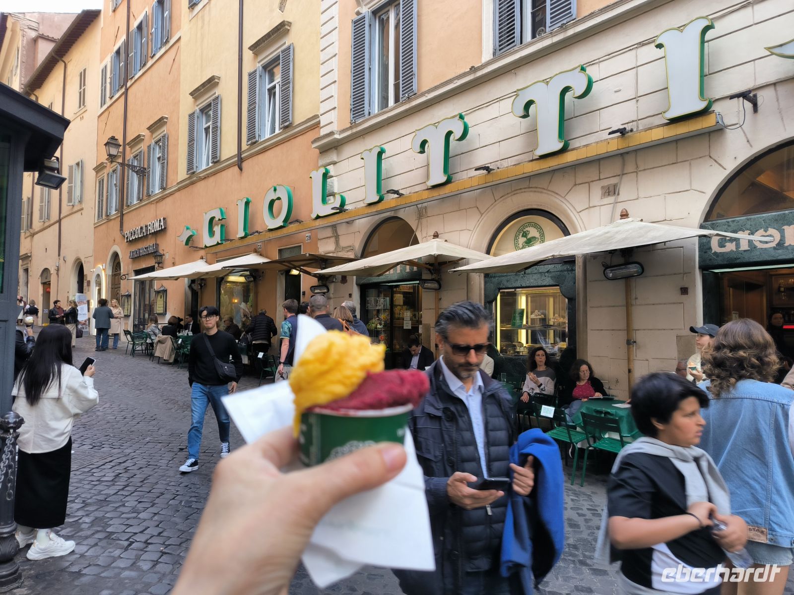 Es wird Zeit für eine Mittagspause. Einige entscheiden sich für einen Besuch der berühmten Gelateria Giolitti. Das Eis schmeckt hervorragend, aber leider ist es wie meist sehr voll hier.