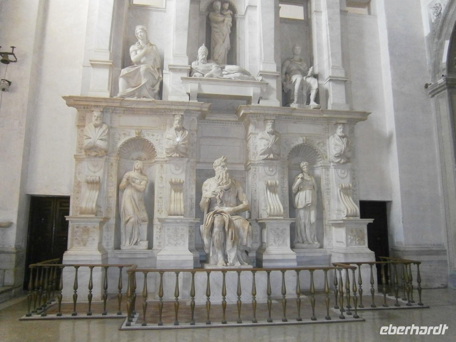 Kirche San Pietro in Vincoli, ursprünglich erbaut im Jahr 442. Hier liegen die Ketten, mit denen Petrus im Mamertinischen Kerker festgeschmiedet gewesen sein soll, als Reliquie. Wie alle Besucher, bestaunen wir den von Michelangelo geschaffenen "Moses"