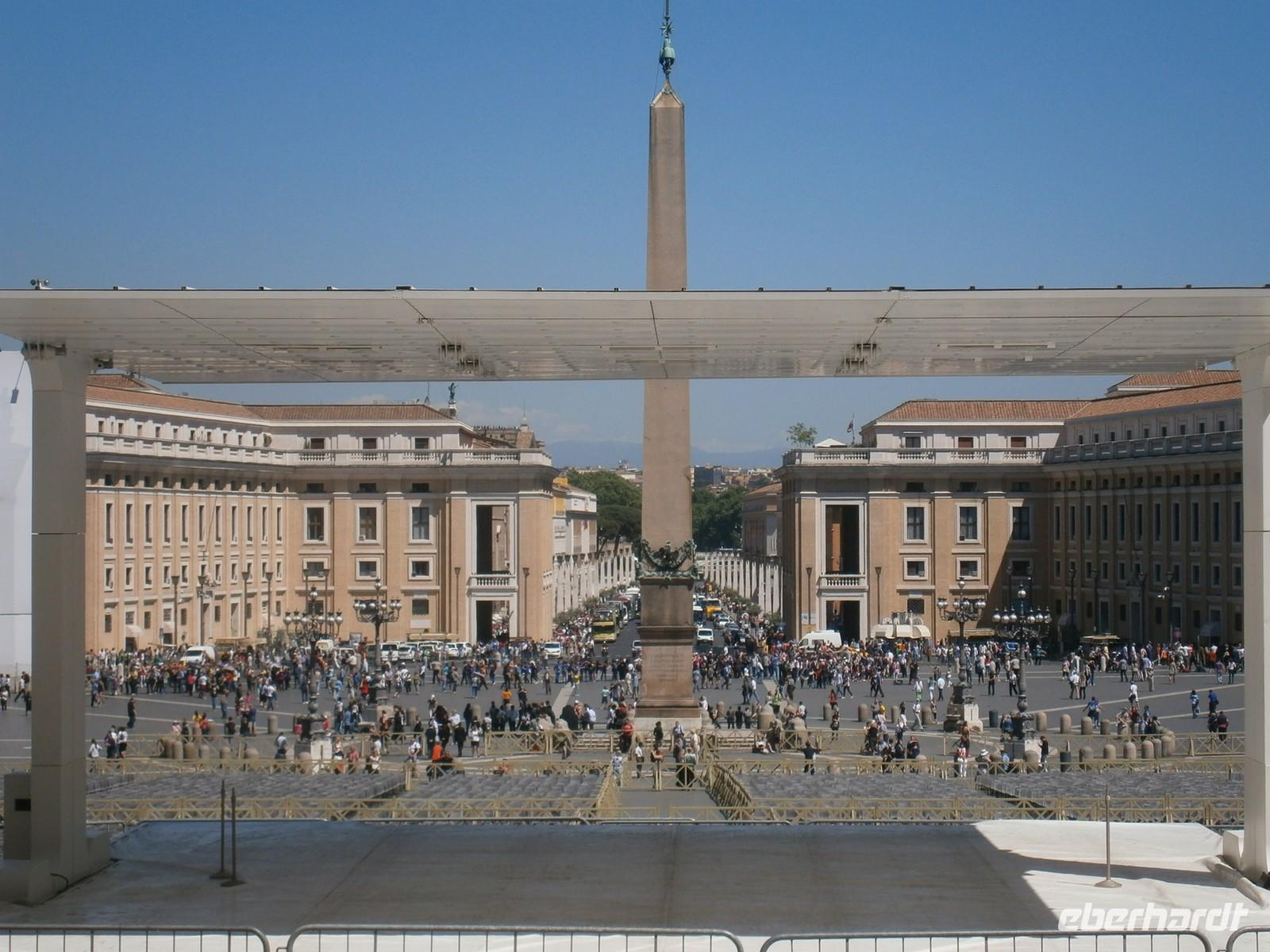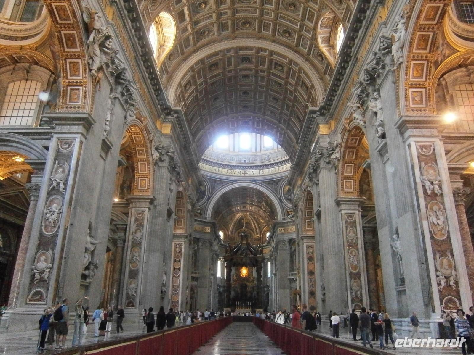 Nach der wohlverdienten Mittagspause reihen wir uns ein, in die Schlange der Wartenden, um in die Peterskirche zu gelangen. Maria Teresa verkürzt uns die Wartezeit mit Informationen rund um die Kirche. Vor der Besichtigung des Petersdomes geht es erst einmal durch die Sicherheitskontrolle. Hosentaschen leeren, Gürtel abschnallen, Taschen auf das Band legen. Nächste Schrecksekunde: Ein Taschenmesser hat sich doch noch in der Hosentasche versteckt.