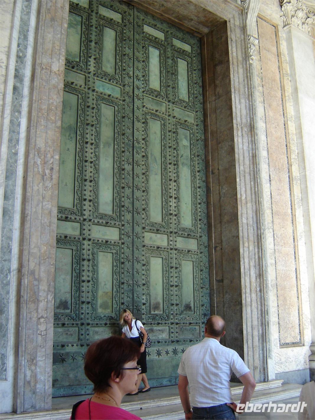 Die Morgensonne weckte uns mit ihren warmen Strahlen. Die heutige Führung ermöglicht uns, die schönsten Kirchen und Kathedralen der Stadt zu besichtigen. Wieder mit der Metro unterwegs begeben wir uns zur Basilika Sankt Johann im Lateran, wo unsere Reiseleiterin Ageniezska schon auf uns wartet. Die Basilika, auch „San Giovanni“ ist wahrscheinlich die älteste der Christenheit. Wir erfuhren, dass sie die erste und wichtigste Kirche nach dem Petersdom ist, denn sie ist die Kathedrale von Rom. Der Papst ist gleichzeitig Bischof von Rom und lange Zeit durfte nur er am Hauptaltar der Erzbasilika die Messe feiern.
