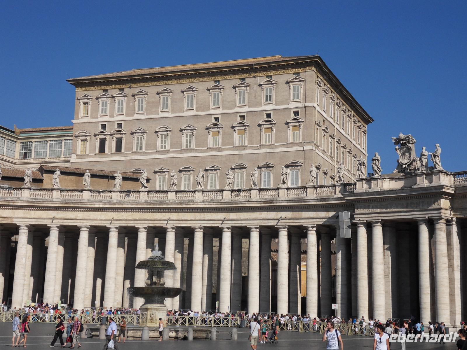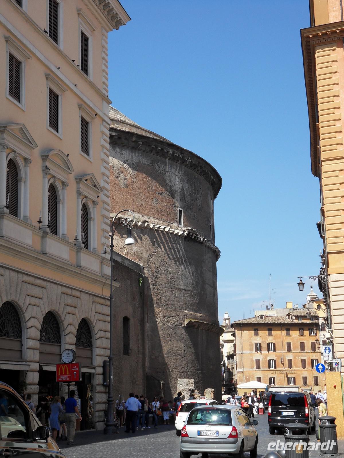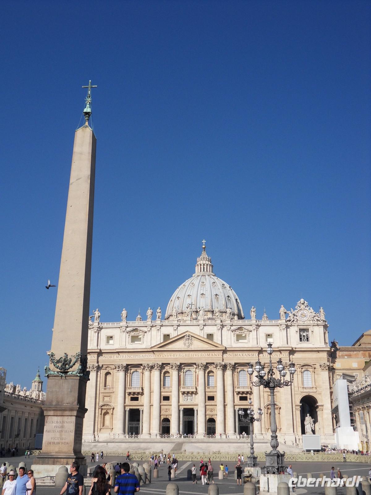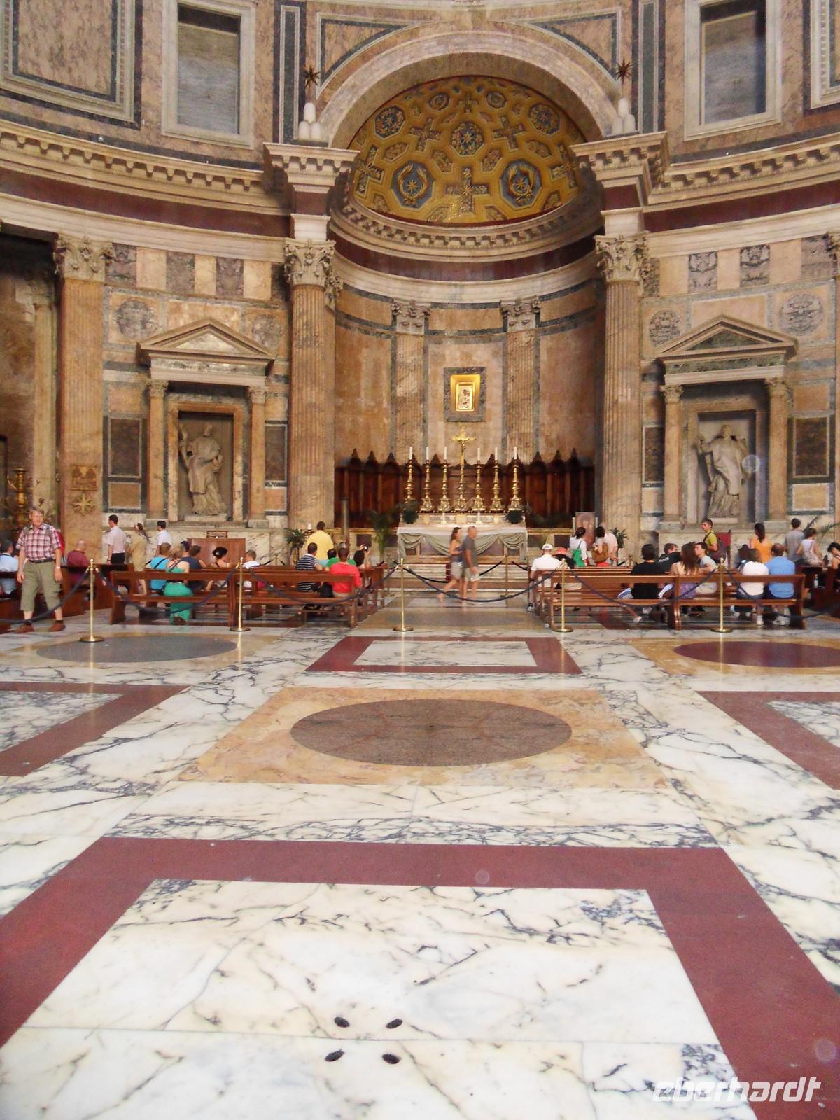 Nach dem Frühstück trafen wir noch im Hotel unsere Stadtführerin Agnieszka. Mit ihr fuhren wir nach einer kurzen Vorstellungsrunde mit der U-Bahn bis zur Spanischen Treppe, die auch am Morgen erstaunlich gut besucht ist! Nach einer kurzen Fotopause ging es durch Sträßchen und Gässchen weiter zum berühmten Trevi-Brunnen! Natürlich musste ich hier Münzen hineinwerfen, aber wichtig: mit der rechten Hand über die linke Schulter!! Nach etwas Freizeit, dass ich für ein leckeres italienisches Eis nutzte, gingen wir weiter zum Pantheon, das zwischen Häusern versteckt liegt und erst zu sehen ist, wenn man schon gleich da ist. Die Dimensionen dieses Baus werden beim Besuch noch deutlicher, denn die riesige Kassettendecke mit dem 9m breiten, offenen Okulus, durch den es auch hineinregnen kann, sind atemberaubend. Zum Glück gibt es aber im Boden auch kleine integrierte Abflusslöcher für das Regenwasser. Man hat also auch schon im 1. Jh. nach Christus an alles gedacht.