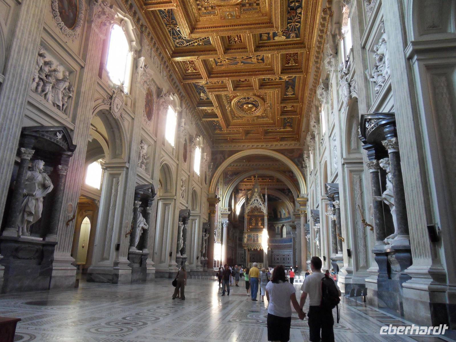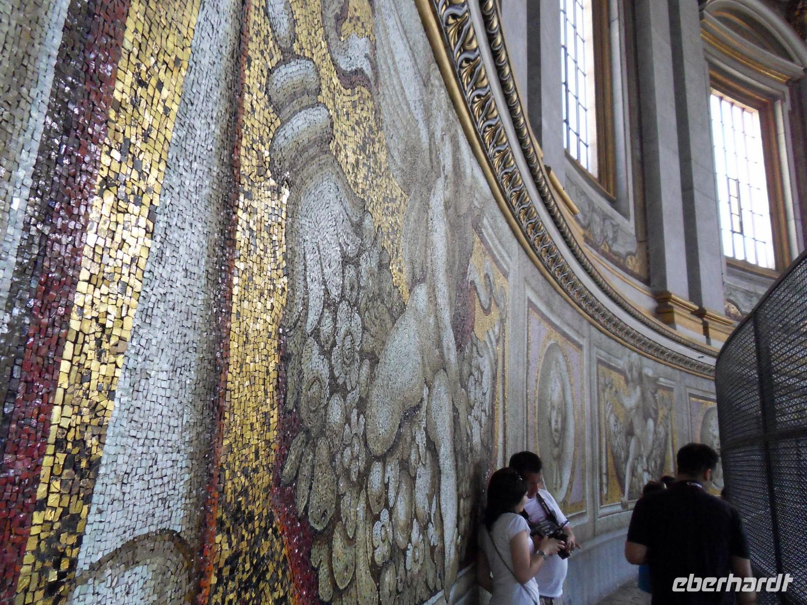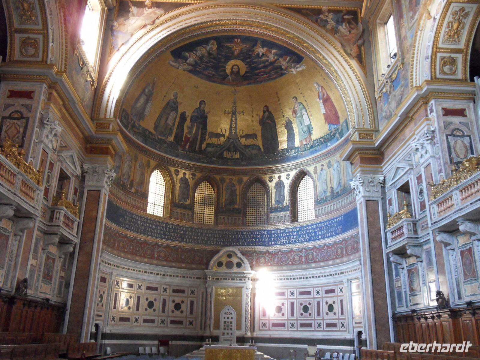 Am frühen Morgen machten wir uns auf den Weg zu San Giovanni in Lateran, wo wir Agnieszka trafen und mit Audioguides ausgestattet wurden. Bevor wir jedoch diese Kirche betraten, wagten wir nebenan einen Blick auf die Scala Santa - die Heilige Treppe, die Jesus auf Knien hinaufgegangen sein soll und angeblich durch die Mutter Kaiser Konstantins nach Rom kam. Die Bischofskirche von Rom beeindruckte durch ihre prächtige barocke Ausstattung, den reich verzierten Fußboden und die Mosaiken in der Apsis. Interessanterweise gibt es hier auch einen Beichtstuhl zum Ablegen der Beichte in deutscher Sprache.