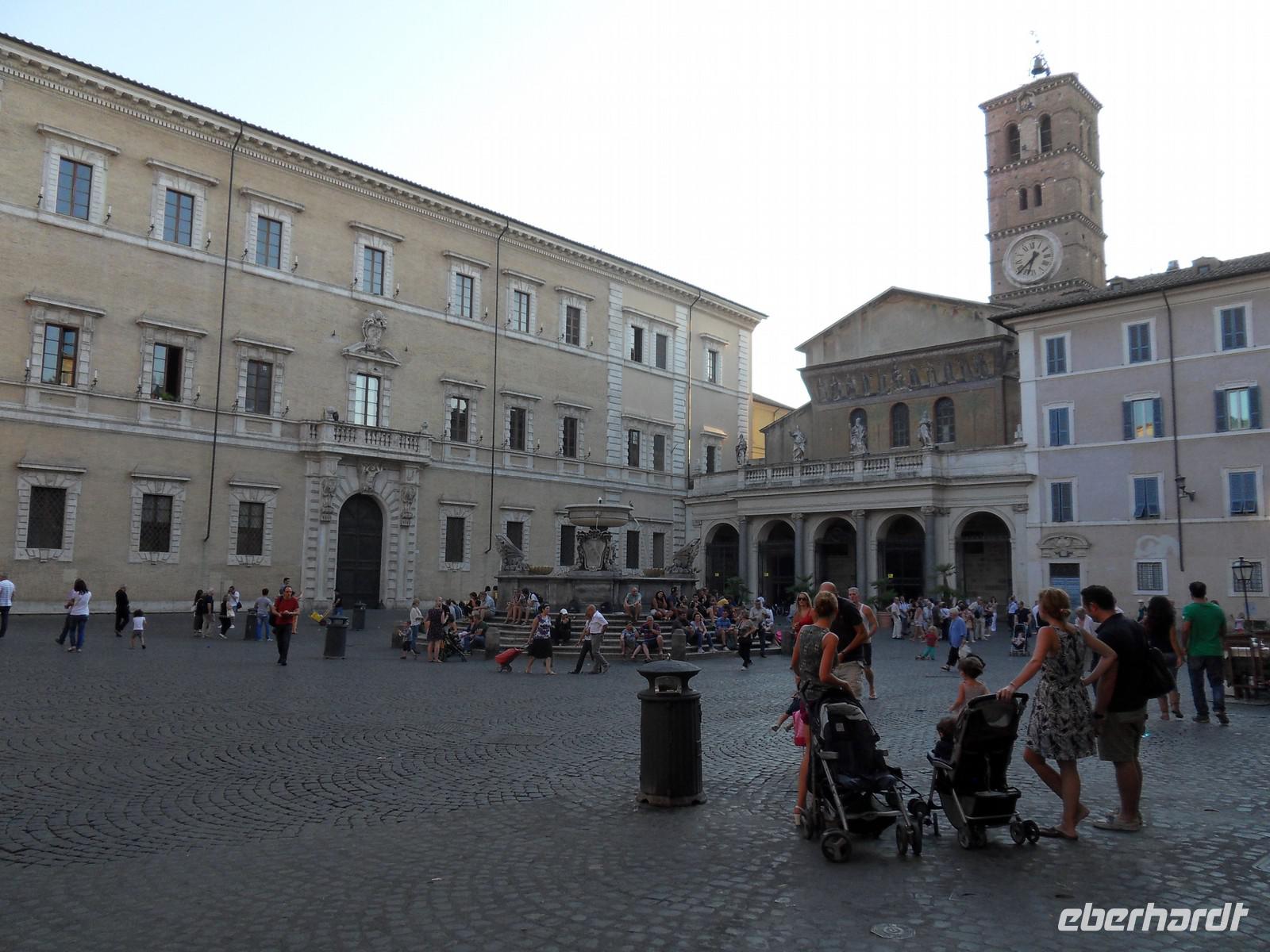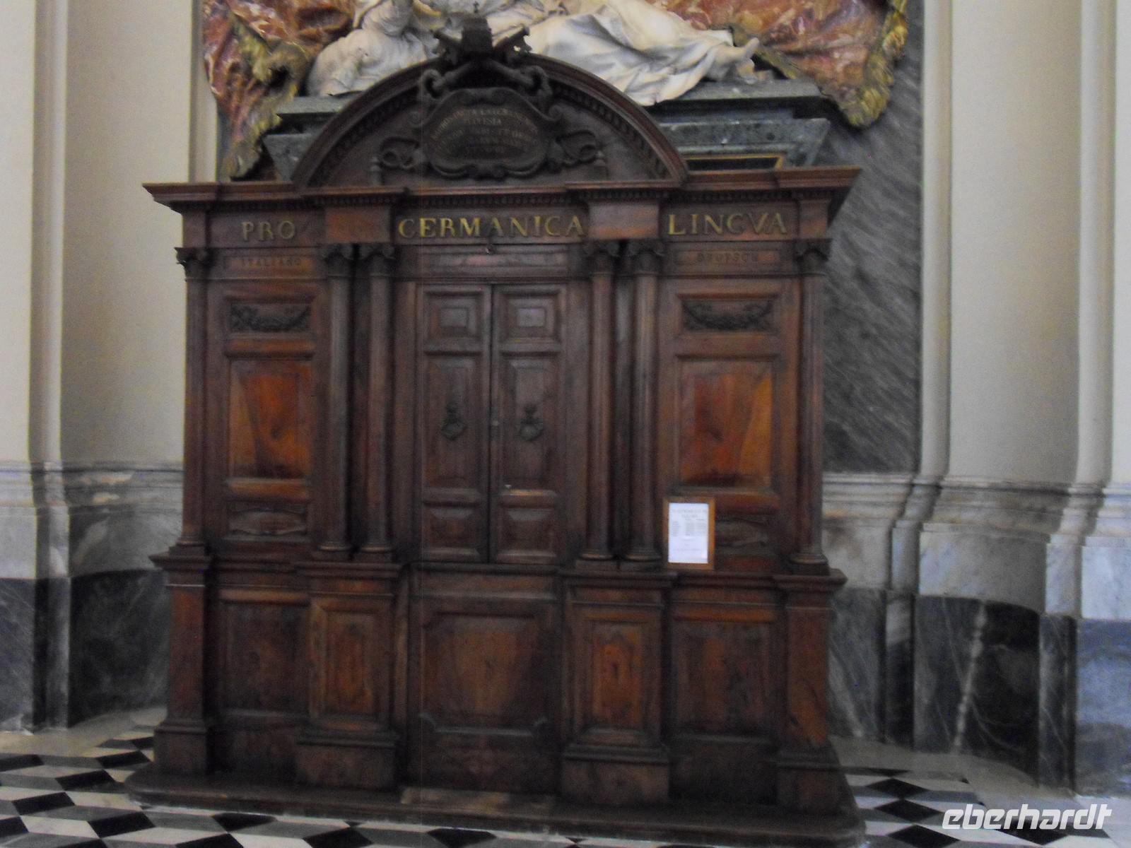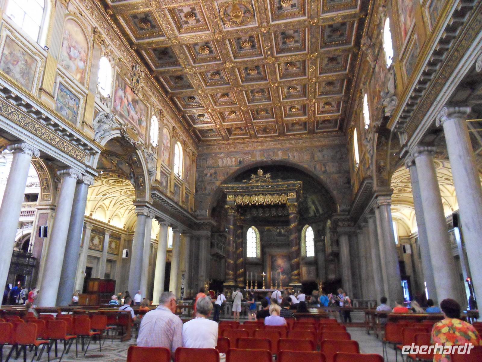 Am frühen Morgen machten wir uns auf den Weg zu San Giovanni in Lateran, wo wir Agnieszka trafen und mit Audioguides ausgestattet wurden. Bevor wir jedoch diese Kirche betraten, wagten wir nebenan einen Blick auf die Scala Santa - die Heilige Treppe, die Jesus auf Knien hinaufgegangen sein soll und angeblich durch die Mutter Kaiser Konstantins nach Rom kam. Die Bischofskirche von Rom beeindruckte durch ihre prächtige barocke Ausstattung, den reich verzierten Fußboden und die Mosaiken in der Apsis. Interessanterweise gibt es hier auch einen Beichtstuhl zum Ablegen der Beichte in deutscher Sprache.