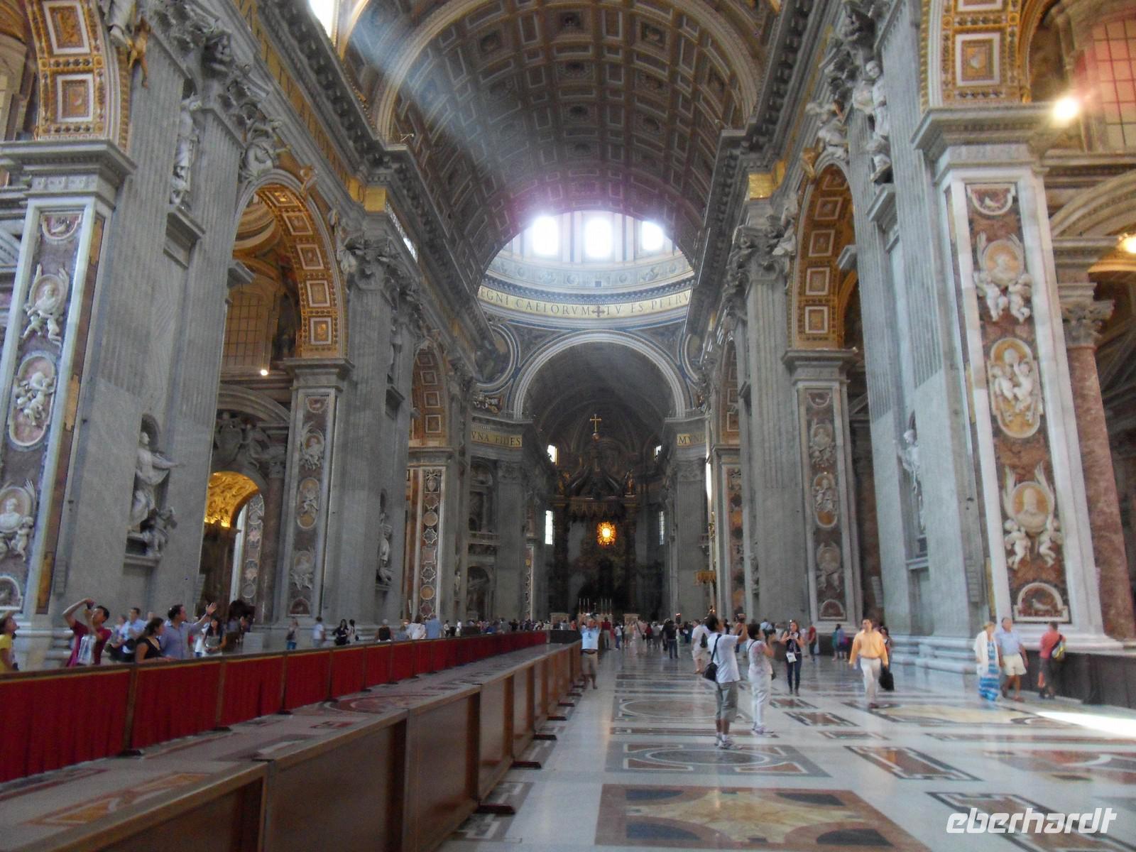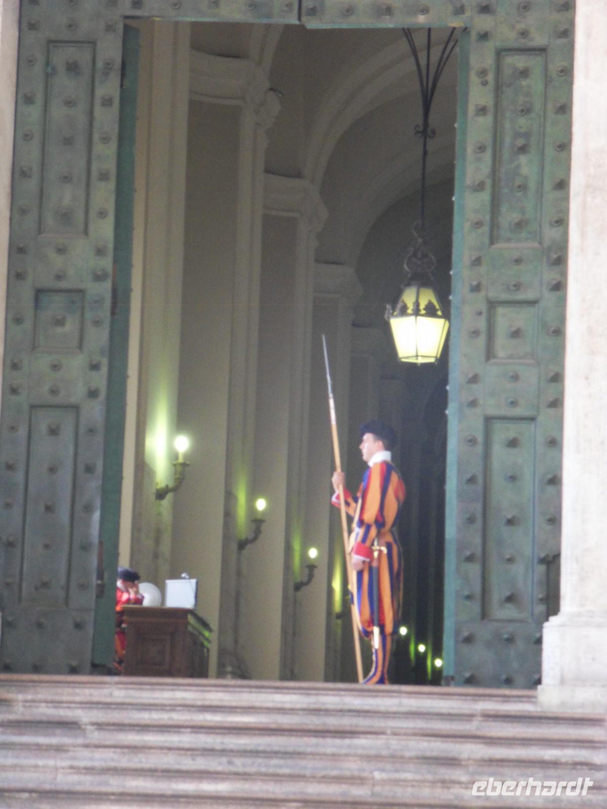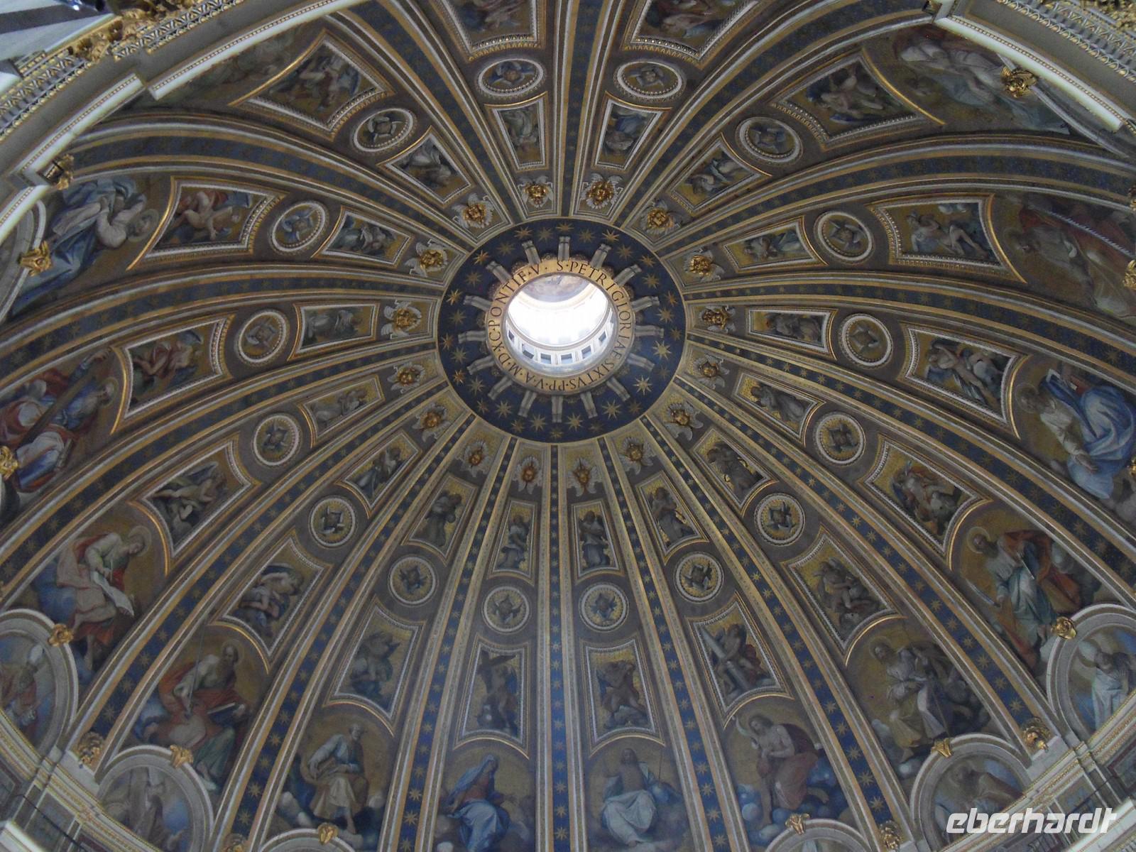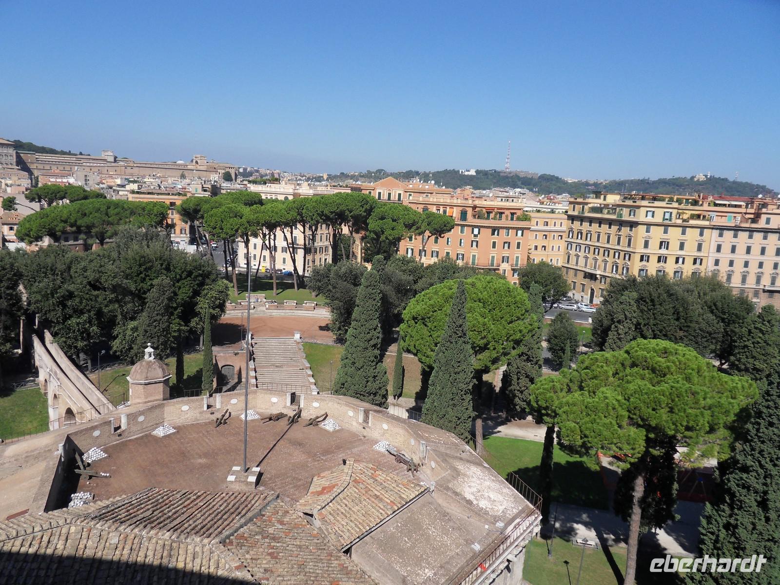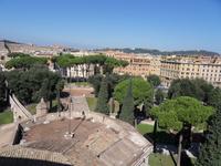 Unser nächster Programmpunkt war die Kirche Santa Maria Maggiore. Hier konnten wir prächtige, leicht gewölbte Kassettendecke bestaunten, die mit Gold aus Südamerika verziert ist. Nach einer Mittagspause ging es weiter zum - wie ich finde - Höhepunkt des heutigen Tages: in den Petersdom. Leider befand sich der Papst derzeit nicht in Rom, doch wir sahen trotzdem Wachmänner der Schweizer Garde und waren beeindruckt von den gewaltigen Ausmaßen des Bauwerks, in das sogar der Kölner Dom hineinpassen würde. Nachdem uns Agnieszka zu zahlreichen Besonderheiten wie dem Heiligen Jahr, der Pieta sowie den Größenverhältnissen und zahlreichen Päpsten und königlichen Herrschern Europas Erklärungen gegeben hat, nutzten wir die Freizeit am Nachmittag, um Briefmarken in der Vatikanischen Post zu holen oder die Kuppel des Petersdoms zu erklimmen. Am einfachsten ging das zunächst per Lift und dann waren es nur noch 320 Stufen bis ganz nach oben. Der Ausblick war einfach sagenhaft, auch wenn sich ein Foto durch die Menge der Menschen etwas schwierig gestaltete. Mit vielen Informationen und tollen Eindrücken kehrten wir dann ins Hotel zurück, wo heute wieder ein leckeres Abendessen auf uns wartete.