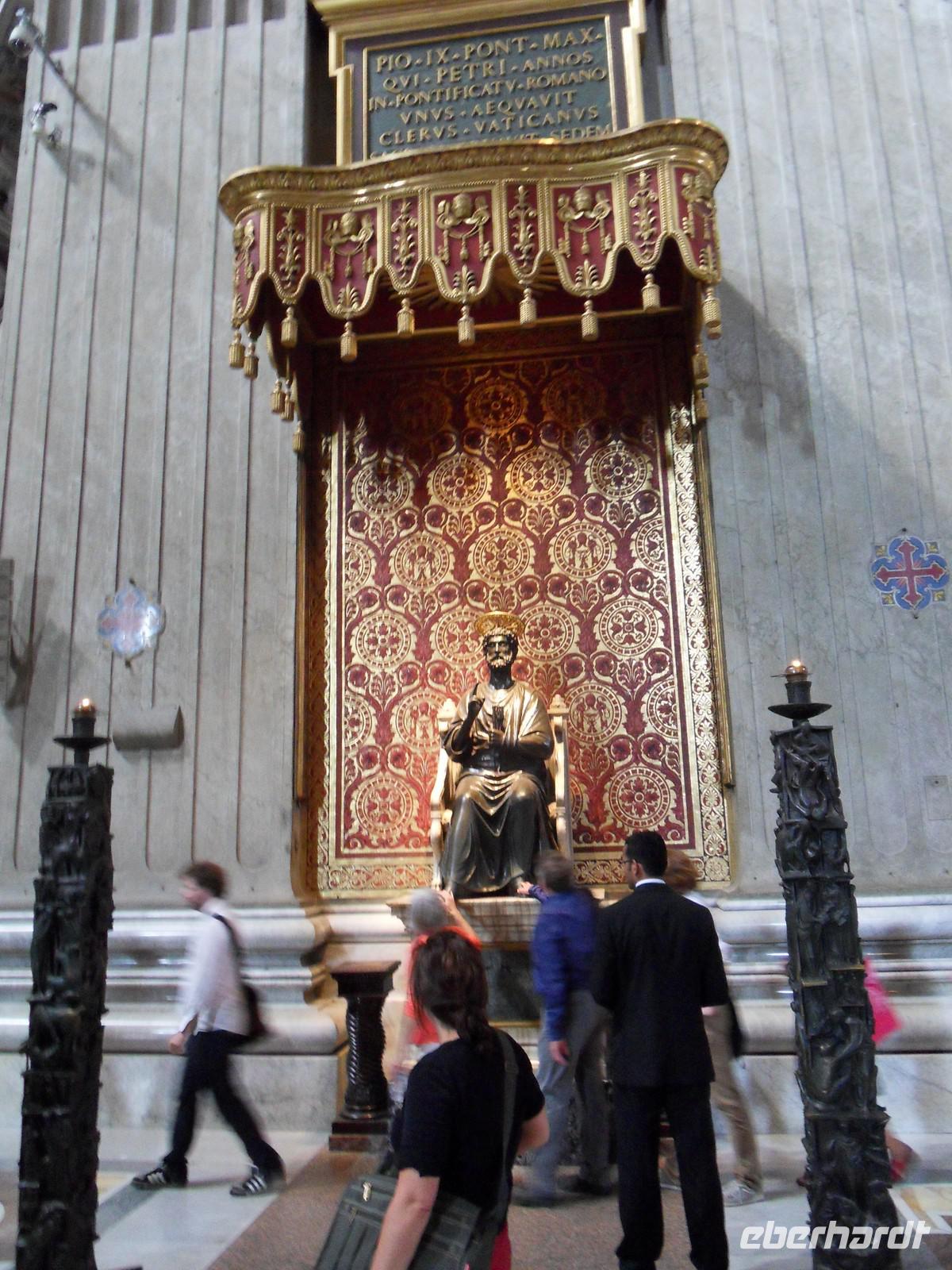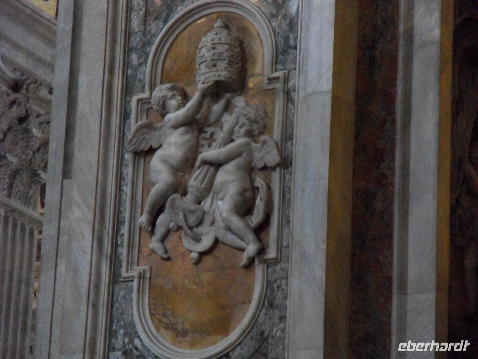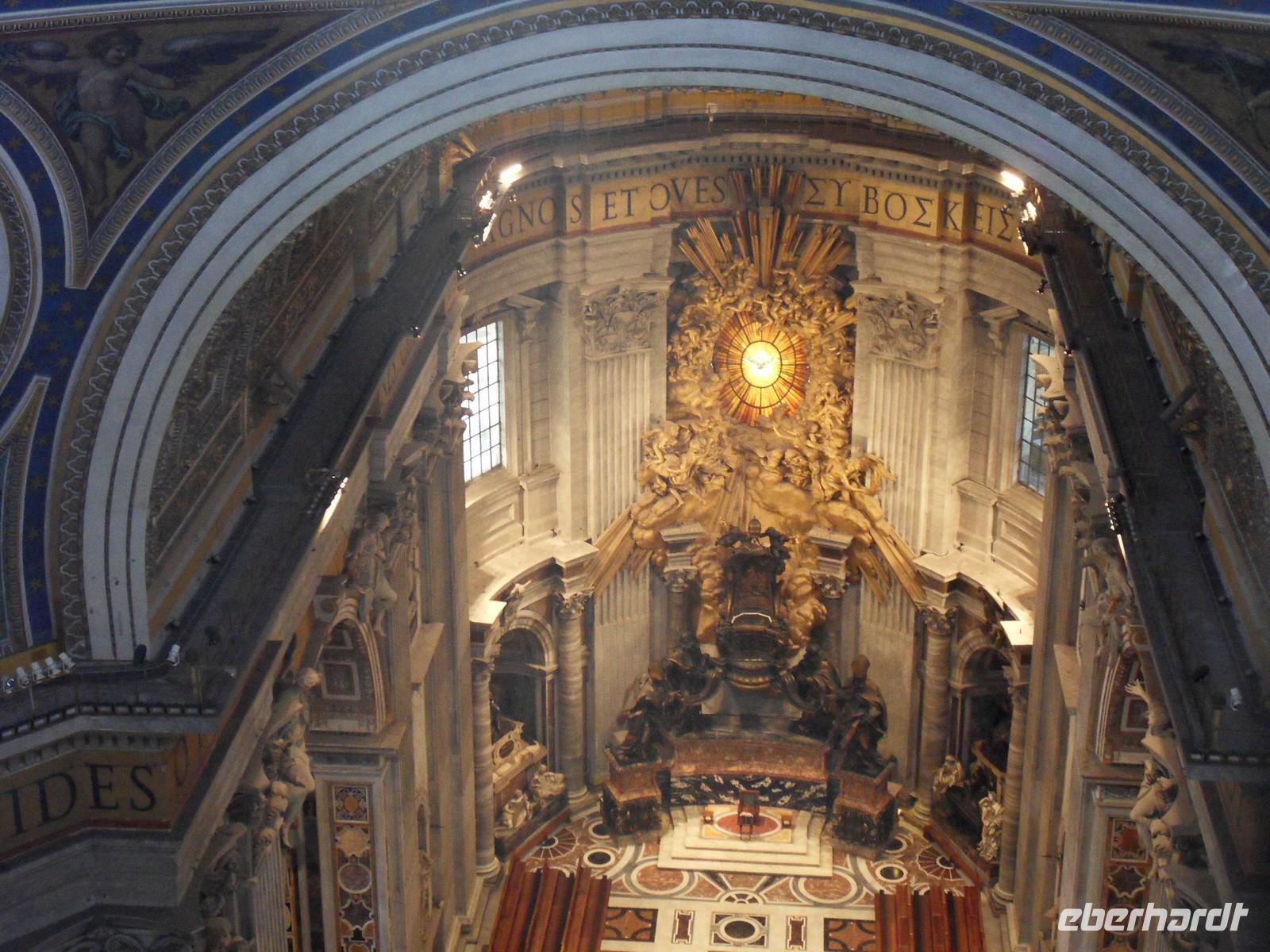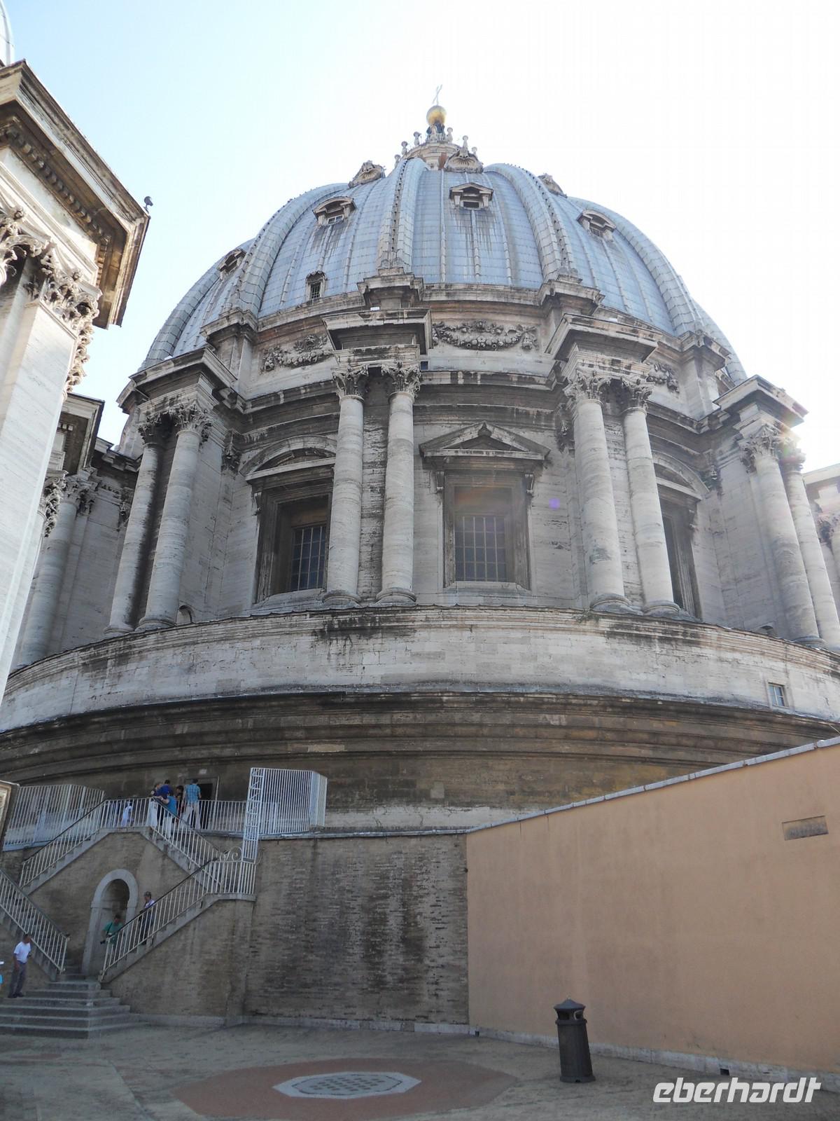 Unser nächster Programmpunkt war die Kirche Santa Maria Maggiore. Hier konnten wir prächtige, leicht gewölbte Kassettendecke bestaunten, die mit Gold aus Südamerika verziert ist. Nach einer Mittagspause ging es weiter zum - wie ich finde - Höhepunkt des heutigen Tages: in den Petersdom. Leider befand sich der Papst derzeit nicht in Rom, doch wir sahen trotzdem Wachmänner der Schweizer Garde und waren beeindruckt von den gewaltigen Ausmaßen des Bauwerks, in das sogar der Kölner Dom hineinpassen würde. Nachdem uns Agnieszka zu zahlreichen Besonderheiten wie dem Heiligen Jahr, der Pieta sowie den Größenverhältnissen und zahlreichen Päpsten und königlichen Herrschern Europas Erklärungen gegeben hat, nutzten wir die Freizeit am Nachmittag, um Briefmarken in der Vatikanischen Post zu holen oder die Kuppel des Petersdoms zu erklimmen. Am einfachsten ging das zunächst per Lift und dann waren es nur noch 320 Stufen bis ganz nach oben. Der Ausblick war einfach sagenhaft, auch wenn sich ein Foto durch die Menge der Menschen etwas schwierig gestaltete. Mit vielen Informationen und tollen Eindrücken kehrten wir dann ins Hotel zurück, wo heute wieder ein leckeres Abendessen auf uns wartete.