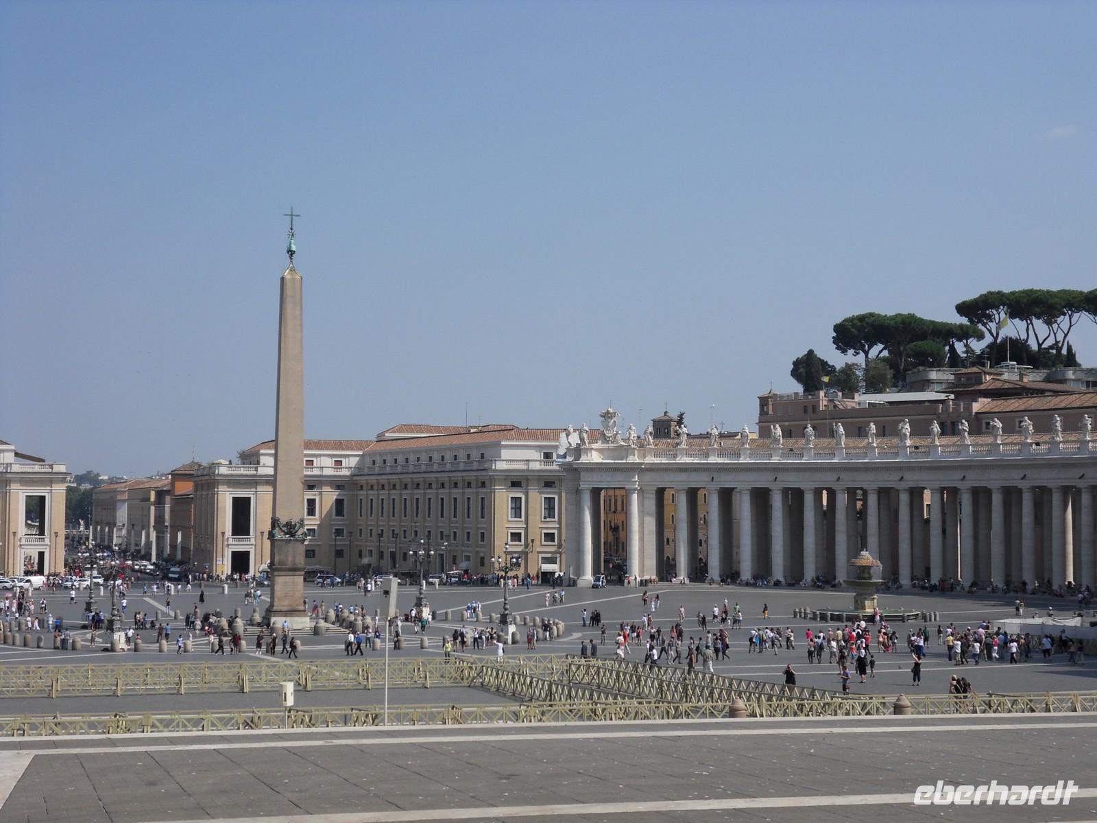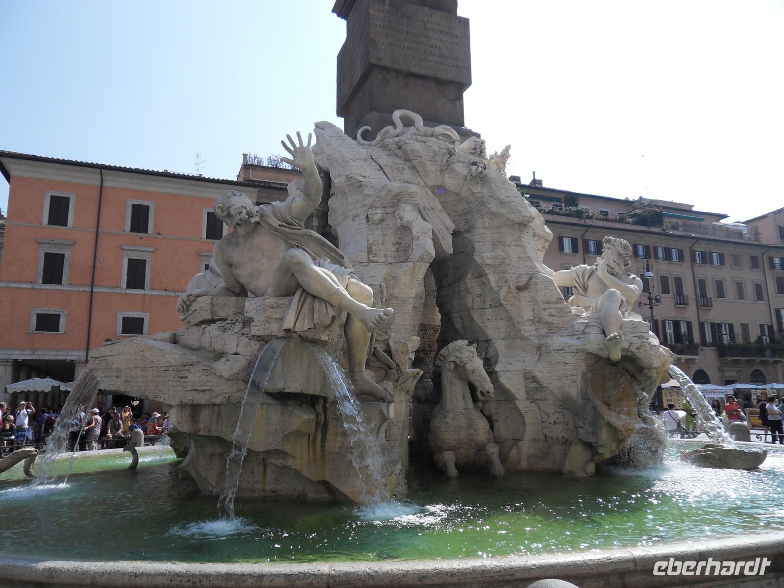Um die Zeit bis zur Abholung am frühen Nachmittag noch zu nutzen, machte ich mit einigen Gästen noch einen Abstecher zur Piazza del Popolo - diesmal bei Tageslicht - mit den Zwillingskirchen und dem Obelisken auch gut zu erkennen. Weiter ging es dann ein Stück die Via del Corso entlang bis zum Mausoleum des Augustus, von dem leider nur noch wenig zu sehen ist und alles durch Bauarbeiten gesichert wurde. Am Tiber entlang spazierten wir dann zur Piazza Navona, wo wir uns den Vier-Ströme-Brunnen natürlich nicht entgehen lassen konnten. Hier stellen viele Künstler ihre Werke zum Verkauf und es sind auch wirklich wunderschöne Gemälde dabei gewesen. Nach einer Mittagspause machten wir uns auf den Rückweg zum Hotel, wobei wir die Gelegenheit nutzten, sowohl der Engelsburg als auch dem Petersdom und -platz "Lebewohl" zu sagen.