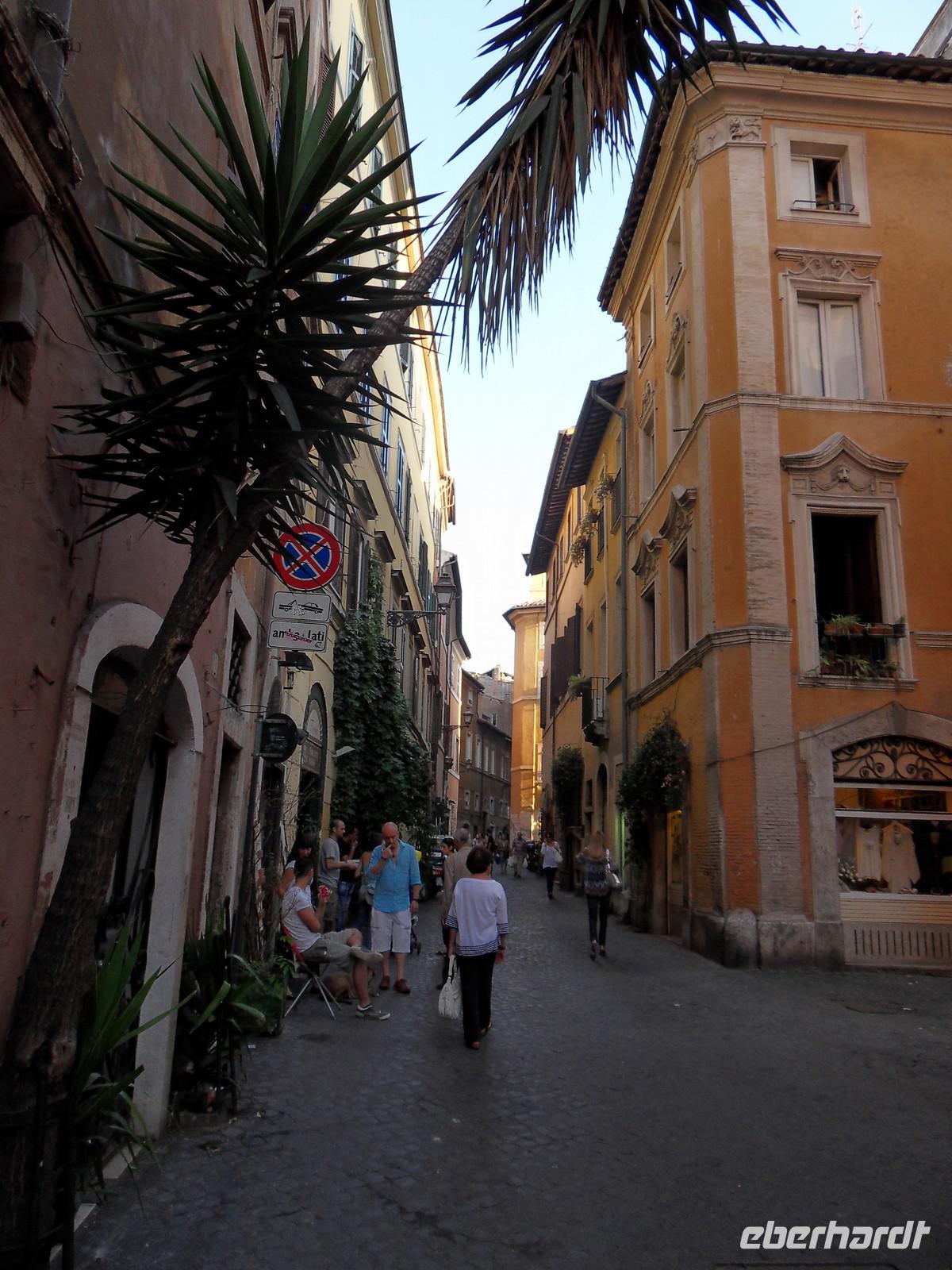 Kurz nach dem Mittag trafen wir uns dann am Eingang zu den Vatikanischen Museen, wo uns heute leider nicht Agnieszka führen konnte, sondern wir von Frau Kerstin Thiel-Lunghini einen Einblick in die Größe der päpstlichen Sammlungen erhalten konnten. Dank der Audioguides waren die Ausführungen trotz der Menschenmassen gut zu verstehen, auch wenn wir in der Zeit nur einen kurzen Überblick bekommen konnten. Das Highlight - die Sixtinische Kapelle - war aber leider etwas enttäuschend für uns. Zum einen war die Kapelle nicht wie auf zahlreichen Bildern zu sehen schön ausgeleuchtet, sondern wirkte eher düster und grau. Andererseits wurden dort die Menschenmassen einfach nur hindurchgeschleust, so dass weder andächtige Ruhe herrschen konnte noch man Zeit und Muße fand, sich alles genau anzuschauen (was wie gesagt bei den Lichtverhältnissen auch schwierig war). Anschließend an den Besuch hatten wir Freizeit bis wir uns am Abend in der Hotellobby trafen um gemeinsam mit dem Bus in den beliebten und lebendigen Stadtteil Trastevere zu fahren, wo wir heute zu Abend essen sollten. Da der Bus aber weitaus schneller kam als erwartet, hatten wir vor dem Abendessen noch Zeit für einen kleinen Spaziergang durch das Viertel und nutzten die Gelegenheit für ein Gruppenfoto.