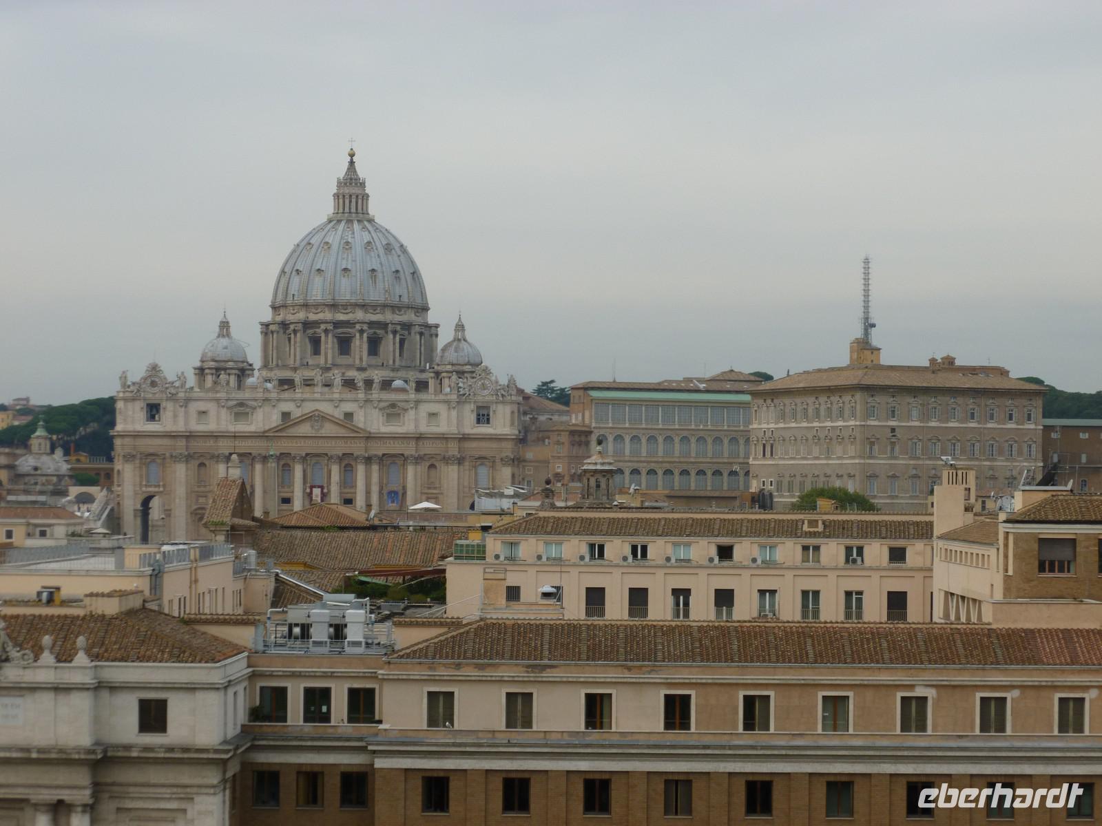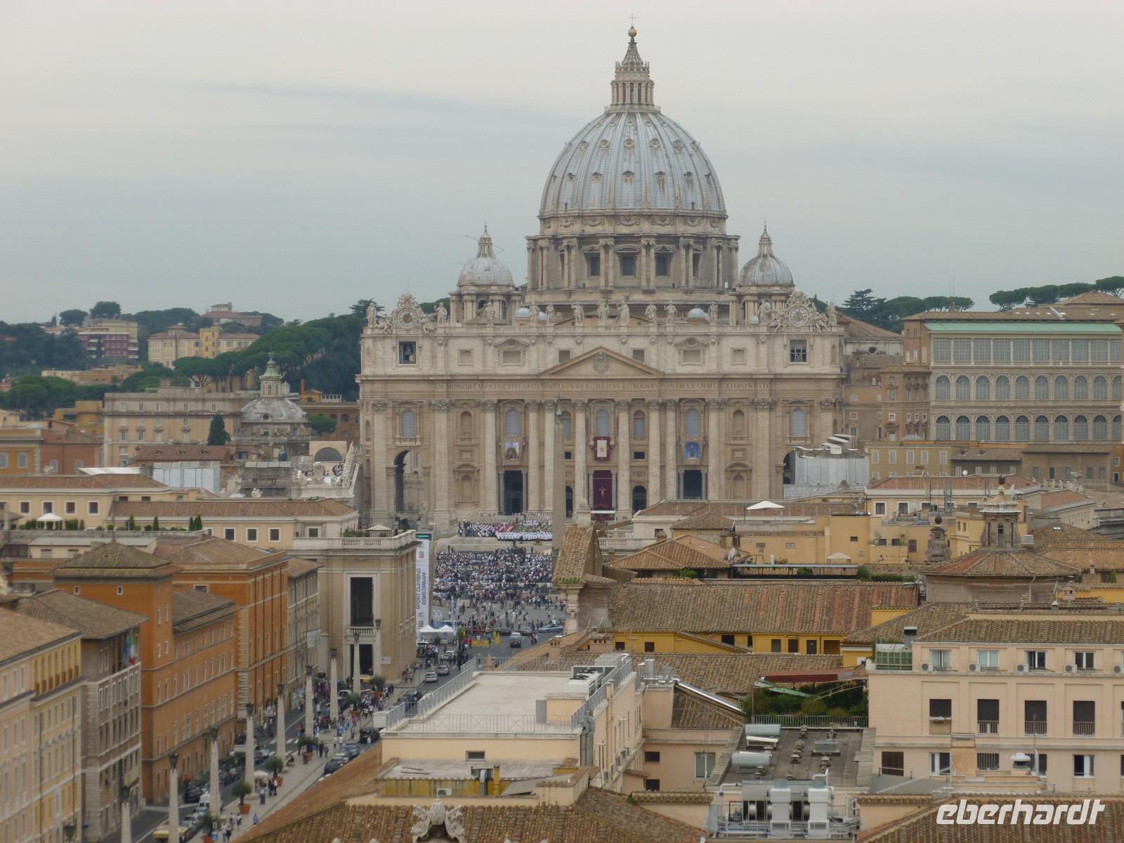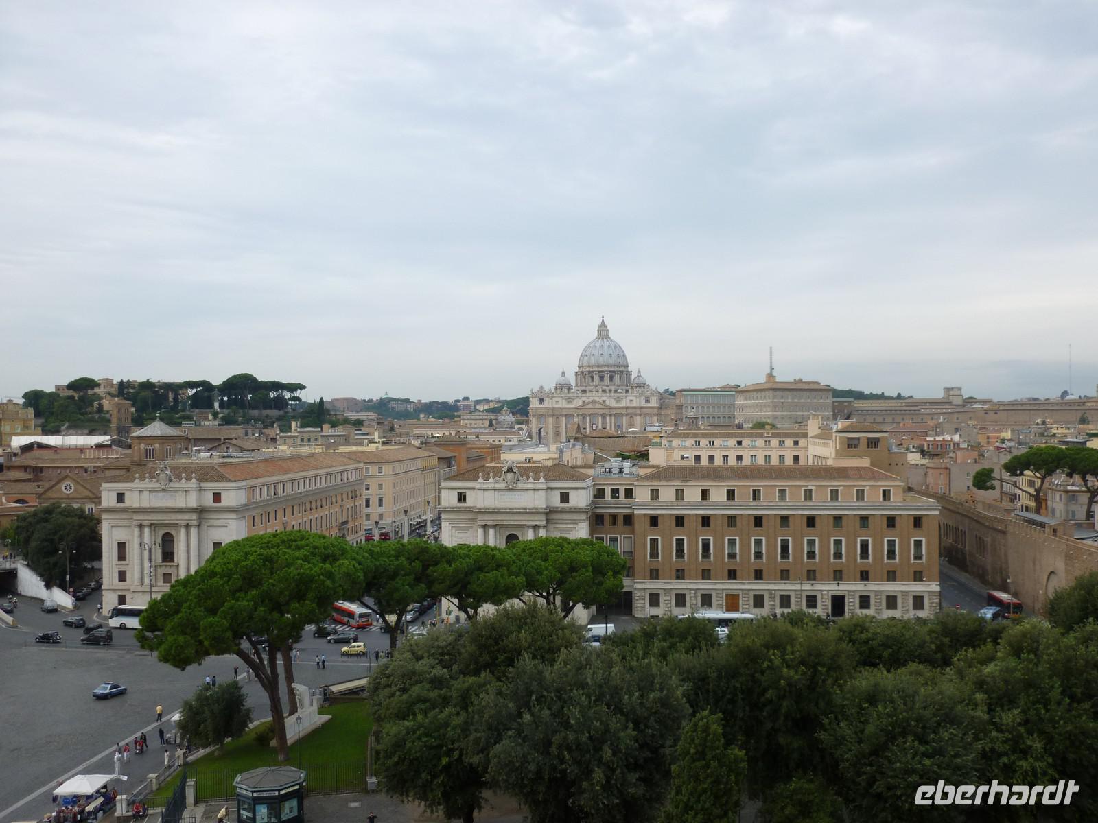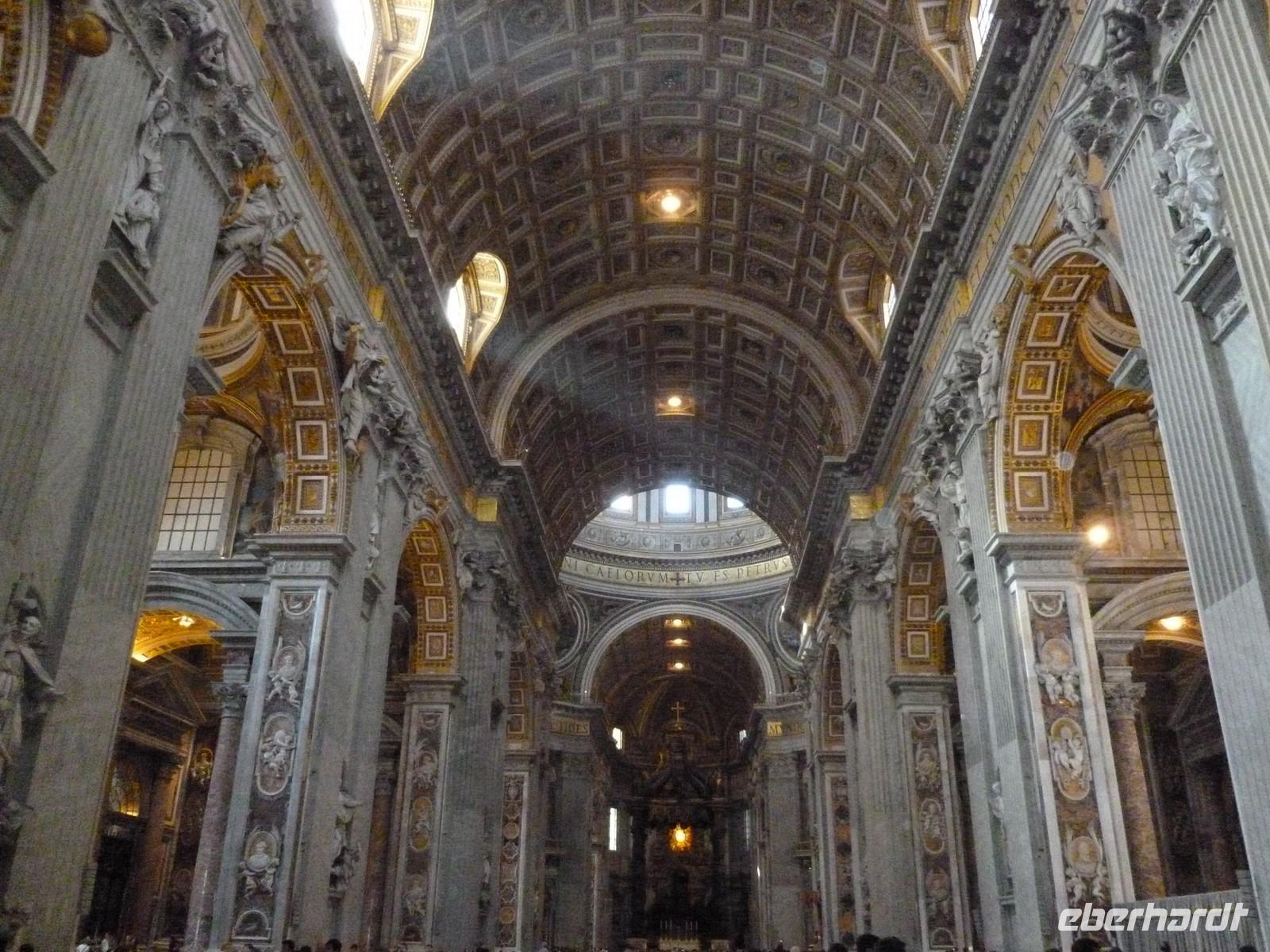 Unser dritter Tag in Rom stand ganz im Zeichen der Kirchen und Kathedralen. Gleich nach dem Frühstück machten wir uns auf den Weg zur San Giovanni Kirche. Dort wartete bereits Susanne und nahm uns mit in die Geschichte des Christlichen Roms. Schon der Eingangsbereich schien übermächtig groß und auch der Innenraum zeugte von einer architektonischen Meisterleistung. Nach einem ausgiebigen Rundgang ging es weiter zur nächsten Sehenswürdigkeit, der Basilika Santa Maria Maggiore. Diese erreichten wir nach einer kurzen Fahrt mit dem öffentlichen Linienbus. Bevor wir aber die Besichtigung der Kirche mit Ihrer wundervollen Kassettendecke begannen, genossen wir noch einen typischen italienischen Cappuccino in einem kleinen Straßencafé. Wunderschöne Malereien und Mosaikbilder sowie eine bewundernswerte Bauweise der Kirche erstaunten uns immer wieder auf Neue. Susanne hätte sicherlich noch eine ganze Weile über diese Kirche erzählen können aber es wartete noch die Hauptattraktion an diesem Tag, der Petersdom, eine der größten Kirchen der Welt und Sitz von Papst Benedict der XVI. Nicht nur die Gewissheit, dass ein einstiger deutscher Bischoff an oberster Stelle des Vatikans steht, machte uns Stolz diese Pilgerstätte für Millionen von Touristen und Gläubigen besichtigen zu dürfen. Man fühlte sich schon etwas klein in dieser riesigen Kirche, die nach ihrer langjährigen Baugeschichte 1626 als neue Grabeskirche von Papst Urban VIII. geweiht wurde. Nach der Besichtigung der Grotten, wo viele Päpste ihre letzte Ruhestätte in Marmorierten Särgen fanden, beendeten wir diesen wunderschönen Tag.