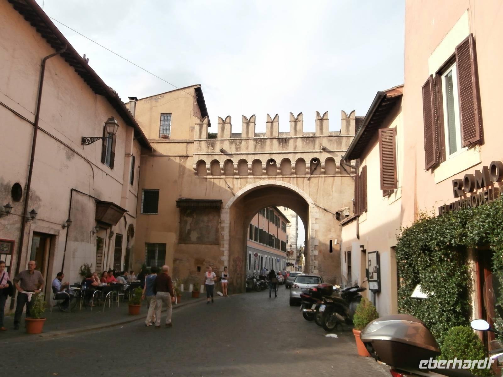 Unsere Gäste begeben sich auf Besichtigung der Schätze der Vatikanischen Museen, sie wurden über viele Jahrhunderte von Päpsten angesammelt und können auf einem 7 km langen Rundweg durch zig verschiedene Museen bestaunt werden. Am Ende kommt man in die Sixtinische Kapelle, die die Meisterwerke von Michelangelo in sich birgt. Er hat eindrucksvoll und für die Ewigkeit die restaurierten Fresken geschaffen. Am Abend treffen wir uns in der Lobby des Hotels und gemeinsam spazieren wir zur nahe gelegenen Busstation, wir wollen nach Trastevere fahren zum Abendessen im Ristorante Vizi Capitali. Leider müssen wir ewig lang auf einen Bus warten, der Grund ist die große Messe für italienische Familien mit dem Papst am Petersplatz. Endlich sitzen wir im Bus und da unsere Fahrt vorbei führt am Petersplatz, können wir auch den Papst auf den großen Bildschirmen sehen. Im Viertel Trastevere ist heute zum Samstag alles unterwegs, ein schönes Bild für uns alle. Im Restaurant ist man gar nicht auf unser Kommen eingestellt, so dass wir Sorge tragen, hungrig davon zu ziehen. Es wird aber schnell reagiert und der Fehler, wo auch immer er liegt, ausgebügelt. Wir bekommen eine ganz leckere Speisefolge serviert. Ich gebe im Namen unseres Reiseveranstalters Eberhardt Travel für alle Wein und Wasser aus und so ist fast jeder von uns sehr satt und zufrieden. Mit Marilisa starten wir im Anschluss zum Nachtspaziergang durchs beleuchtete Rom. Wir verlassen Trastevere über die Ponte Sisto, weiter führt unser Weg über den Piazza Farnese mit dem beeindruckenden Palazzo und der französischen Botschaft. Der Campo die Fiori, mit dem täglichen Blumenmarkt und Markt für viele Waren, wie Gemüse und Kleidung ist am Abend Treff der jungen Leute. Wir spazieren bis in Nähe der Engelsburg und des Tiber, krönender Abschluss des heutigen Abends ist der beleuchtete Petersdom. Wir verabschieden uns von Marilisa, die Gäste aus Düsseldorf angereist, bringen mir noch ein Dankeschön Ständchen als Kanon. Ja und ich bedanke mich mit dem Lied „ Ade zur Guten Nacht „ bei allen und schlagartig geht am Dom das Licht aus.