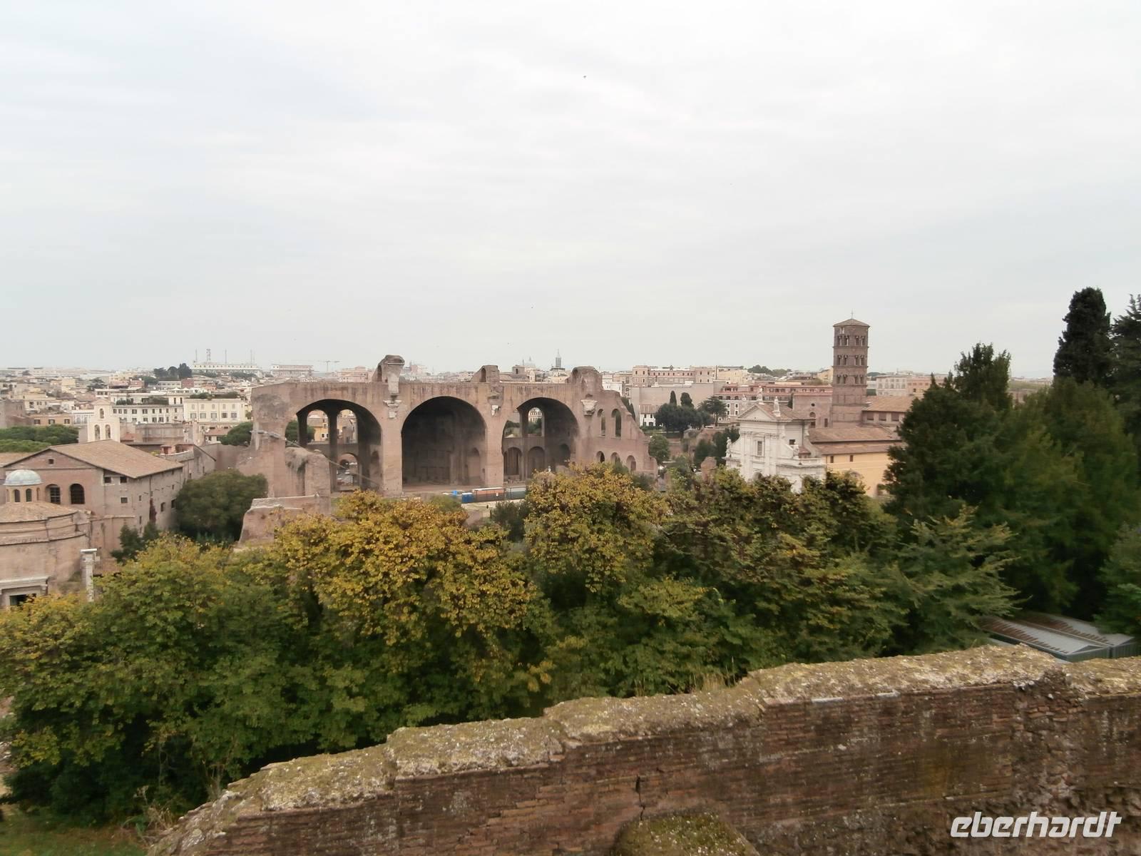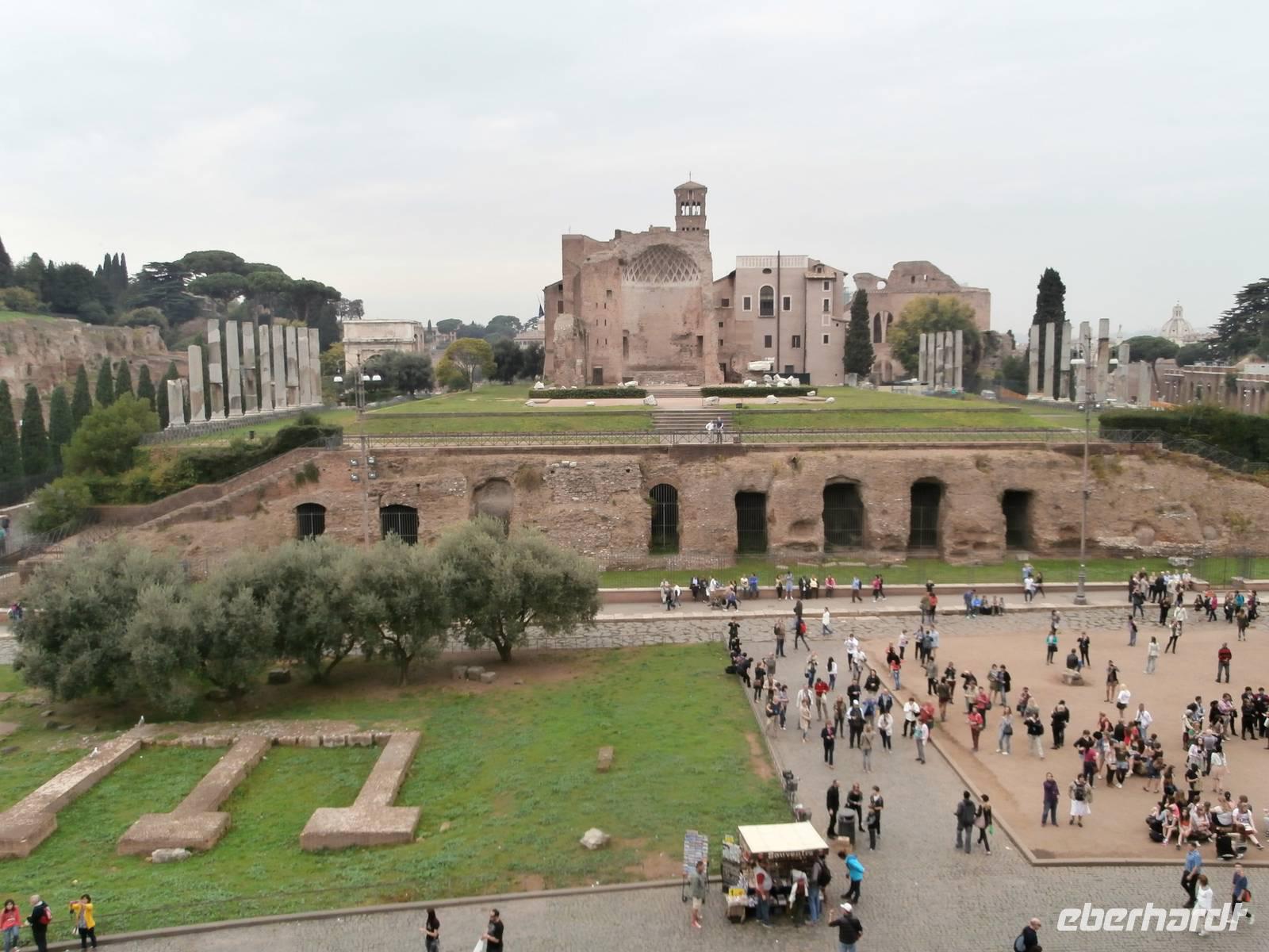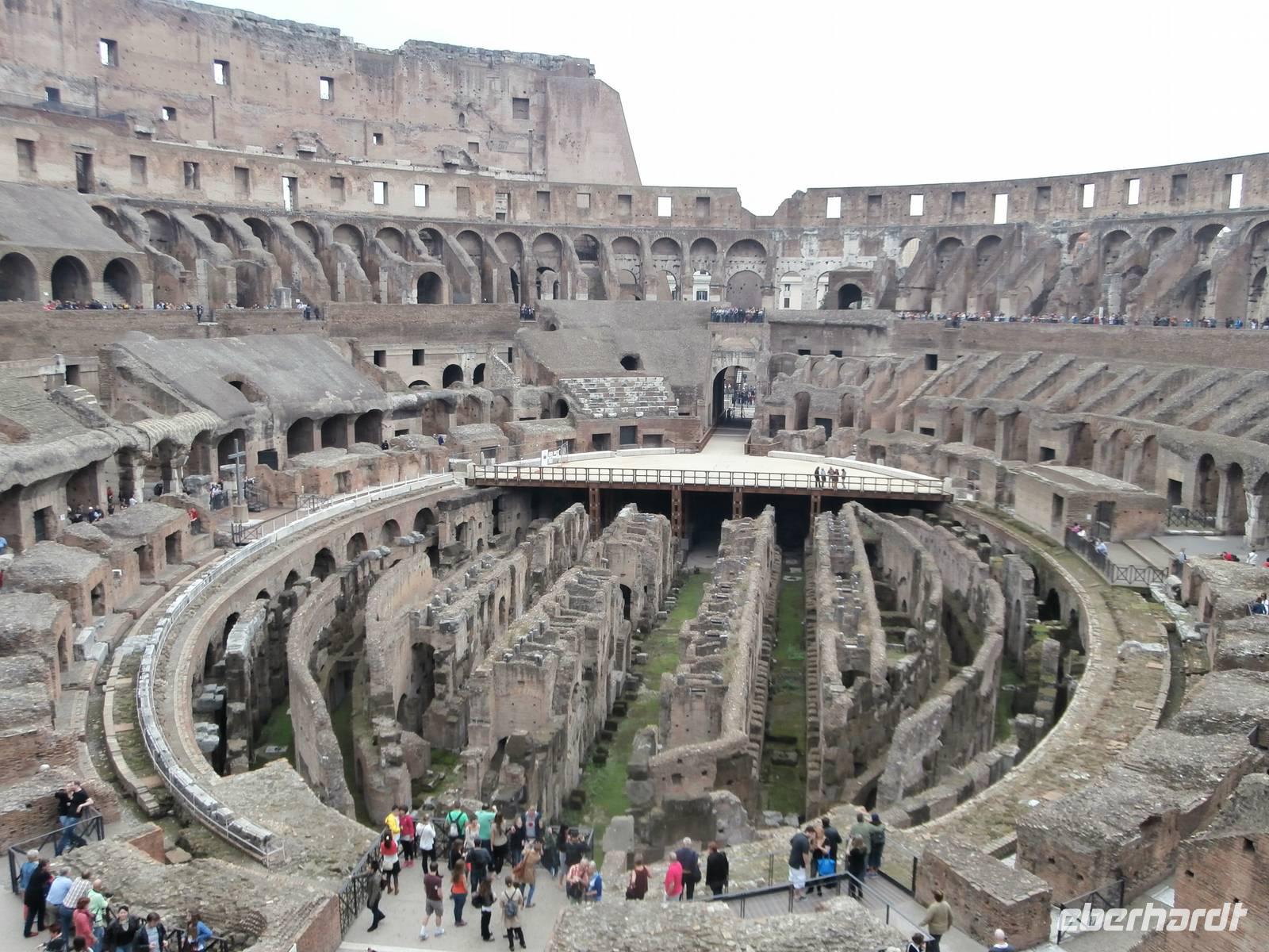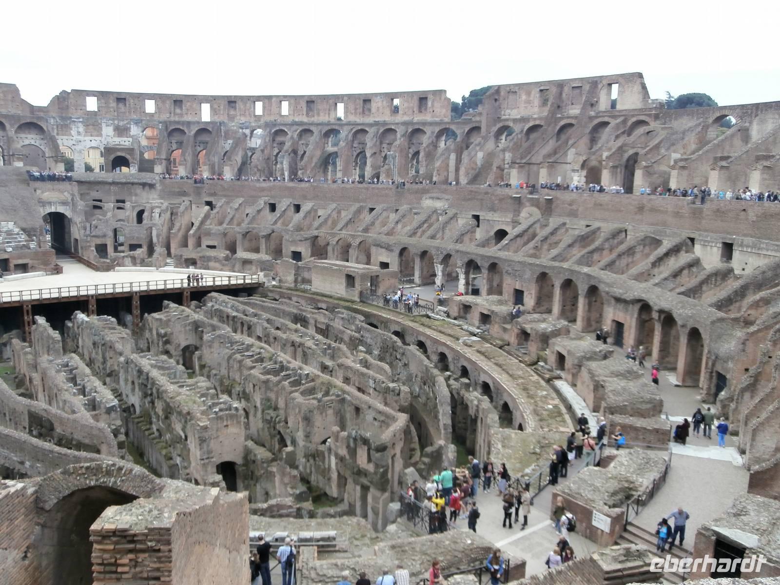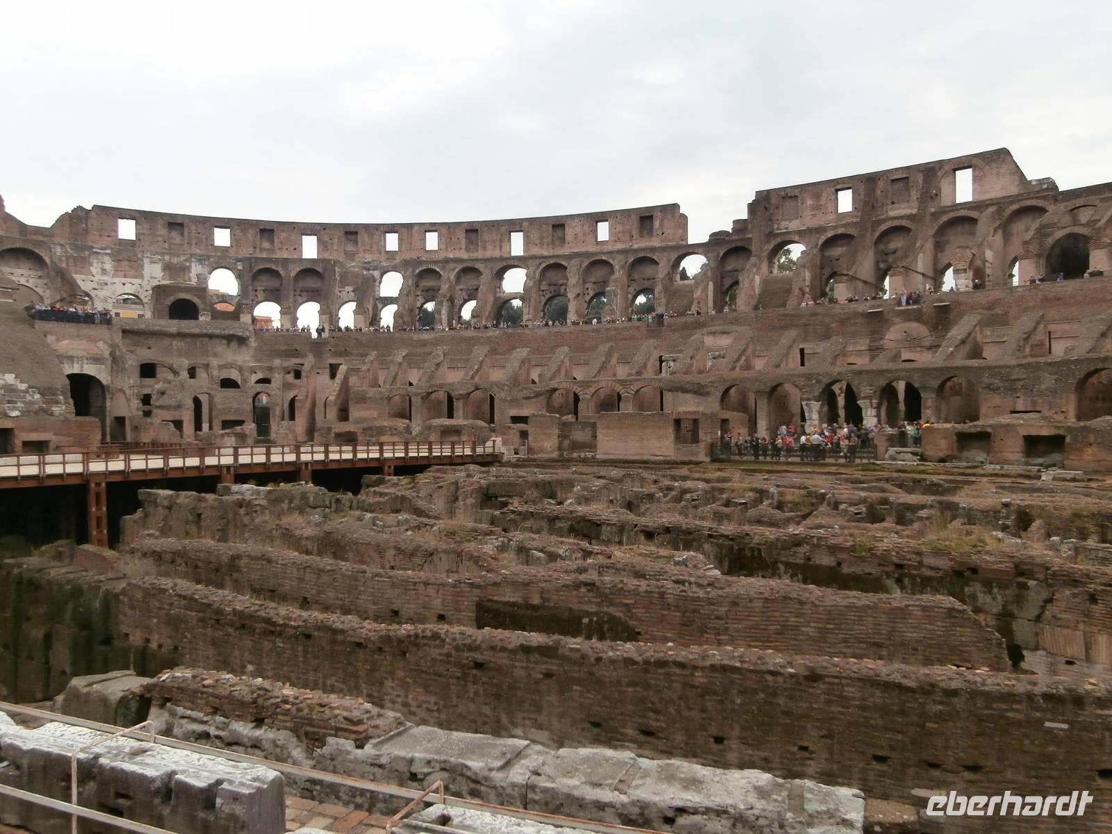 Ausgerüstet mit Audioguides starten wir gemeinsam mit Marilisa, unserer örtlichen Reiseleitung, zur Exkursion mit der Metro bis zum Kolosseum. und hier gehen wir zuerst ins Kolosseum. Wir erfahren viel über die Tierkämpfe und Gladiatoren und sind begeistert vom Erhalt der Anlage im Inneren. Vorbei am Konstantinbogen, der eingerüstet ist, gehen wir hoch zum Palatin Hügel. Hier lauschen wir gespannt den Ausführungen von Marilisa und erfahren auch, dass die Ursprünge Roms als kleine Siedlung sich hier befinden. Mit unserem Rundgang geht's weiter durch das Forum Romanum, welches von vielen Säulen, Bögen und natürlich auch von Tempeln reichlich zum Staunen und Sehen bietet. Den Titus Bogen halten wir fotografisch fest. Weiter geht's hinauf zum Kapitols Hügel und hier wird erst einmal eine Pause eingelegt. Über die breite Treppe, die von Michelangelo geschaffen wurde, gehen wir nicht hinunter zum Piazza Venezia, Marilisa wählt den Weg durch das Nationaldenkmal Emanuele II. Flotten Schrittes geht es zum Trevi Brunnen, da das Eis hier besonders gut schmeckt, gibt es für alle die nächste Pause. Letzter Besichtigungspunkt für heute ist die Spanische Treppe. Vorbei an der Spanischen Botschaft und der Säule der unbefleckten Empfängnis Marias erreichen wir diese bekannte Freitreppe, sie ist heute ein beliebter Treffpunkt und es führen 138 Stufen hinauf zur Kirche Santa Trinita die Monti. Auch der Brunnen auf dem Platz unterhalb der Treppe hat eine Geschichte zu erzählen. Ein angeschwemmtes Boot nach einem Hochwasser des Tibers soll die Inspiration des Künstlers gewesen sein, danach hat er den Bau in dieser Form realisiert. Da hier auch das bekannte Café Greco ist, in dem sich die Deutschen u. a. auch Goethe oder Wagner getroffen haben, empfehlen wir den Besuch unbedingt. Der einsetzende Regen hält sich nicht die ganze Nacht. Nach Einkäufen und Kaffee Pause fahren wir mit der Metro bis zur Station Cipro, die ganz in der Nähe vom Hotel Nova Domus ist, zurück. Der Tag unterwegs im antiken Rom ist schön aber auch anstrengend gewesen.