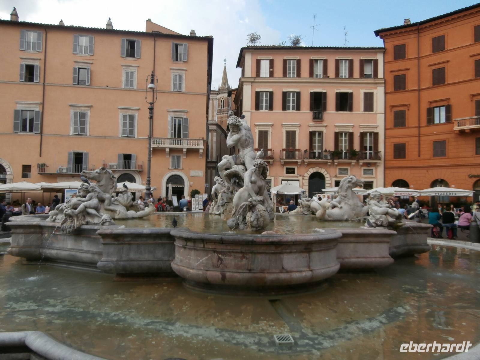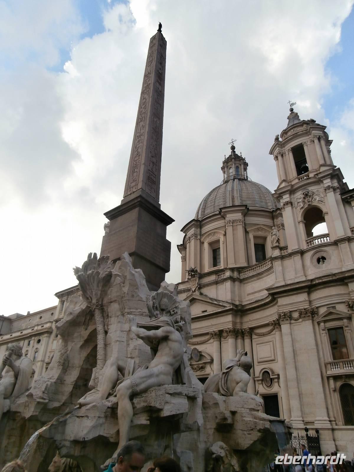 Unsere Mittagspause machen wir heute im Borgo, dem Straßenviertel entlang der Mauer, die der Fluchtweg der Päpste war. In der Engelsburg, die wir nun besichtigen, hören wir viel vom Kaiser Hadrian, es war mal seine Grabstätte. Benannt wird die Festung, dazu hat man sie für die Päpste umfunktioniert, nach dem Erzengel Michael, der auf der Spitze dieser Anlage thront. Die päpstlichen Gemächer und der herrliche Ausblick von der Spitze der Anlage über den Tiber, den Petersdom bis hin zu den Hügeln Roms sind überwältigend. Über die Ponte Sant' Angelo gehen wir über den Tiber. Durch enge Gassen gelangen wir zum Wohnzimmer der Römer - zum Piazza Navona. Hier steht in der Mitte des Platzes der Vier Ströme Brunnen, den noch ein Obelisk schmückt. An beiden Enden des Platzes gibt es noch 2 Brunnen. Weiter führt uns Marilisa bis hin zum Pantheon, für mich ein magischer Ort. Die mächtige Kuppel, deren Durchmesser und Höhe gleich groß sind, ist ein Meisterwerk architektonischer Harmonie und Baukunst. Über den Piazza Minerva mit dem schönen Obelisken, der von einem Elefanten getragen wird, kommen wir zum Largo Argentina. Hier endet unsere heutige Stadtführung. Nach Freizeit und Einkäufen fahren einige Gäste mit mir im Bus Nr. 492 zurück bis in Nähe des Hotels Nova Domus.