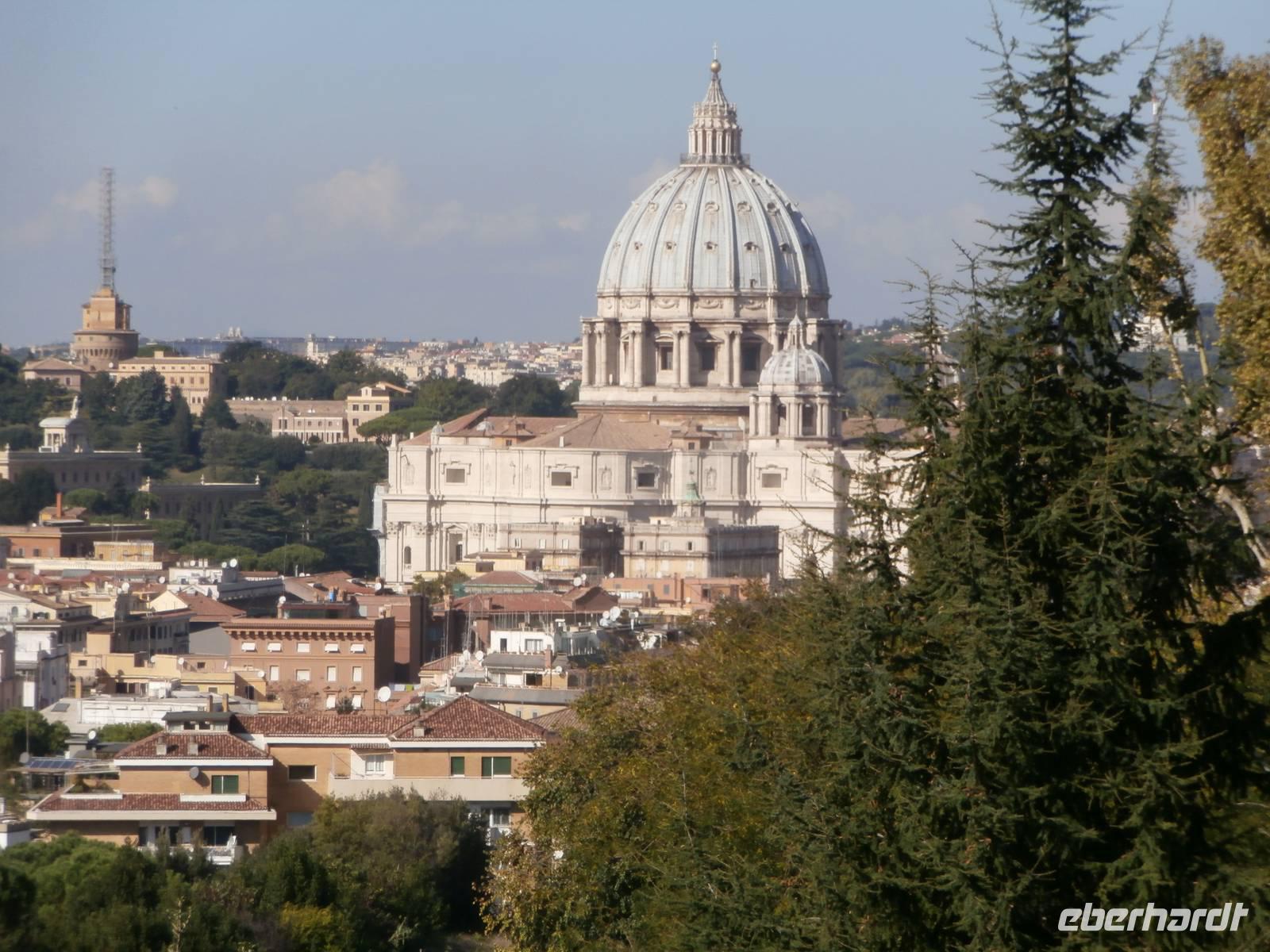 Wir starten unsere "Rom Tour" in Dresden und einigen anderen Städte, mit den Transferfahrzeugen geht es in aller Herrgotts Frühe nach Berlin zum Flughafen Tegel. Gegen sieben Uhr sind wir schon in der Luft und erleben einen fantastischen Sonnenaufgang über den Wolken. Nach der pünktlichen Landung in Rom nehmen wir unser Gepäck in Empfang und begeben uns hinaus zu den Busparkplätzen. Hier steht schon der Bus der Firma Bonanni Express, die Koffer werden verladen und dann geht es zum Hotel durch den dichten, römischen Verkehr. Da wir schon gegen 10.30 Uhr im Hotel Nova Domus eintreffen, sind unsere Zimmer noch nicht bezugsfertig und wir stellen unser Gepäck vorerst unter. Mit einigen Reisegästen mache ich mich auf den Weg vorbei am Petersdom und Platz, um hinauf zum Hügel Gianicolo zu gelangen. Leider ist die Generalaudienz am heutigen Mittwoch mit zig Pilgern am Petersplatz gerade beendet und so verlieren wir uns in den Massen. Ein kleiner Teil von uns schafft es dennoch und so haben wir einen herrlichen Ausblick vom 82 Meter hohen Gianicolo, auf Deutsch der Janushügel und er zählt nicht zu den 7 Hügeln Roms, auf die vielen Sehenswürdigkeiten der Stadt. Vom Piazza Garibaldi gehen wir weiter zu Fuß bis hinunter nach Trastevere. Es ist das lebendigste Viertel dieser quirligen Stadt mit engen Gassen, in denen die Menschen draußen beim Wein und guten Essen sitzen. Am Piazza Santa Maria in Trastevere lernen wir die wahrscheinlich älteste Marienkirche Roms kennen. Sie stammt aus dem 12. JH und ist größtenteils noch im Originalzustand erhalten. Bei schönem Wetter geht es zu Fuß zurück bis zum Hotel und wir sind glücklich, am Ende eines sehr schönen, langen Anreisetages, endlich im Hotel einzuchecken. Noch vor dem Abendessen begrüße ich unsere 2. Gruppe, Gäste aus Düsseldorf mit dem Flieger kommend, sie haben auch schon einen Erkundungsrundgang bis zum Petersdom hinter sich. Beim gemeinsamen Abendessen stellen wir die Verbindung zwischen Sachsen und Nordrhein-Westfalen her. Sehr müde fallen wir heute in unsere Kissen.
