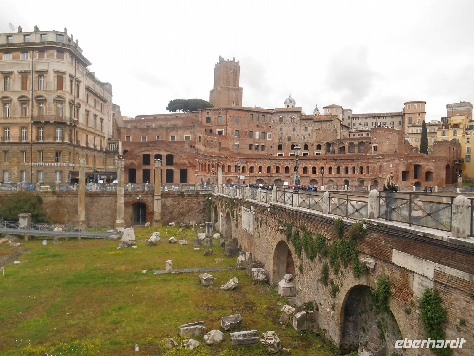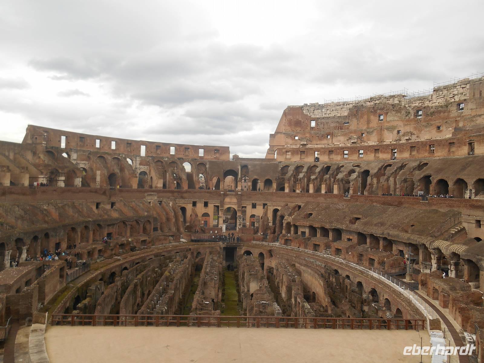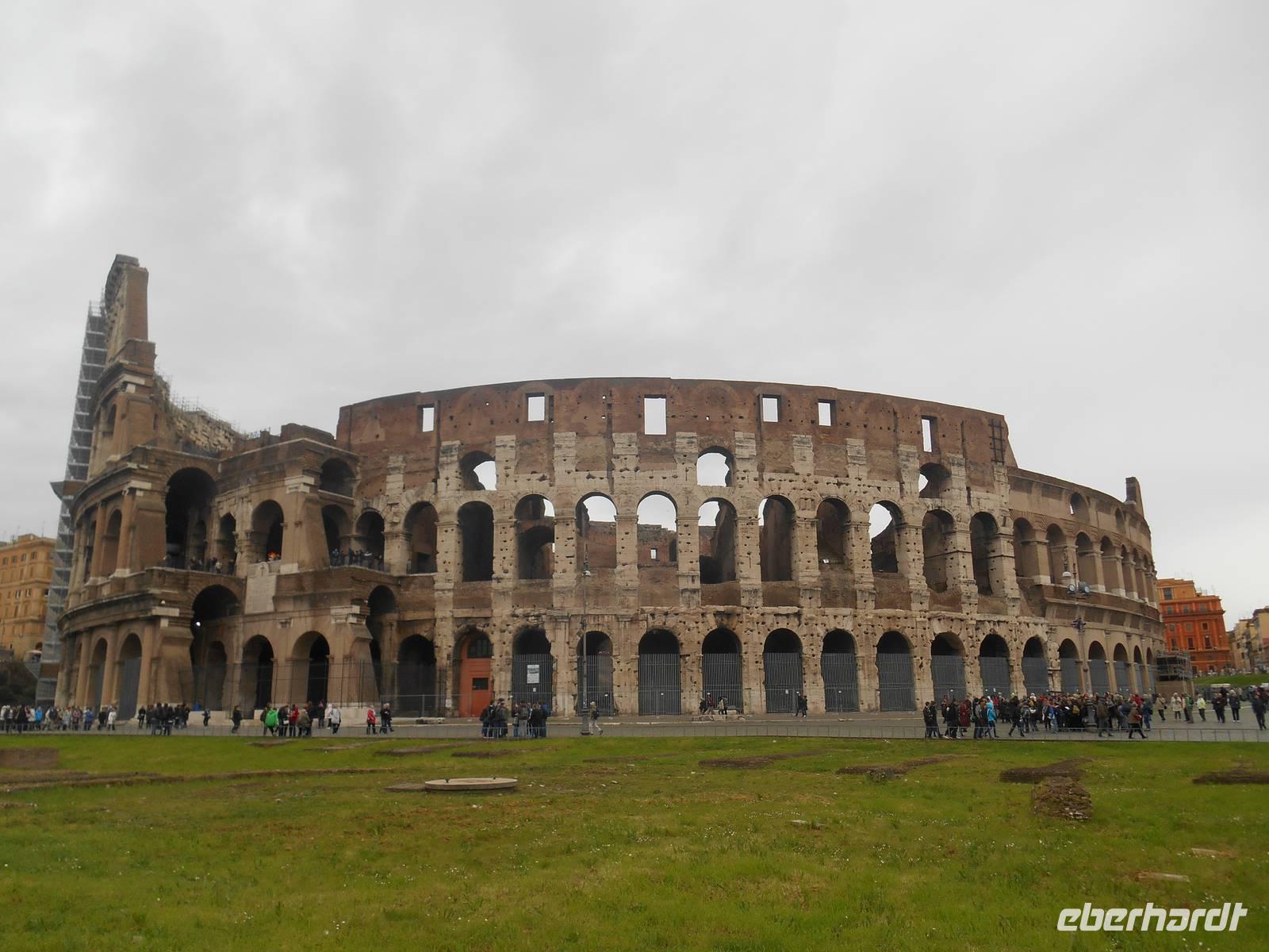 Nun stand unser umfangreiches 3-tägiges Programm in Rom an. Der erste Tag in Rom führte uns mit der Metro zum Kolosseum. Dort trafen wir uns mit unserer netten Stadtführerin Agnieszka und sofort starteten wir mit dem Besuch des Kolosseums. Dieses wurde von Kaiser Titus im Jahre 80 n. Chr. eingeweiht. Die Bauarbeiten dauerten nur acht Jahre. Die Spiele im Amphitheater umfassten vor allem Gladiatorenkämpfe und Kämpfe zwischen Gladiatoren und Tieren. Nach der Innenbesichtigung des Kolosseums ging es hinein in das Forum Romanum, dem ältesten römischen Forum und Mittelpunkt des politischen, wirtschaftlichen, kulturellen und religiösen Lebens. Nach der ausführlichen Besichtigung des Forums führte uns unser Spaziergang vorbei am Trajans-Forum, dem schönsten aller Kaiserforen. Seine Anlage war vielleicht schon von Domitian vorgesehen, da dieser bereits begonnen hatte, den Sattel des Quirinal-Hügels abzutragen. Es war ein bemerkenswerter Arbeitsprozess, da der Sattel dieses Hügels etwa dreißig Meter hoch war. Heute lehnen sich die Trajanischen Märkte halbkreisförmig aufsteigend an den Abhang des Quirinal an. Deren Bau war zunächst nur aus Stabilitätsgründen erforderlich, um einen Erdrutsch zu vermeiden. Der endgültige Entwurf stammt aber erst von dem großen Architekten des Trajan, Apollodorus von Damaskus. Weiter ging es von hier mit dem Linienbus zum Largo Argentina. Auf dem Grabungsareal am Largo Argentina befinden sich die Überreste von vier Tempeln, die allesamt aus republikanischer Zeit stammen, und zwar aus dem 4. bis 1. Jahrhundert v. Chr. Auf den ersten Blick erkennbar wird das unterschiedliche Alter der Bauten durch die verschiedene Lage der Bauwerke im Boden - je tiefer der Tempel liegt, desto früher die Datierung. Das Ausgrabungsareal ist übrigens für die zahlreichen Katzen bekannt, die es bevölkern. Um der großen Population habhaft zu werden, befindet sich seit 1994 eine Pflegestation am Rand des Areals, in der sich freiwillige Helfer um Fütterung, Sterilisation und Impfungen von Straßenkatzen kümmern.