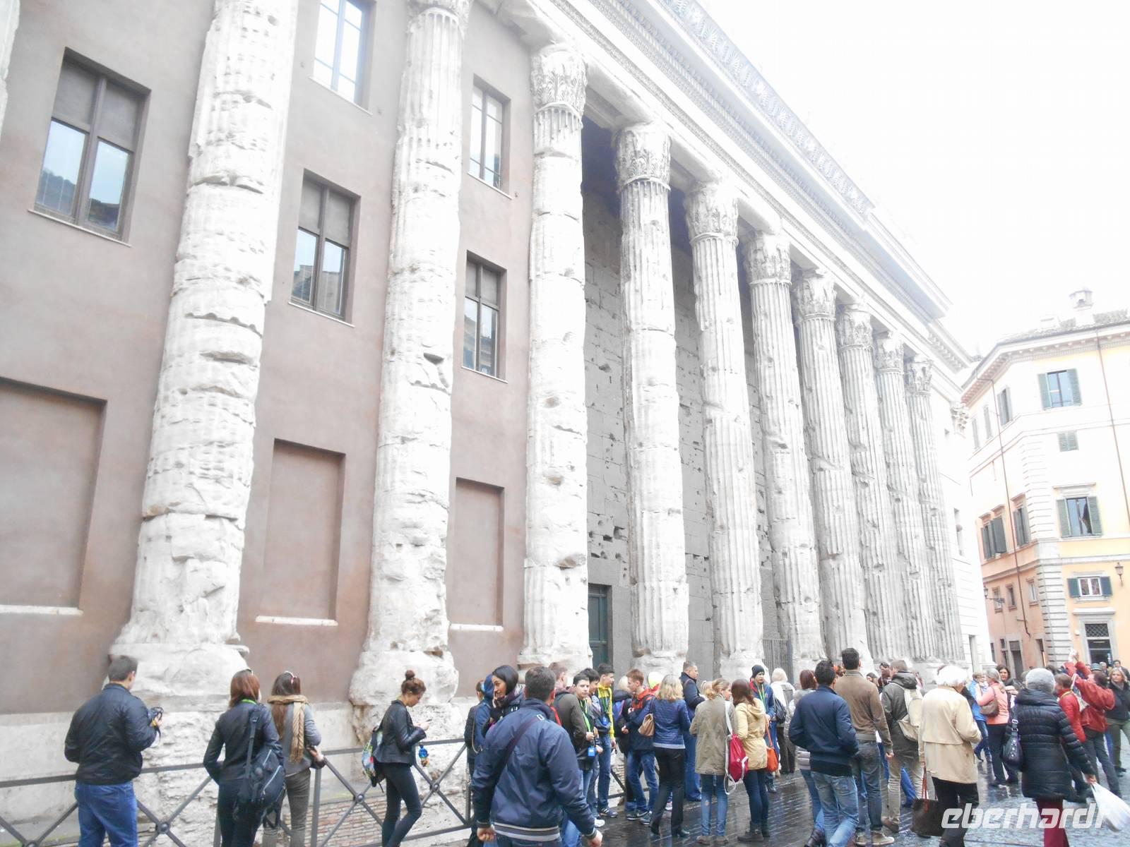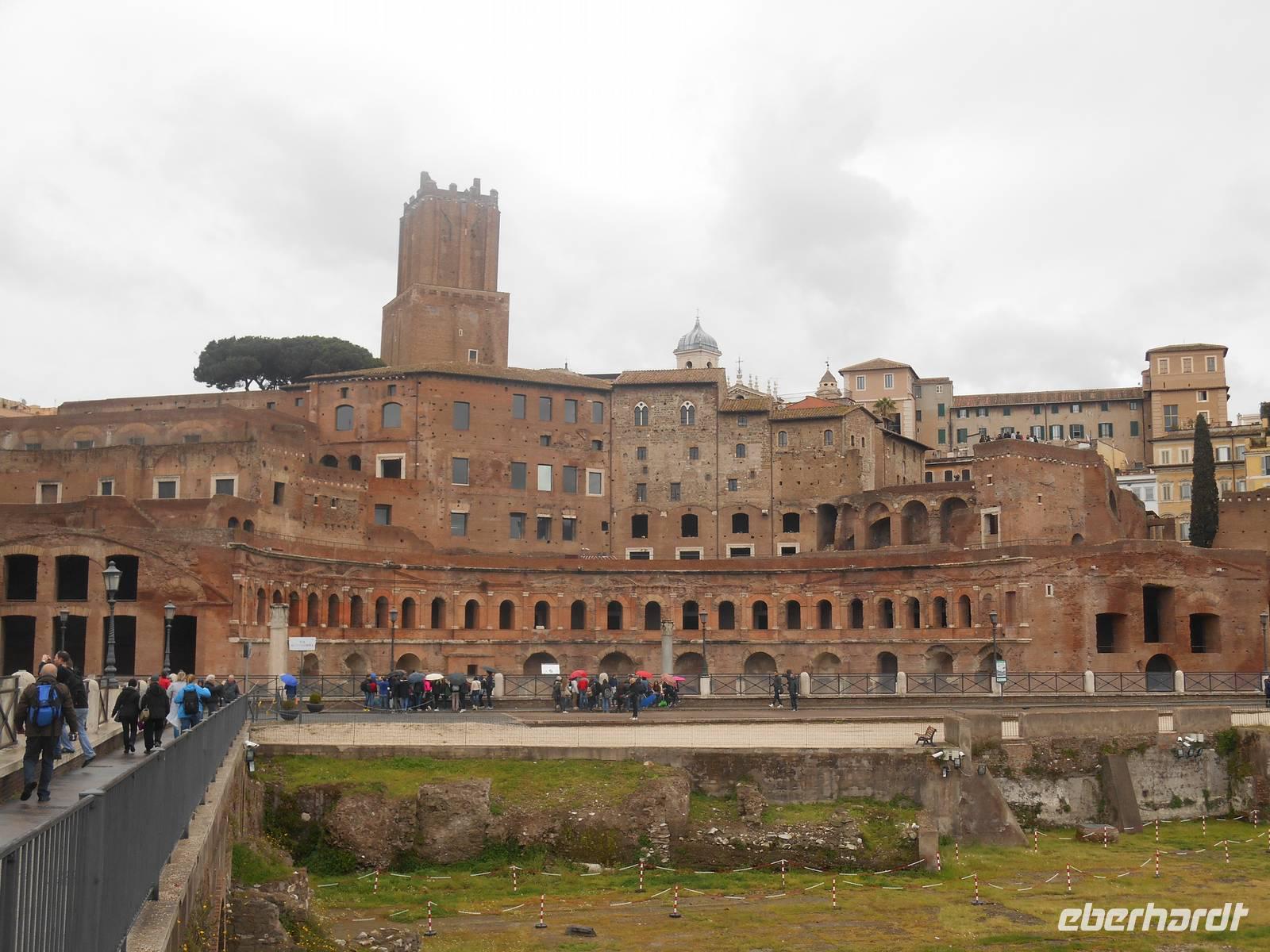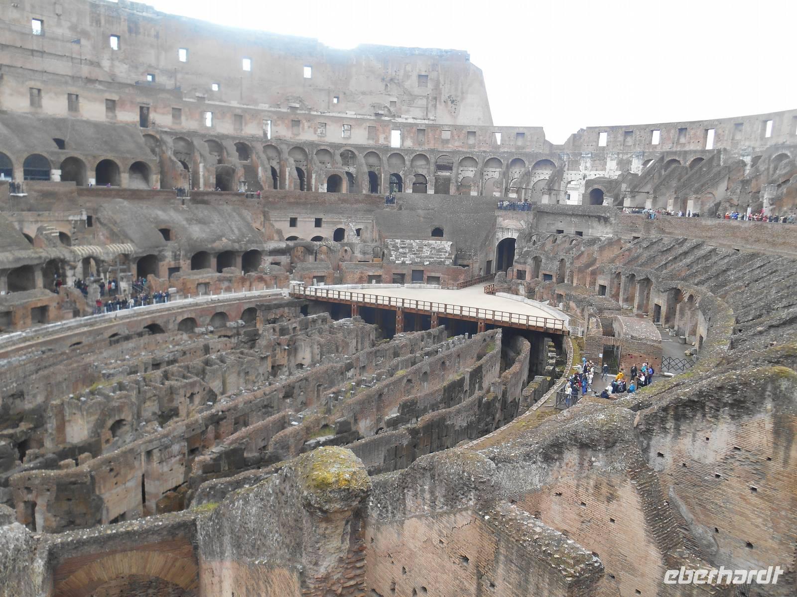 Nun stand unser umfangreiches 3-tägiges Programm in Rom an. Der erste Tag in Rom führte uns mit der Metro zum Kolosseum. Dort trafen wir uns mit unserer netten Stadtführerin Agnieszka und sofort starteten wir mit dem Besuch des Kolosseums. Dieses wurde von Kaiser Titus im Jahre 80 n. Chr. eingeweiht. Die Bauarbeiten dauerten nur acht Jahre. Die Spiele im Amphitheater umfassten vor allem Gladiatorenkämpfe und Kämpfe zwischen Gladiatoren und Tieren. Nach der Innenbesichtigung des Kolosseums ging es hinein in das Forum Romanum, dem ältesten römischen Forum und Mittelpunkt des politischen, wirtschaftlichen, kulturellen und religiösen Lebens. Nach der ausführlichen Besichtigung des Forums führte uns unser Spaziergang vorbei am Trajans-Forum, dem schönsten aller Kaiserforen. Seine Anlage war vielleicht schon von Domitian vorgesehen, da dieser bereits begonnen hatte, den Sattel des Quirinal-Hügels abzutragen. Es war ein bemerkenswerter Arbeitsprozess, da der Sattel dieses Hügels etwa dreißig Meter hoch war. Heute lehnen sich die Trajanischen Märkte halbkreisförmig aufsteigend an den Abhang des Quirinal an. Deren Bau war zunächst nur aus Stabilitätsgründen erforderlich, um einen Erdrutsch zu vermeiden. Der endgültige Entwurf stammt aber erst von dem großen Architekten des Trajan, Apollodorus von Damaskus. Weiter ging es von hier mit dem Linienbus zum Largo Argentina. Auf dem Grabungsareal am Largo Argentina befinden sich die Überreste von vier Tempeln, die allesamt aus republikanischer Zeit stammen, und zwar aus dem 4. bis 1. Jahrhundert v. Chr. Auf den ersten Blick erkennbar wird das unterschiedliche Alter der Bauten durch die verschiedene Lage der Bauwerke im Boden - je tiefer der Tempel liegt, desto früher die Datierung. Das Ausgrabungsareal ist übrigens für die zahlreichen Katzen bekannt, die es bevölkern. Um der großen Population habhaft zu werden, befindet sich seit 1994 eine Pflegestation am Rand des Areals, in der sich freiwillige Helfer um Fütterung, Sterilisation und Impfungen von Straßenkatzen kümmern.