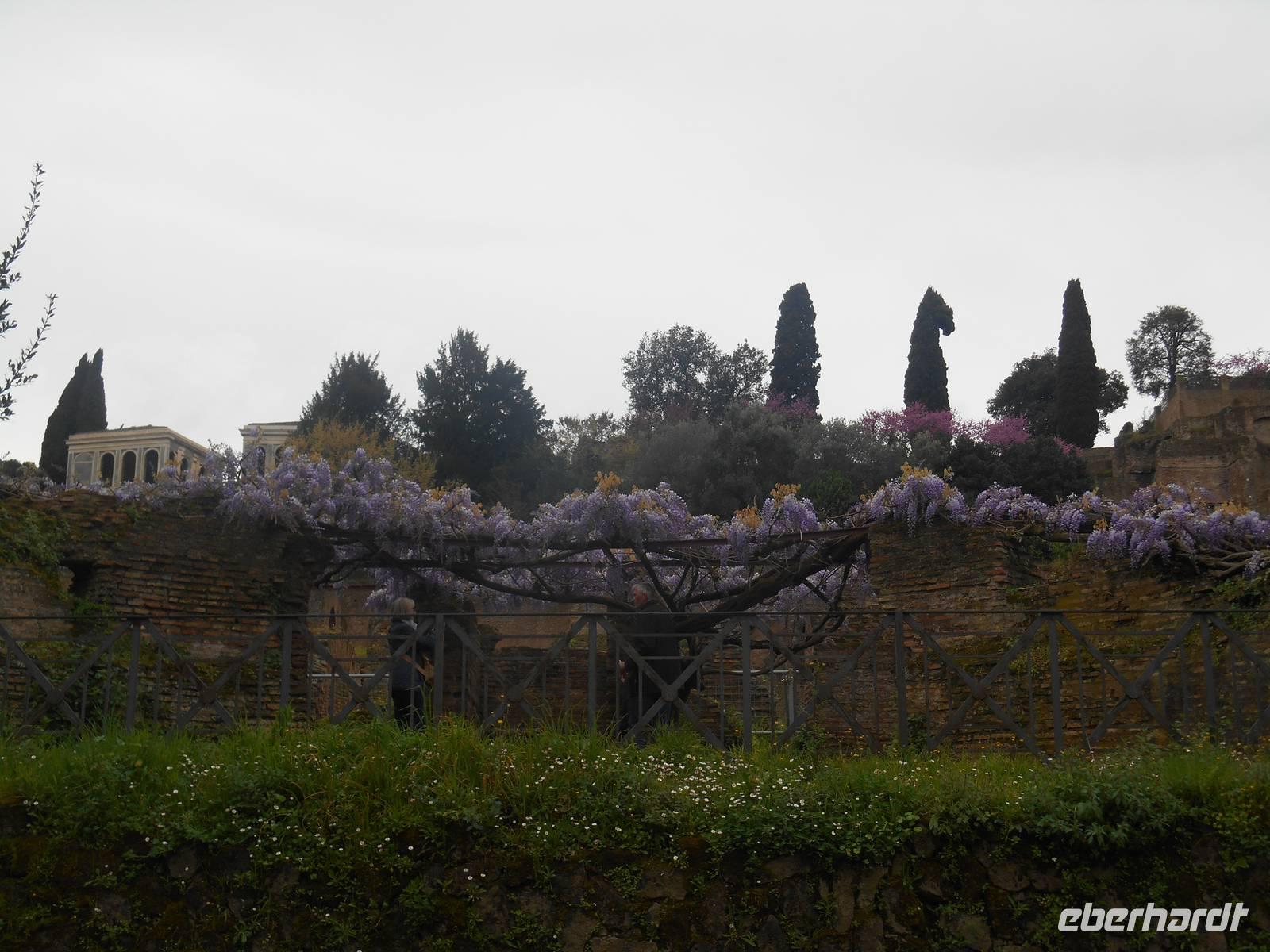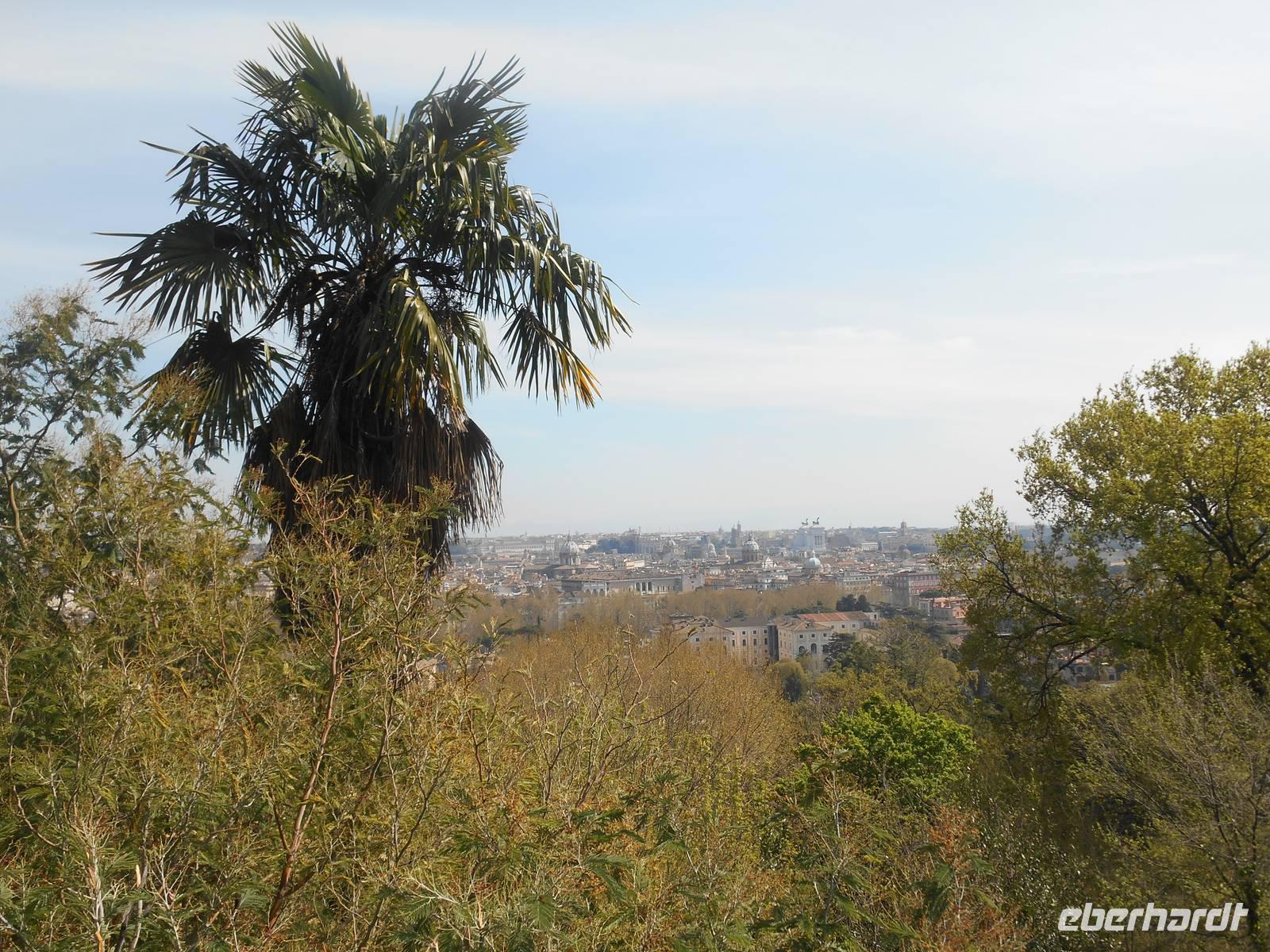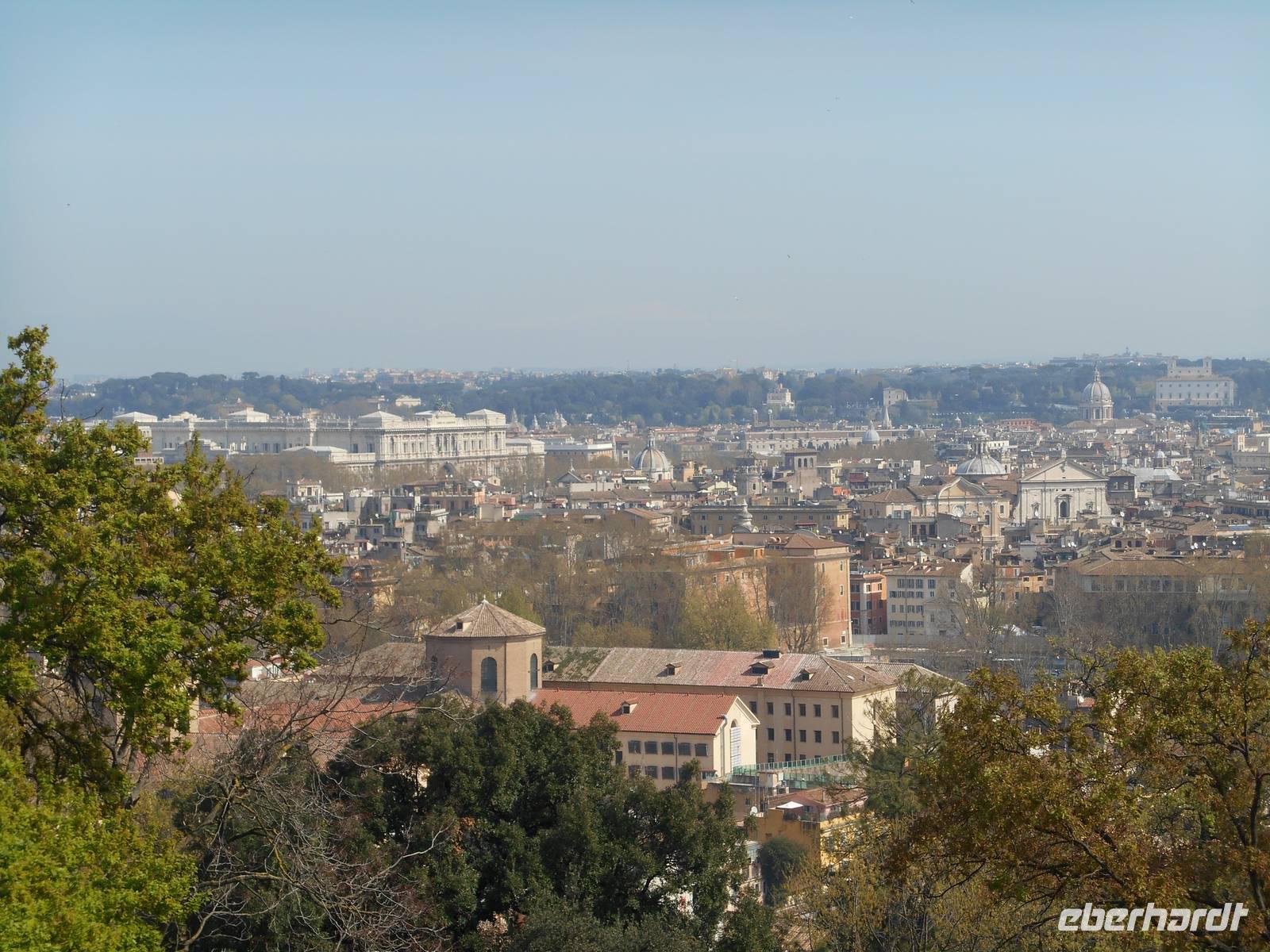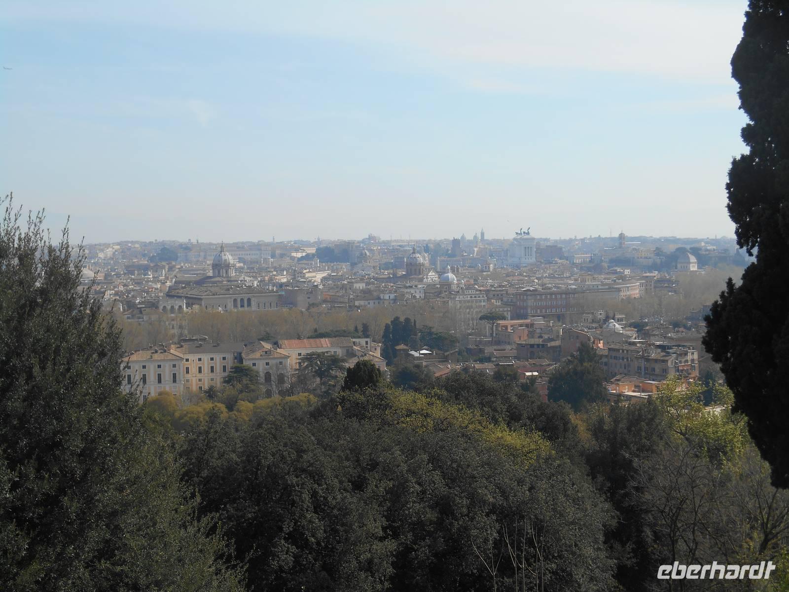 Unser Flugzeug in Richtung Heimat startete glücklicherweise erst am frühen Abend und somit hatten wir noch ein paar Stunden Zeit, um uns auf die ein oder andere individuelle Entdeckungstour in Rom zu begeben. Ich spazierte mit einem Teil unserer Gruppe in Richtung Gianicolo-Hügel, der Piazza Garibaldi war unser Ziel - von hier aus bot sich uns ein herrlicher Blick auf die Dächer Roms und so konnten wir zum Abschluss unserer Reise nochmals ein Bild auf diese faszinierende Stadt werfen! Das Wetter war toll und wir genossen hier oben ebenso die angenehme Ruhe abseits der großen Touristenströme. Des Weiteren erlebten wir hier den Frühling besonders intensiv - sattes Grün und vor allem wunderbar rosa blühende Judasbäume begegneten uns. Pünktlich um 12 Uhr wurde dann, wie übrigens jeden Tag, vom Gianicolo aus eine alte Kanone abgeschossen. An Tagen, an denen der Verkehrslärm nicht besonders stark ist, vor allem im Sommer, kann man den Schuss sogar am Esquilin gut hören.