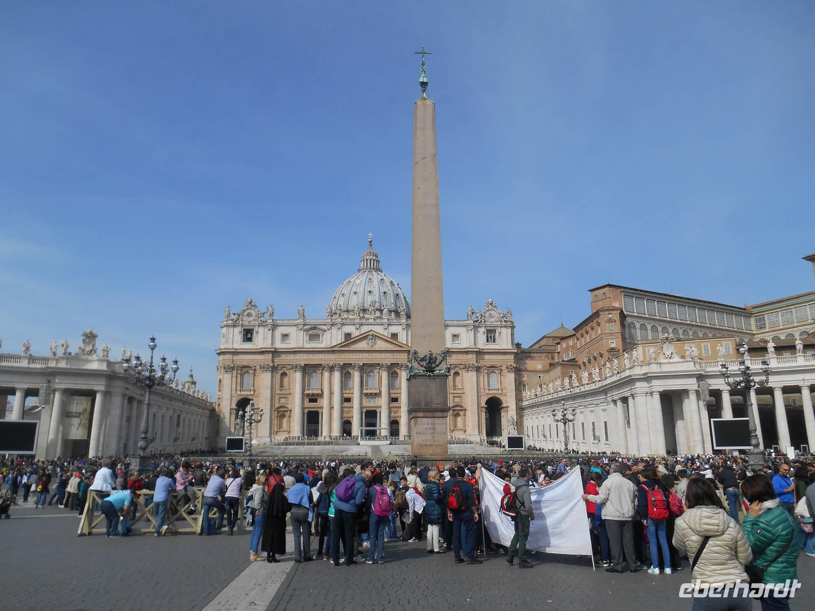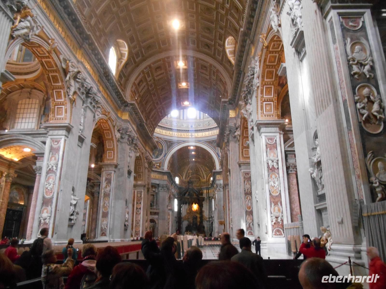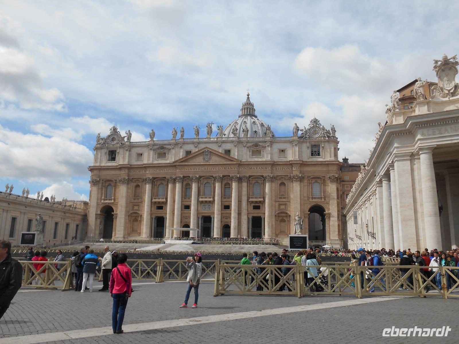 Der heutige Vormittag stand ganz im Zeichen des Vatikanstaates. Nachdem wir am Petersplatz angekommen waren, besuchten wir den Petersdom. Der Petersdom ist die Kirche der Superlative, Zentrum der Christenheit und Ziel der Pilger aus aller Welt. Wer Rom besucht, ob gläubiger Christ, kunsthistorisch Interessierter oder einfach auf Entdeckungstour, kommt am Wahrzeichen der ewigen Stadt nicht vorbei. Der Grundstein wurde am 18. April 1506 gelegt und es wurde rund 120 Jahre lang gebaut. Für die Gläubigen in aller Welt gilt Sankt Peter als das Heiligtum der römisch-katholischen Kirche. Vom Herzstück des Vatikans spendet der Papst übrigens am Ostersonntag und am 1. Weihnachtsfeiertag seinen Segen "Urbi et Orbi" - der Stadt und dem Erdkreis.