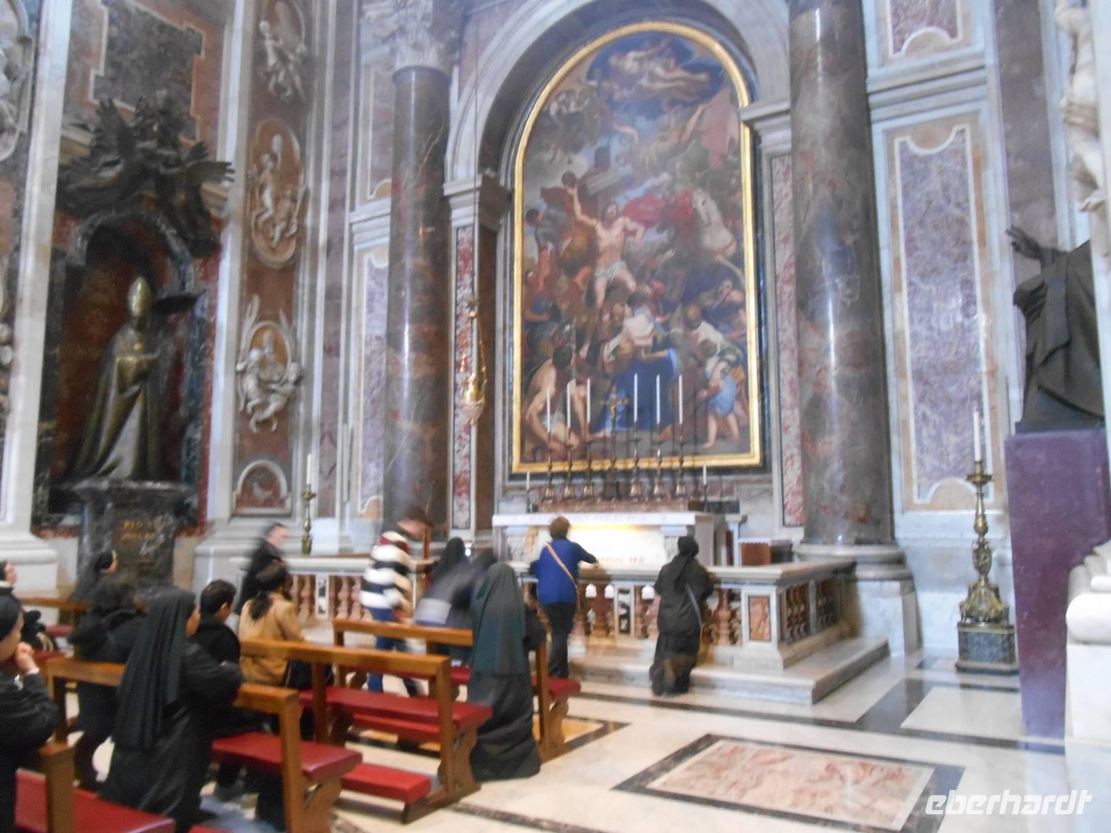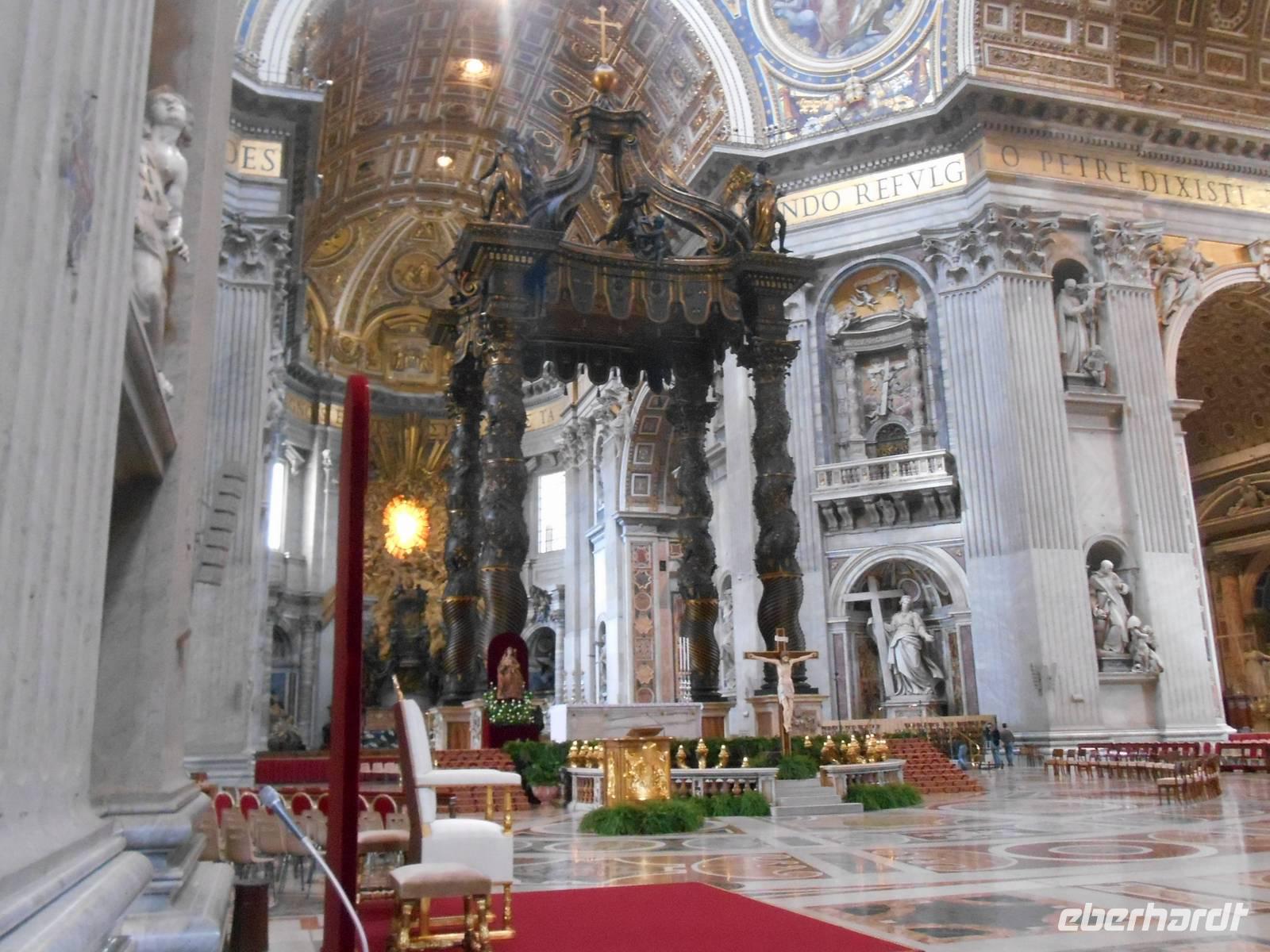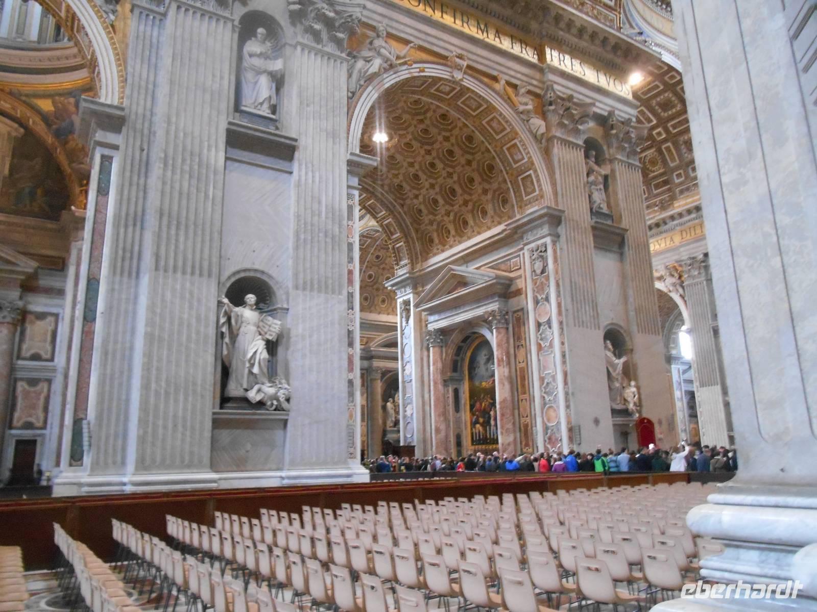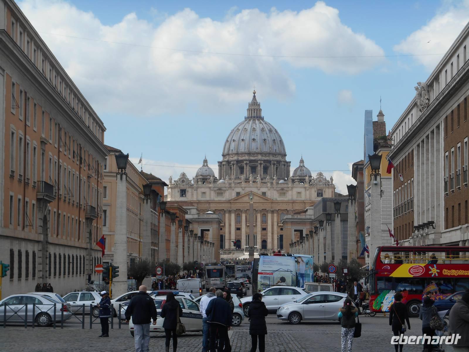 Der heutige Vormittag stand ganz im Zeichen des Vatikanstaates. Nachdem wir am Petersplatz angekommen waren, besuchten wir den Petersdom. Der Petersdom ist die Kirche der Superlative, Zentrum der Christenheit und Ziel der Pilger aus aller Welt. Wer Rom besucht, ob gläubiger Christ, kunsthistorisch Interessierter oder einfach auf Entdeckungstour, kommt am Wahrzeichen der ewigen Stadt nicht vorbei. Der Grundstein wurde am 18. April 1506 gelegt und es wurde rund 120 Jahre lang gebaut. Für die Gläubigen in aller Welt gilt Sankt Peter als das Heiligtum der römisch-katholischen Kirche. Vom Herzstück des Vatikans spendet der Papst übrigens am Ostersonntag und am 1. Weihnachtsfeiertag seinen Segen "Urbi et Orbi" - der Stadt und dem Erdkreis.