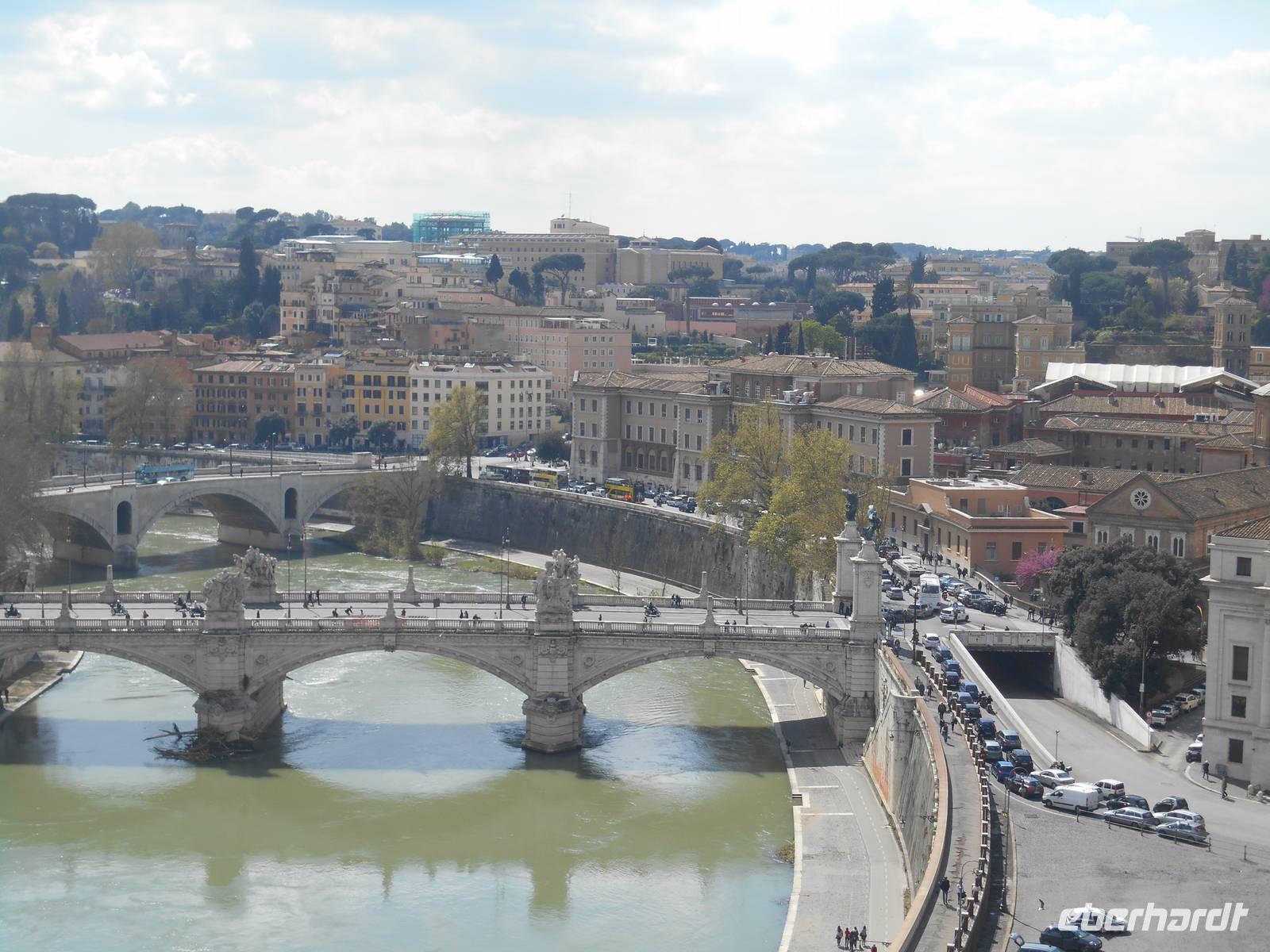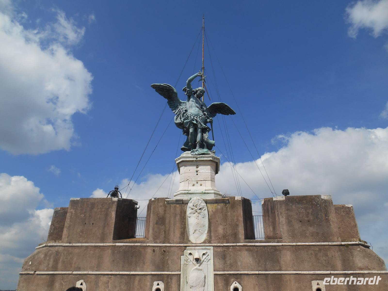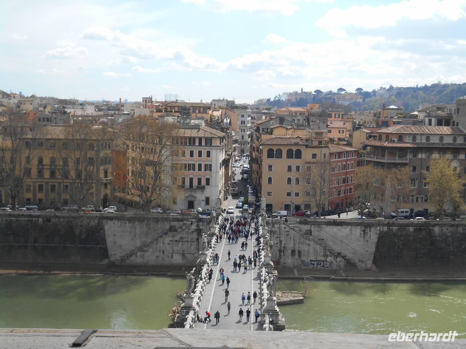 Im Anschluss an die hervorragende Führung in der Peterskirche durch unsere Stadtführerin Agnieszka flanierten wir unterhalb des Passetto di Borgo in Richtung Engelsburg. Passetto bedeutet so viel wie "Kleiner Gang". Er bezeichnet die Stadtmauer, die vom Vatikan zur Engelsburg führt. Er wurde im Mittelalter angelegt und diente als gedeckter Fluchtweg auf der zinnen-bewehrten Mauer. Gleichzeitig konnte vom Passetto aus der Stadtteil Borgo kontrolliert werden, sowohl optisch als auch durch das Abfeuern von Geschossen auf die darunter liegenden Häuser und Straßen. Zweimal war der Passetto ein wichtiger Fluchtweg für die Päpste: 1494 floh der Borgia-Papst Alexander VI. in das uneinnehmbare Hadrians-Mausoleum, als Truppen König Karls VIII. von Frankreich in Rom einfielen und 1527 gelang über den Passetto Papst Clemens VII. die Flucht vor den marodierenden Söldnertruppen Kaiser Karls V. Kurze Zeit später erreichten wir die Engelsburg, ursprünglich ein Grab-Bau für Kaiser Hadrian (117-138 n. Chr.). Den heutigen Namen erhielt das ehemalige Hadrianeum, als im Jahre 590 Papst Gregor der Große eine göttliche Vision hatte: ein Engel erschien ihm über dem Mausoleum und kündigte das Ende der damals herrschenden Pest an, indem er sein Schwert in die Scheide steckte - heute so dargestellt in der bronzenen Engelsstatue aus dem Jahre 1753 auf der Spitze des Kastells.