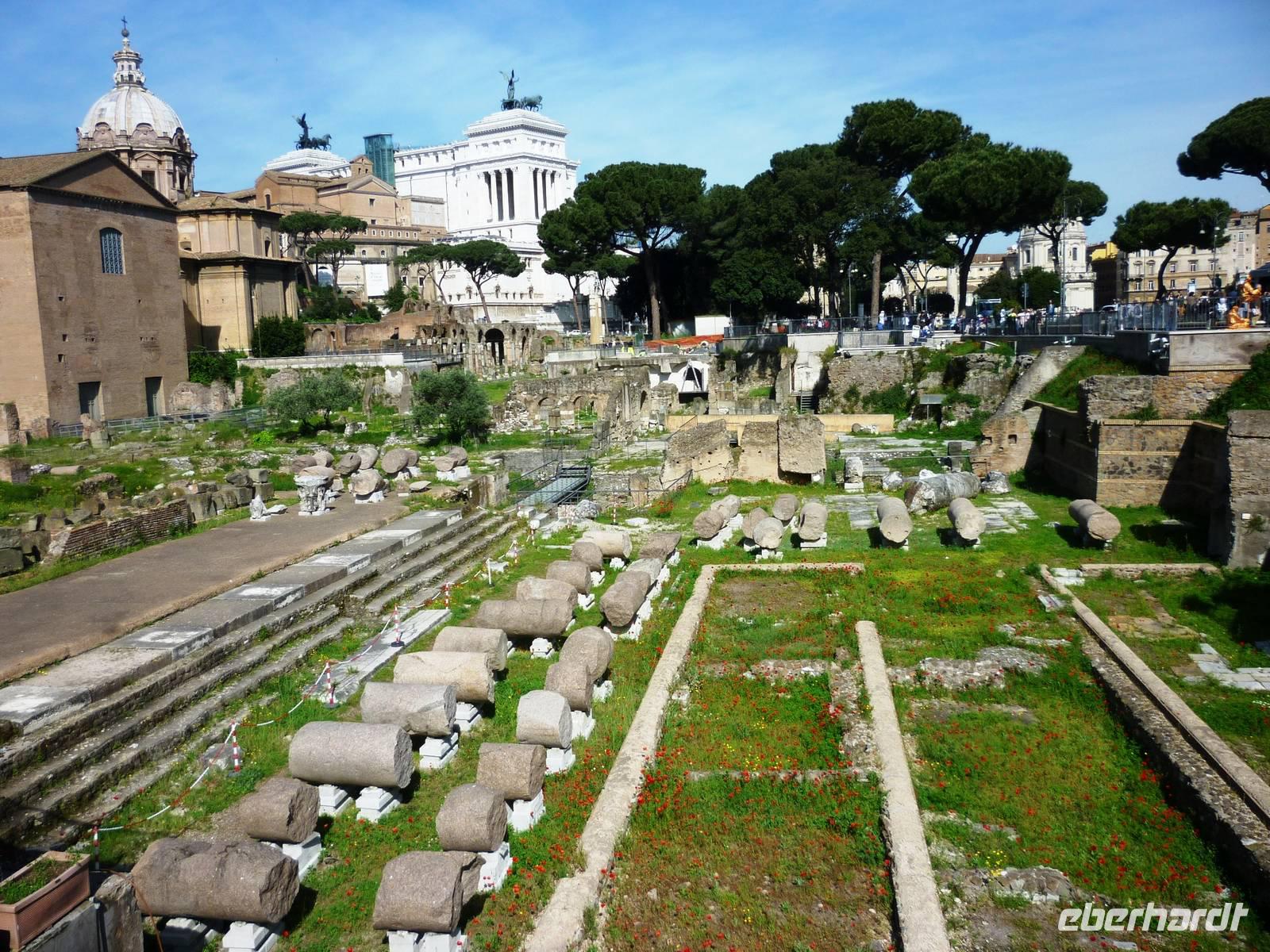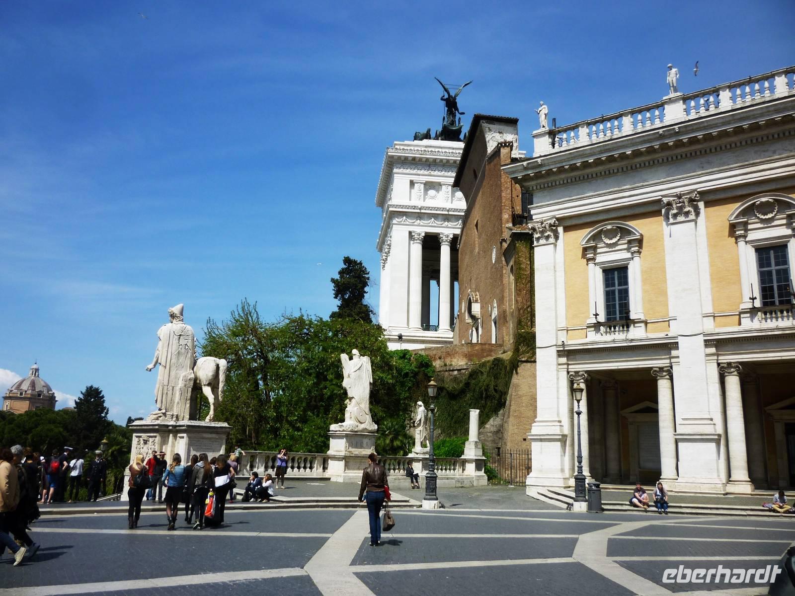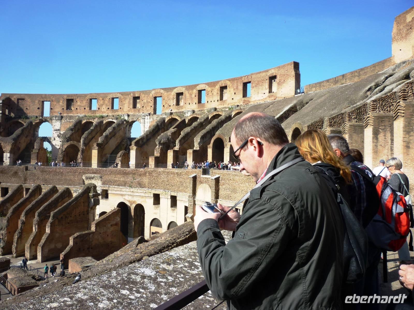 Um 08:15 Uhr begrüßte uns unsere Stadtführerin Susanne am Metro-Ausgang Colosseo zum gemeinsamen Besuch dieses gewaltigen antiken Bauwerkes, das als Kampf-Spielstätte aus der Zeit 80 n. Chr. alle Zeiten überdauert hat. Nach ausführlichen Erläuterungen begaben wir uns, vorbei am Konstantinsbogen, in das Forum Romanum und schauten uns die Reste bedeutender Bauten, wie die der Basilika Julia, des Antoninus - Faustina Tempels, des Caesar-Tempels, den Septimius-Severus Bogen und die Kurie an. Anschließend erstiegen wir den Kapitolsplatz und bewunderten, wie alle Besucher zu jeder Zeit, die geniale Konzeption dieses Platzes durch Michelangelo.