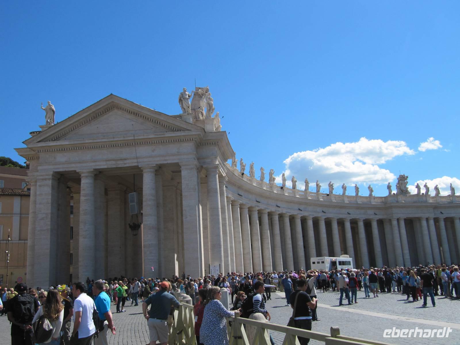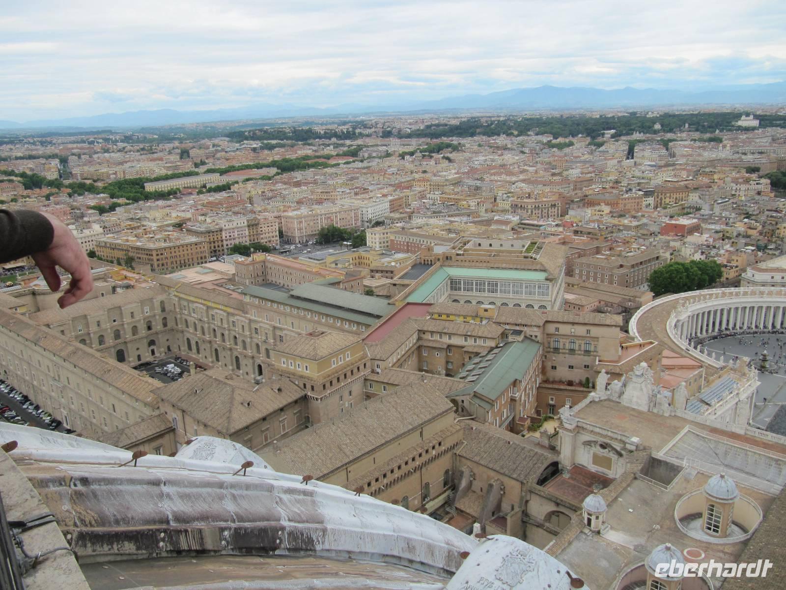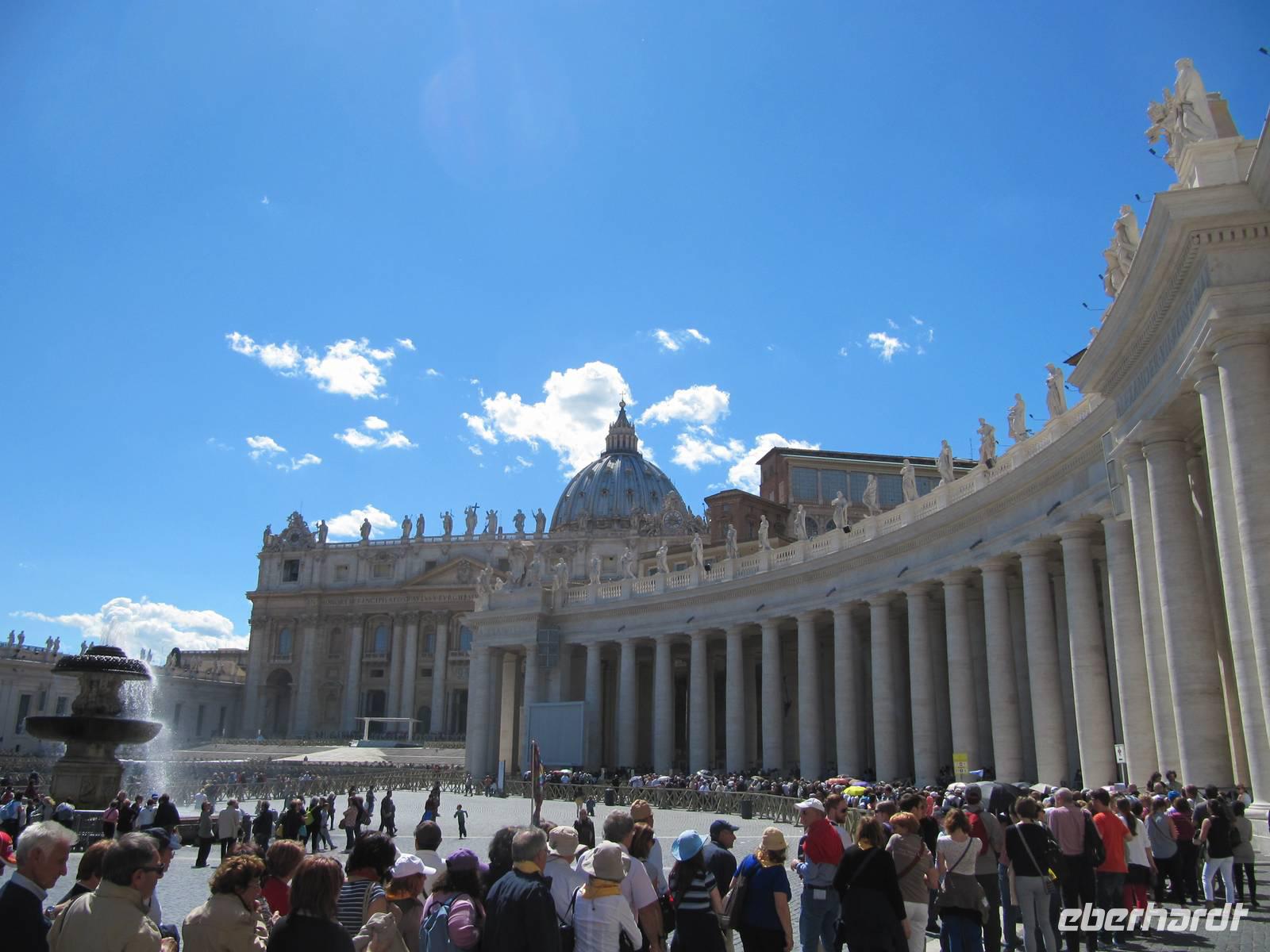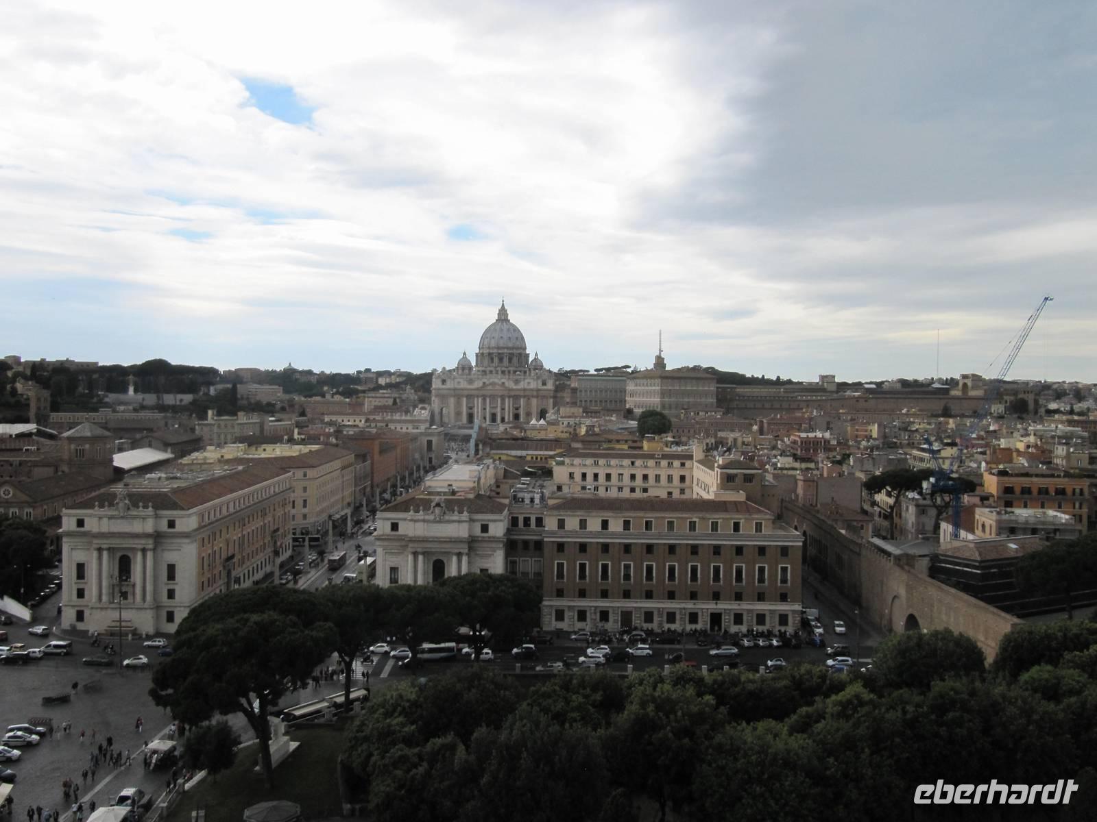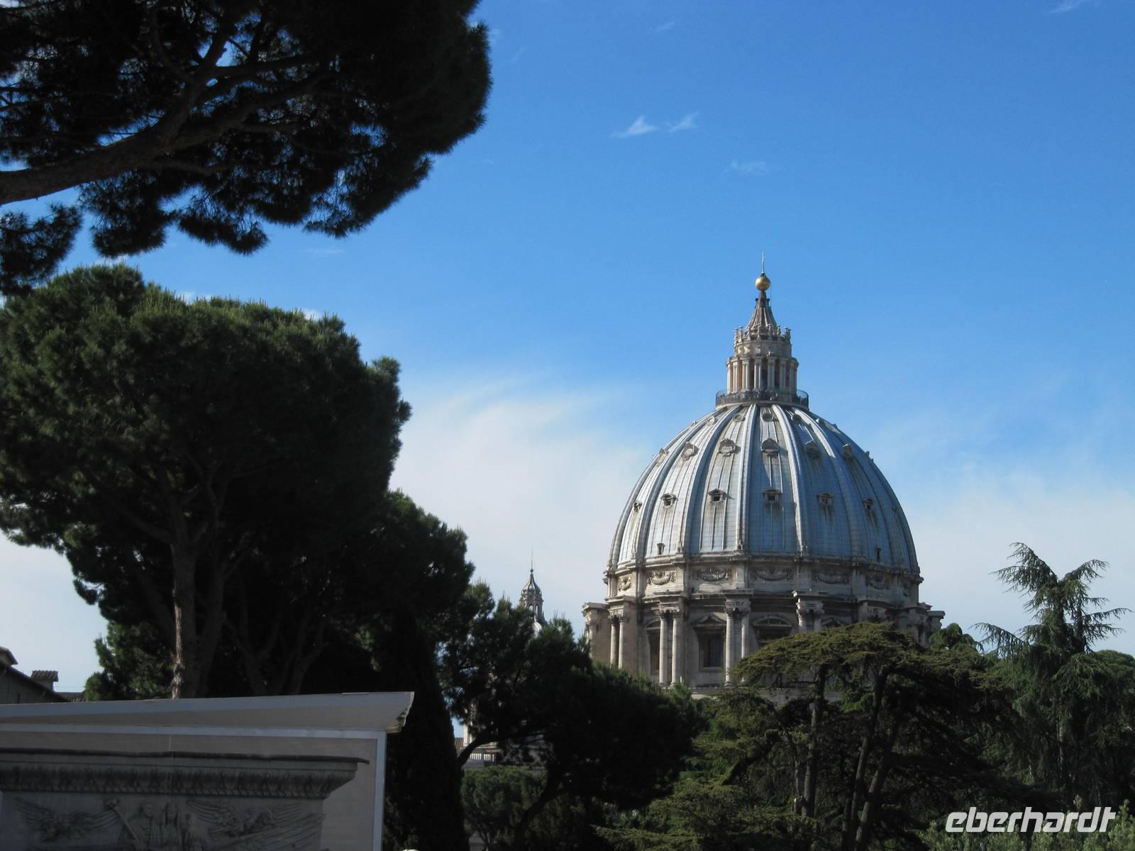 Am heutigen Tag stehen der Vatikan und die Engelsburg im Mittelpunkt. Wir starten um 9 von unserem Hotel "Nova Domus" und spazieren gemütlich zum nur ca.10 Minuten entfernten Petersplatz. Hier treffen wir unserer Reiseleitung und beginnen 9.30 Uhr unsere Führung durch den Petersdom. Nach der Führung nutzen einige Gäste die Möglichkeit den die Kuppel des Petersdoms zu besteigen. Von oben hat man einen tollen Blick über Rom und kann auch die wunderschöne Gartenalage des Vatikans sehen, welche sonst für die Öffentlichkeit nicht zugänglich ist. Auf dem Weg zur Engelsburg spazieren wir durch das Borgioviertel, welches durch kleine Läden und gemütliche Kneipen geprägt ist. Hier machen wir eine kleine Pause.