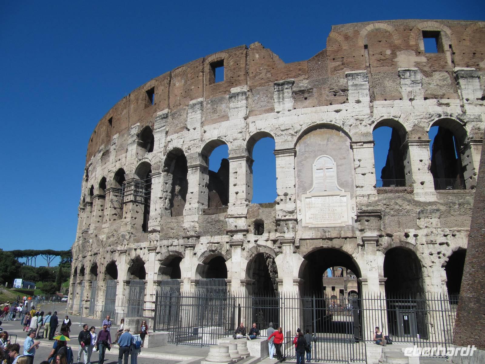 Unser erster Rundgang durch Rom führt uns durch das antike Rom. Wir treffen uns um kurz nach 8 mit unserer örtlichen Reiseleitung Marielisa an der Metrostation und fahren gemeisam zum Koloseum, wo unsere Führung beginnen wird. Wir begeben uns zuerst ins innere des berühmten Bauwerks.Wir sind bedeindruckt von der Baukunst und spazieren weiter zum Palladium und fahren mit den Romanum Forum fohrt lassen uns später vom römischen Marktreiben mitreissen und geniessen eine kleine Pause bei Pizza oder einem leckeren Eis. Gestärkt und erwartungsvoll bewegen wir uns Richtung Pantheum, welches wir von innen besichtigen, schauen uns die Jesuitenkirche an und hören schon von Weitem das Wasserrauschen des Trevibrunnens. Hier machen wir eine kleine Pause und bewundern diesen wunderschönen Brunnen und sein Treiben ringsherum. Anschliessend spazieren wir weiter zur Spanischen Treppe. Hier endet unsere heutige sehr informative und interessante Führung. Nun habe unsere Gäste noch den restlichen Nachmittag Zeit, Rom auf eigene Faust zu erkunden oder das Gesehene nochmals zu erkunden. Ich steige mit einigen Gästen die Spanische Treppe empor. Wir spazieren weiter vor bei an der Villa Medici und können die wundervolle Aussicht über Rom geniessen. Am Plaza de Popollo beenden wir unseren Rundgang mit einem typischen Espresso oder Cappuchino.