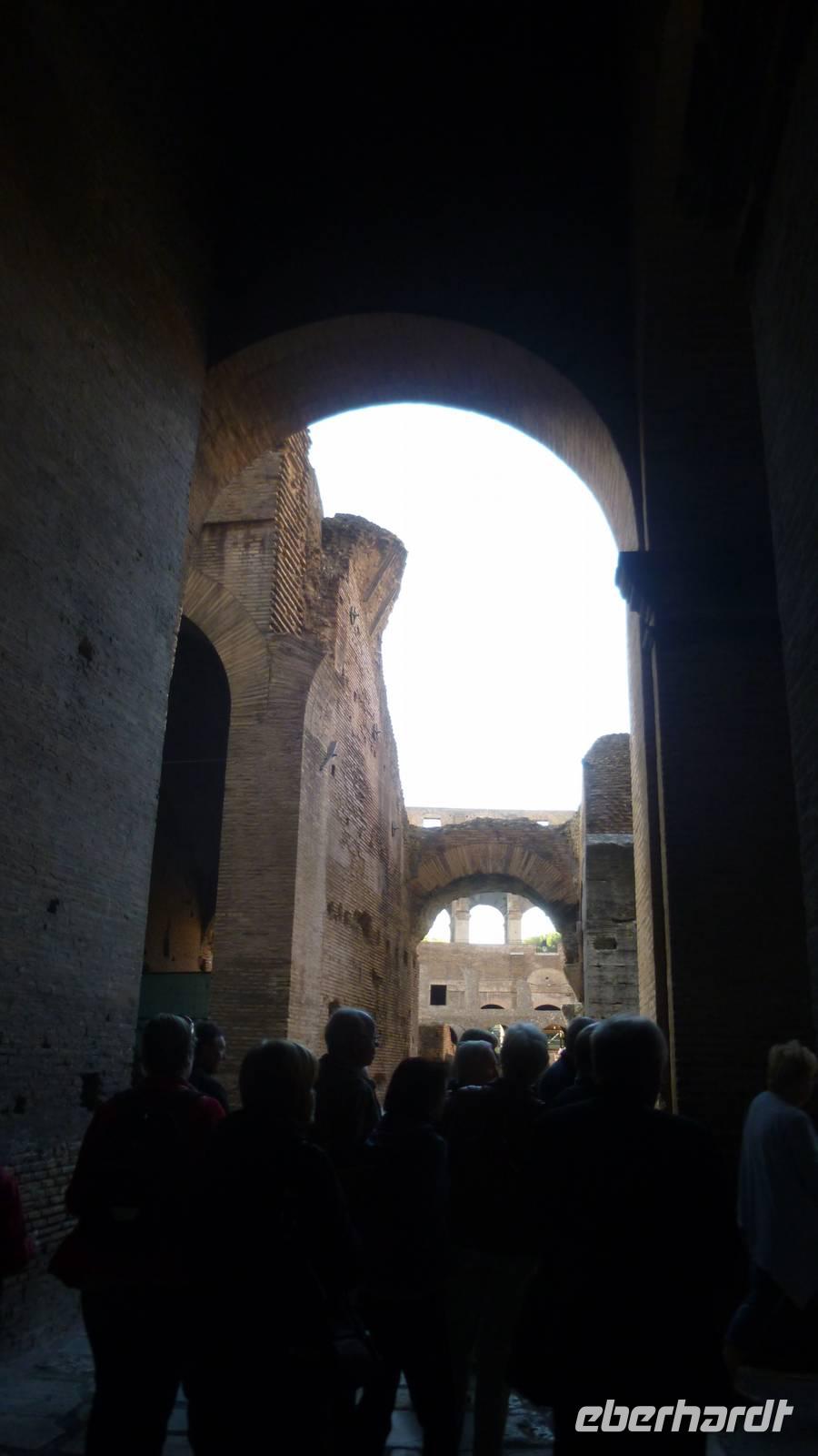 Viel Zeit zum Frühstücken blieb uns nicht, denn vor uns lag ein langer Tag. Wir machten uns auf den Weg zur Metrostation Cipro. Unsere Stadtführerin Sylvia erwischte der morgenliche Menschenandrang und sie traf etwas später ein, was ja in den Südländern nichts außergewöhnliches ist. Ich nutzte die Zeit und besorgte schonmal eine ganze Stange Fahrkarten, welche für die nächsten 3 Tage reichen würde. Mit der U-Bahn ging es dann zunächst zum Bahnhof Trimini. Dort stiegen wir um und fuhren weiter bis zum Kolusseum, welches einen, kaum hat man die U-Bahn Station verlassen, sofort ins Auge sprang.