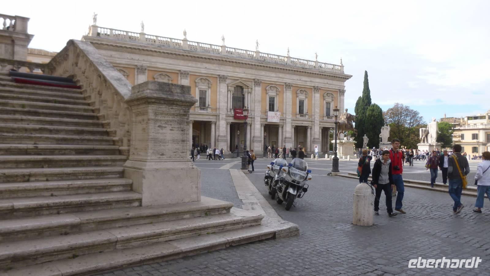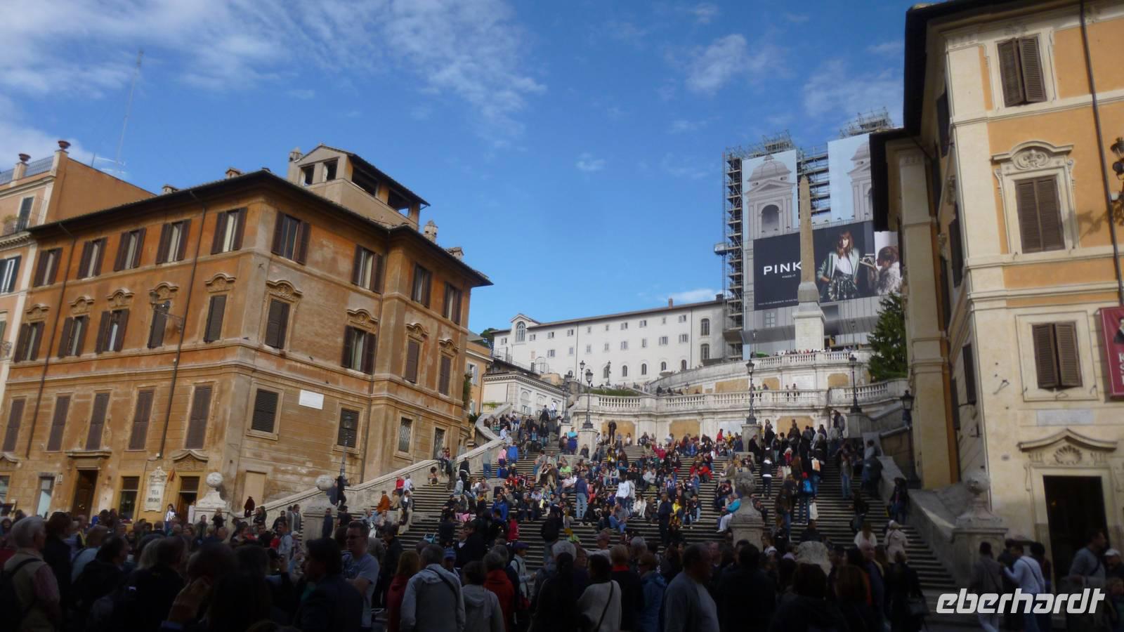 Am Platz der Musei Capitol zeigten sich auch schon die ersten Bauwerke Michaelangelos. Die Tour ging weiter über den Largo Agentina, welches unter den Römern als kleine Katzenauffangstation dient. Die Vierbeiner scheinen sich in den alten Ruinen wohl zu fühlen.Das nächste Ziel war das Pantheon mit seiner abgeschnittenen Kuppel, welche wir von innen bewundern durften. Eine kleine Restaurantempfehlung von Sylvia sagte uns allen zu und so kehrten wir gemeinsam in das il Barroccio ein, nur ein Katzensprung vom Pantheon entfernt. Wir verabschiedeten uns von Sylvia an der spanischen Treppe und erkundeten anschließend, jeder individuell, die Umgebung auf eigene Faust. Wer etwas weiter ging erreichte den Piazza del Popolo, oder man stöberte durch die typischen Straßen Roms, mit einem Laden nach dem anderen. Bei Gucci und Co konnte man bei Bedarf auf jeden Fall eine ganze Menge Geld lassen, aber auch Souviniers landeten in unseren Taschen und Rucksäcken. Die Postkarten, die wir heute kauften, sollten morgen vom Vatikan aus auch schon versannt werden.