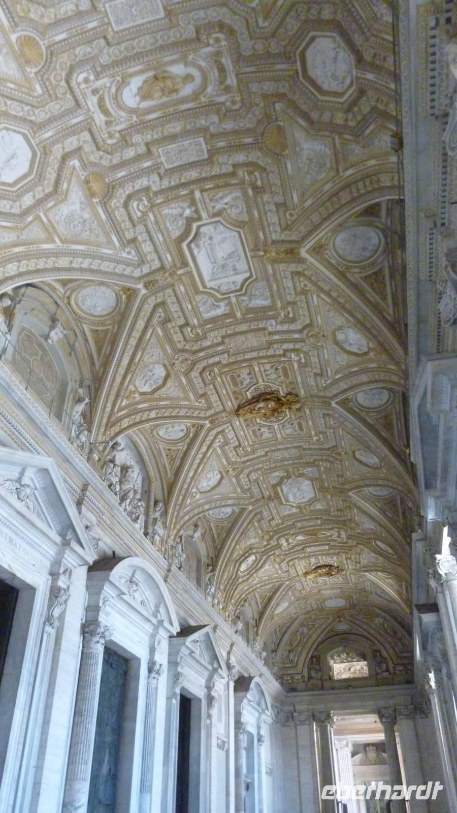 Doch zunächst besichtigten wir die vielen Räume der vatikanischen Sammlung. Unzählige Büsten, Statuen, Gemälde, Mosaike und Teppiche von den größten Künstlern der damaligen Zeit beeindruckten uns. Eine Statue realistischer als die andere und Gemälde, so gut erhalten, dass man glauben könnte, Raphael, Michaelangelo und Co hätten sie erst vor kurzem vollendet. Nicht nur die Sammlungen faszinierten, auch Deckengemälde und Stuck zierten jeden einzelnen Raum der heiligen Gemäuer.