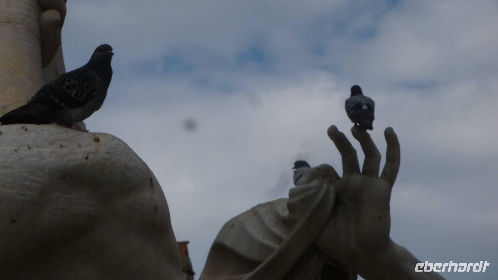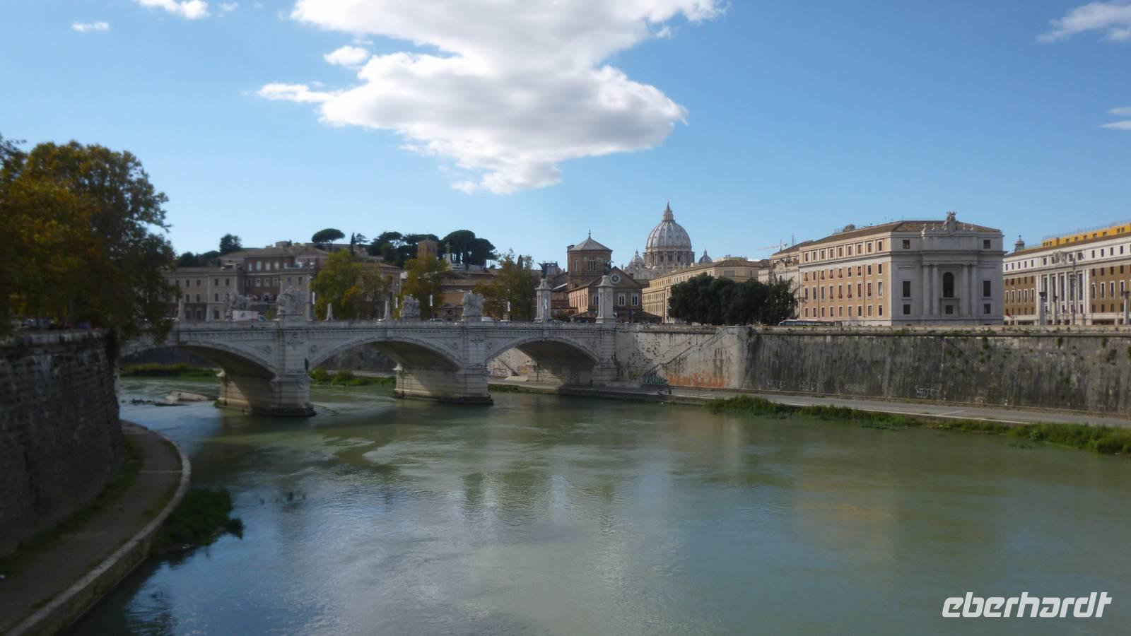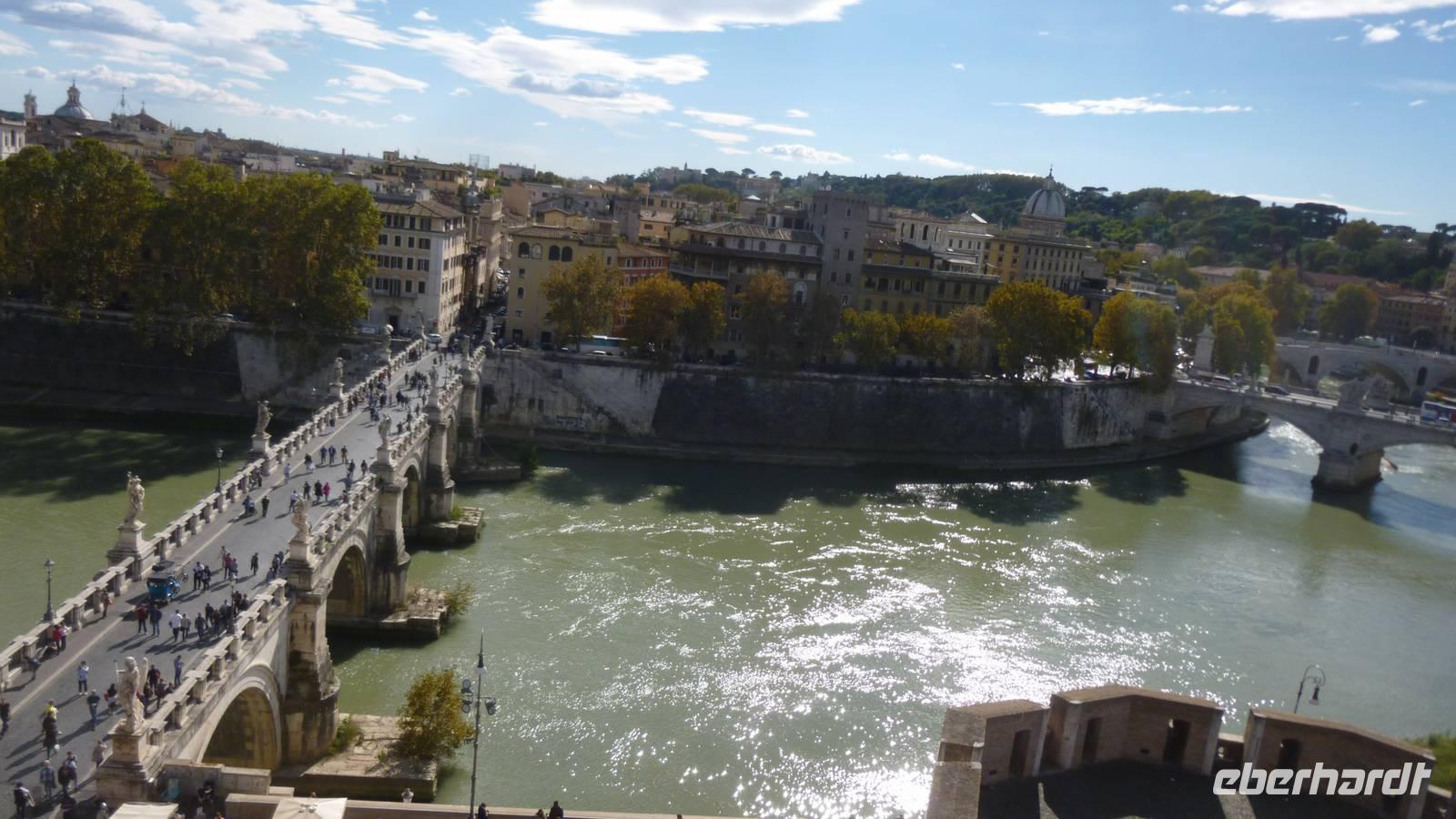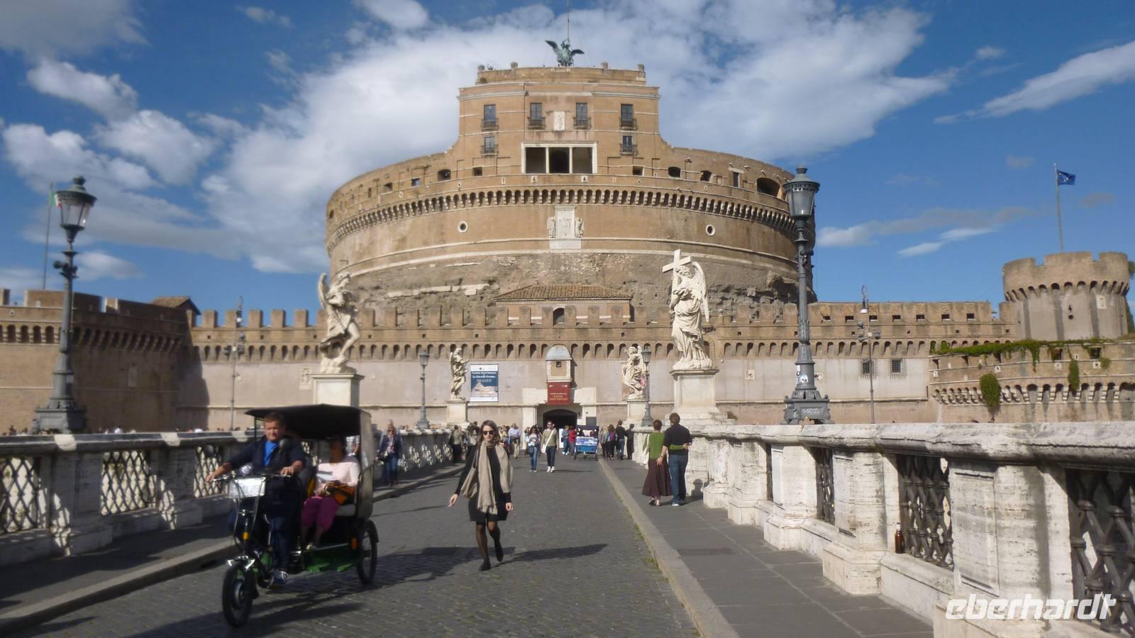 Über den Petersplatz liefen wir zur Via della Conciliazione und ruhten uns bei einer Mittagspause etwas aus. Weiter ging es entlang der Mauer, welche den Päpsten als Fluchtweg diente, zur Engelsburg. Einige original erhaltene, möblierte Räume bieten einen Einblick auf das damalige Leben in diesen Gemäuern. Von der Dachterrasse aus hatten wir einen fantastischen Ausblick auf die ganze Stadt, vom Vatikan bis hin zur Schreibmaschine. Über die Engelsbrücke liefen wir weiter bis zum Piazza Navona mit seinen drei Brunnen. Der Vierströmebrunnen zeigte die vier Flüsse Nil, Donau, Ganges und Rio de la Plata, wobei der Kopf Nil interessanterweise aufgrund seiner unbekannten Quelle verhüllt ist.