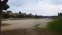 Jeder Abschied ist schwer, doch bis es soweit war blieb den meisten von uns noch viel Zeit. Einige Bustickets hatte ich noch übrig und lud ein Trastevere bei Tag zu erkunden. Dort angekommen liefen wir entlang des Tiber und überquerten ihn halb um auf die Isola Tiveria zu gelangen. Die Besichtigung der Kirche Santa Maria (eine von dutzenden) stillte nun auch den letzten Durst nach schönen Kirchen. Wir gingen weiter entlang des Flusses bis zum Circus Maximus.. oder zumindest das was davon übrig war. Eine kahle elypsenförmige Freifläche ist was von der Pferderennbahn übrig geblieben ist. Einst wurden hier Rennen und Reitkämpfe ausgetragen. Aber naja, wir haben es zumindest mal gesehen. Also zogen wir wieder zurück in das Szeneviertel und kehrten ein in einem niedlichen kleinen Restaurant, wo wir einen großen Tisch, direkt unter einem tollen Gemälde der Spanischen Treppe, vorfanden.. als ob der Tisch für uns reserviert war.