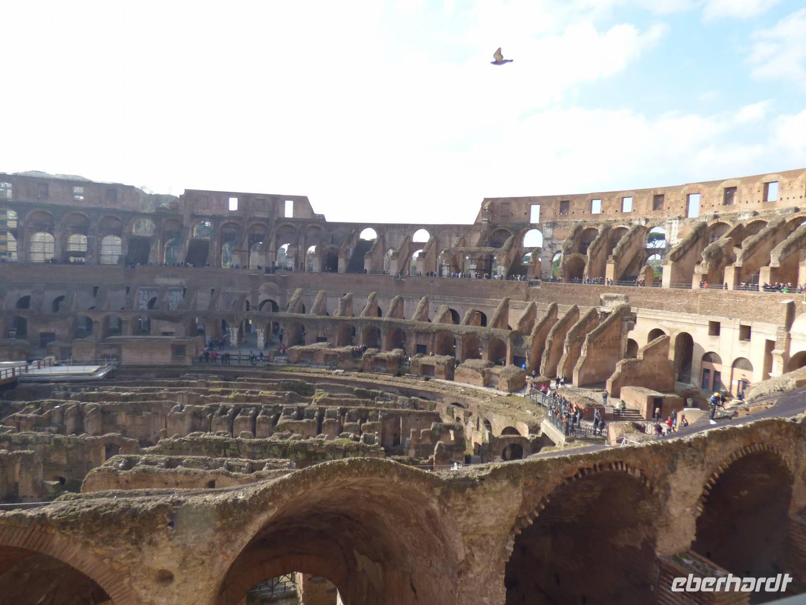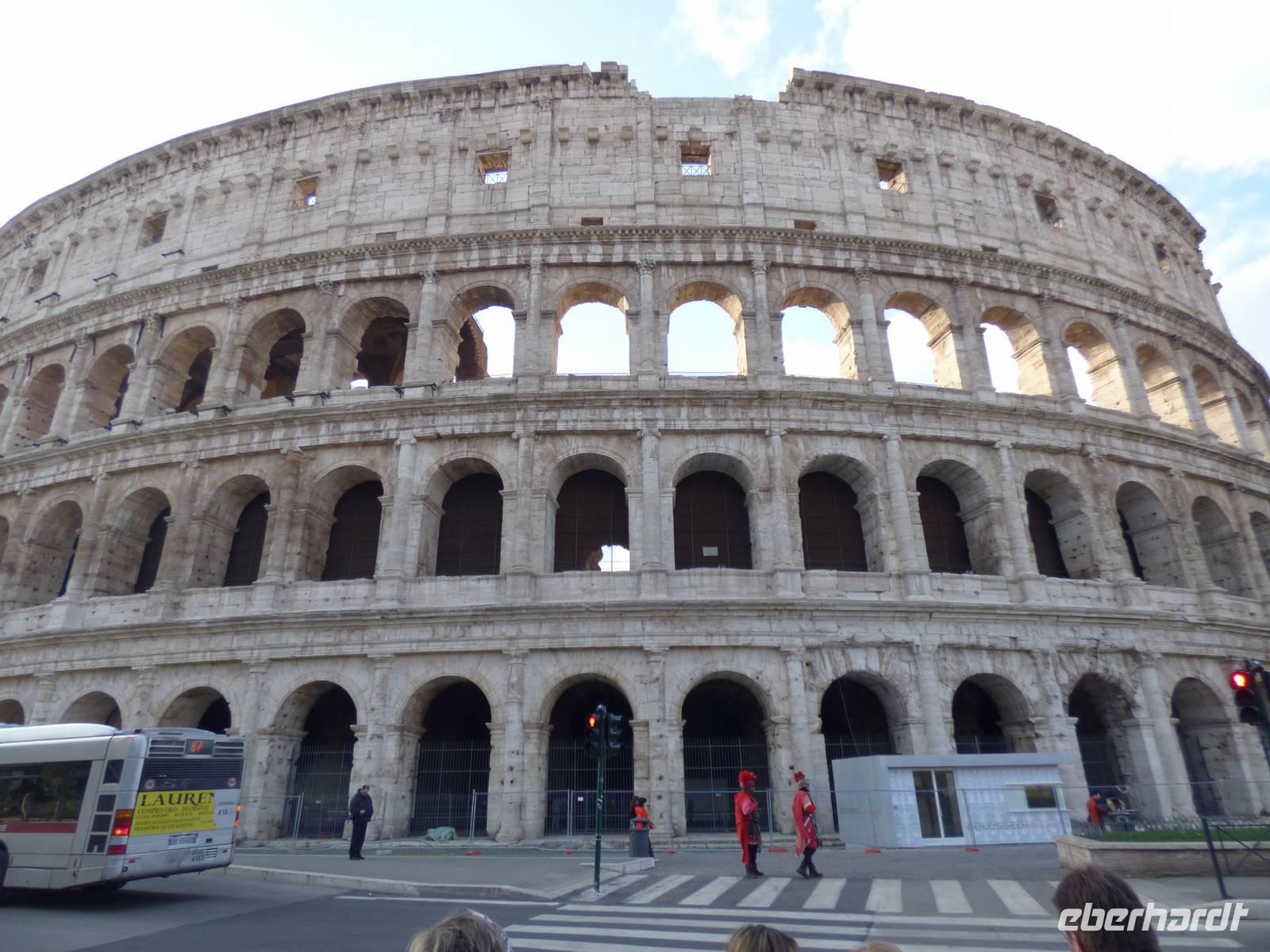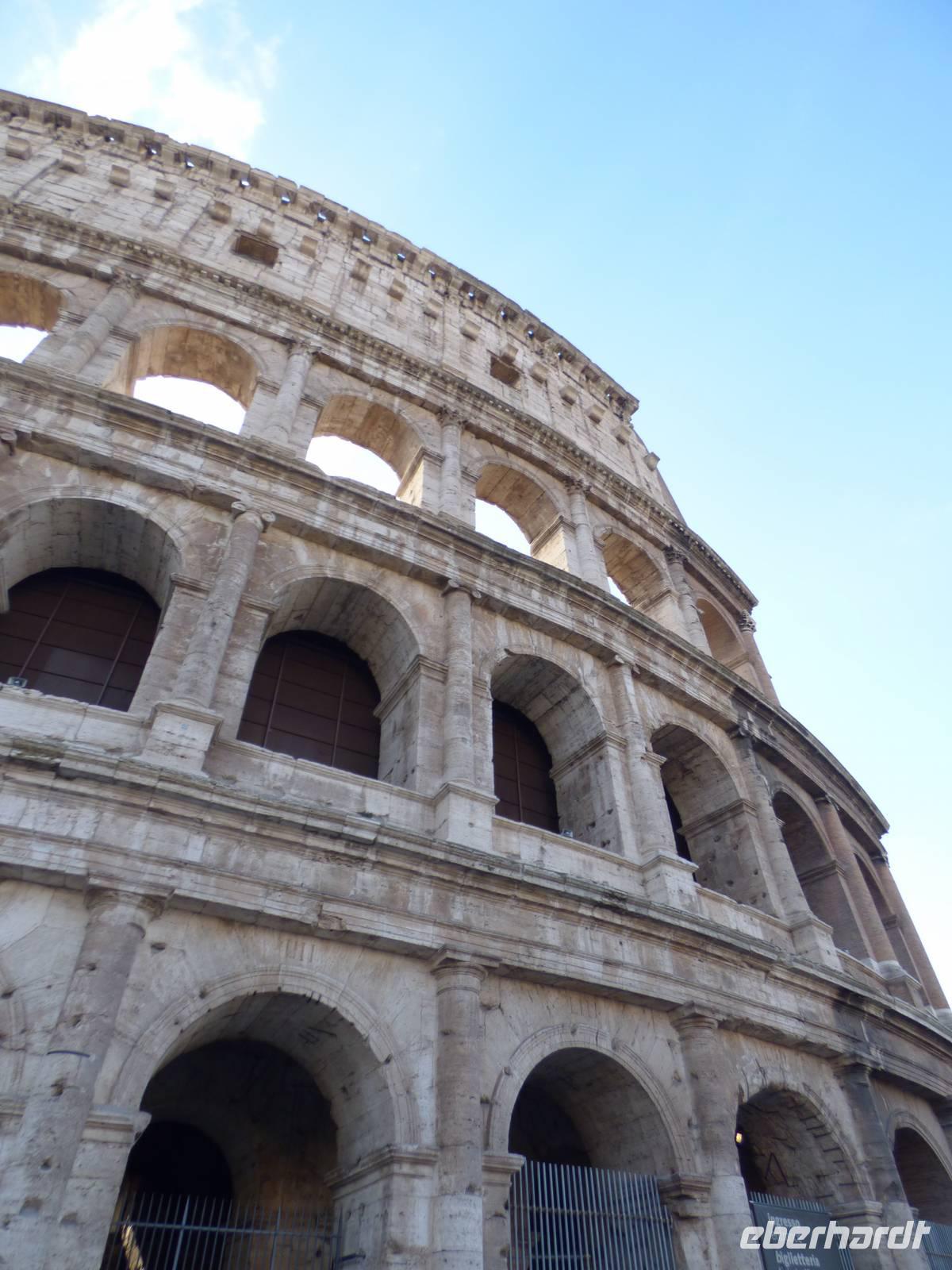 Sofort schweißten wir alle zu einem Team zusammen und fuhren also ins Zentrum Roms. Die Sonne strahlte mit uns um die Wette und wir konnten im Kolosseum Wärme tanken, wo einige von uns bereits ihren Beruf zugeschrieben bekamen - unser gruppeneigener Gladiator musste auch die kommenden Tage mit seinen Geschichten und blieb im Gedächtnis haften, sodass wir sofort vor Augen hatten, was sich in der damaligen Zeit im Kolosseum ereignet hatte.