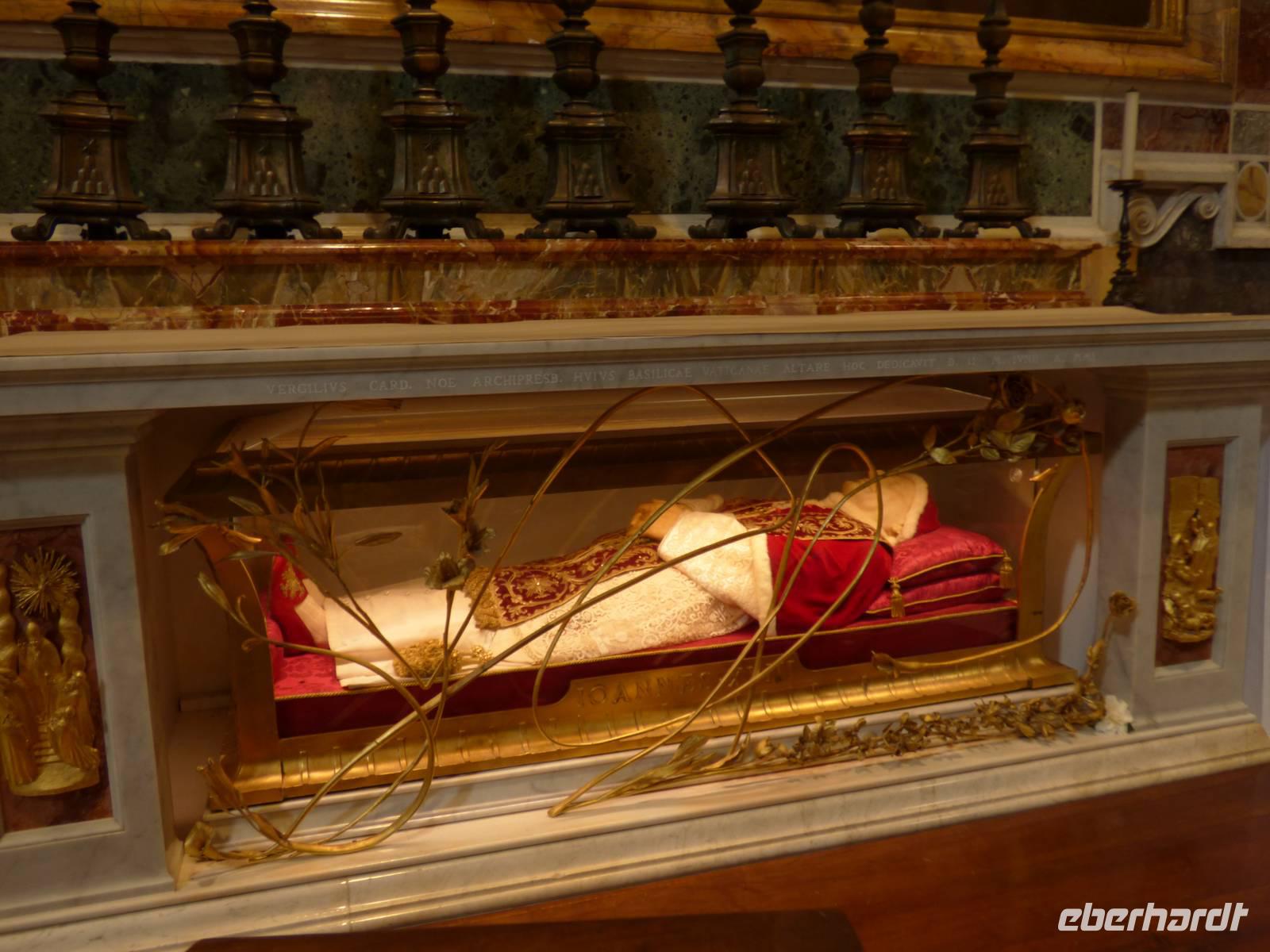 Umgeben von riesigen Kunstwerken, u.a. aus Michelangelo's Fantasien in Form der Pietá, kamen wir stellenweise aus dem Staunen nicht heraus. In jeder Nische des heiligen Ortes wartete eine andere Überraschung auf uns. Für manchen Papst wurde kein Denkmal gefertigt, da der Nachfolger keine geldlichen Mittel zur Verfügung hatte bzw. nehmen wollte. Manch anderer konnte wiederum in voller Pracht in seinem gläsernen Sarg bestaunt werden.